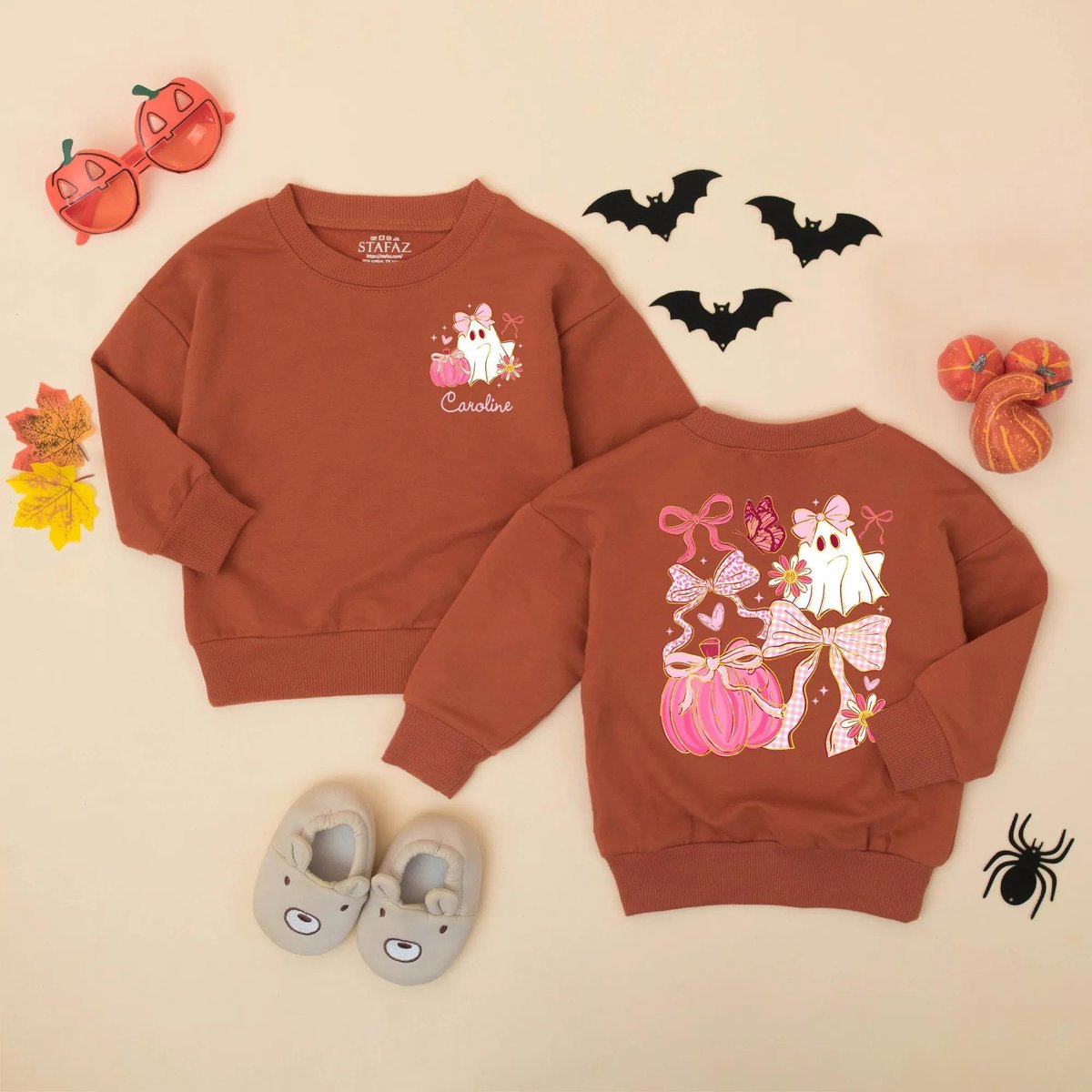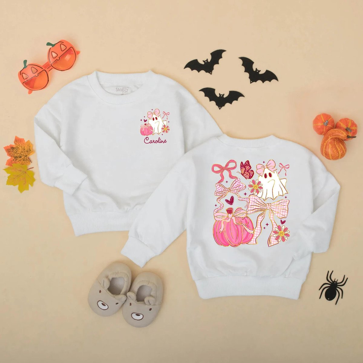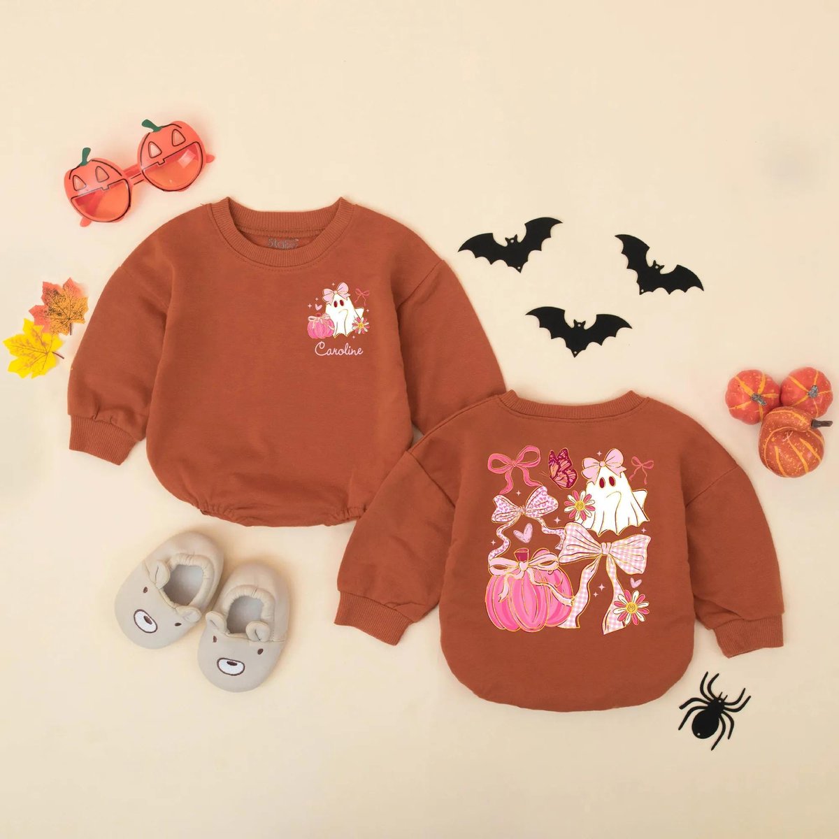 Personalized Pink Bow Ghost Baby Romper Cute First Halloween Baby Bodysuit Custom Name Baby Girl Hal 435