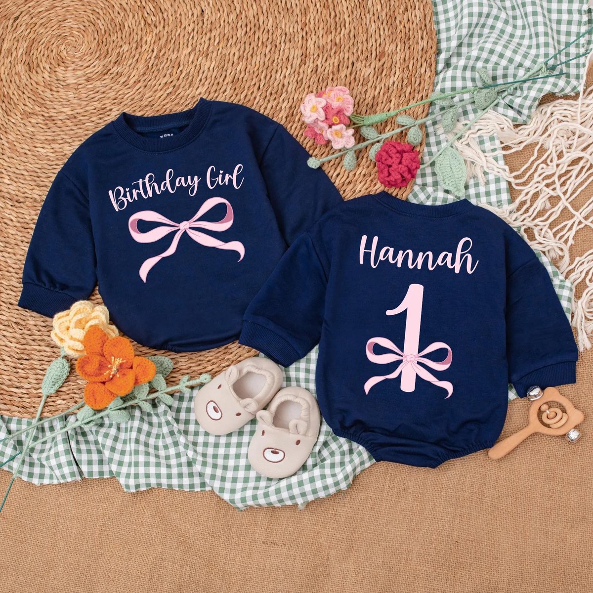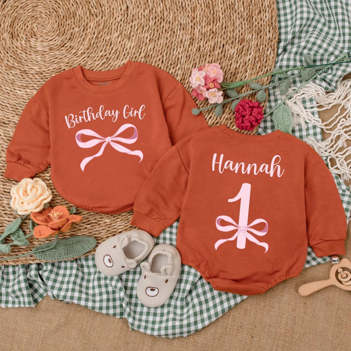 Personalized Pink Bow Birthday Girl Romper Bow 1st Birthday Bodysuit Baby Girl Clothes Newborn Bubbl 188