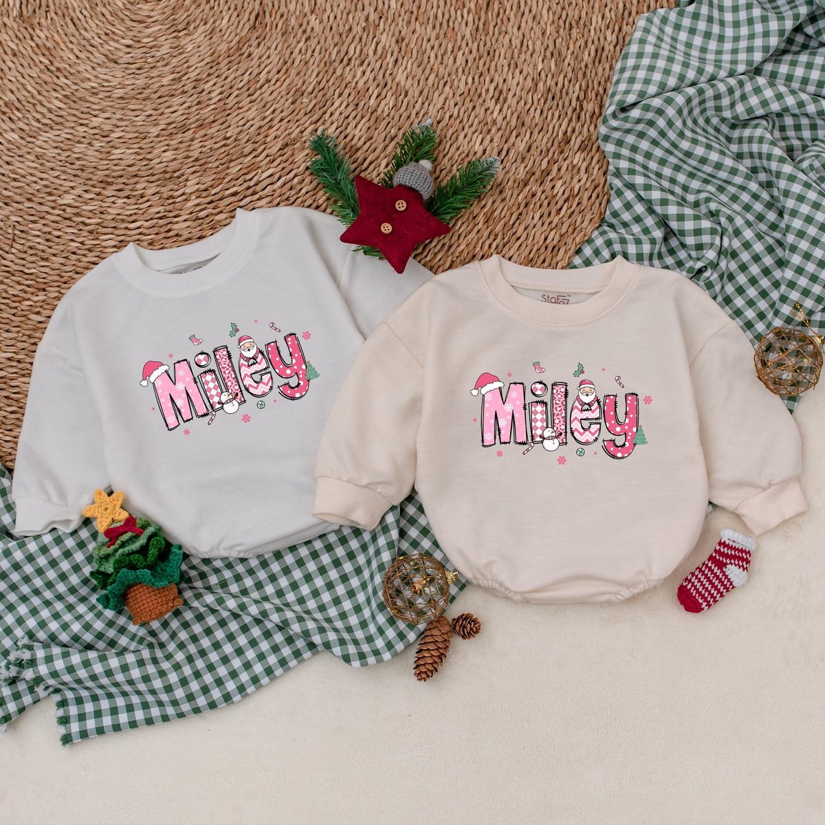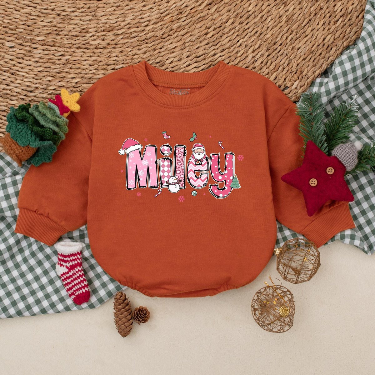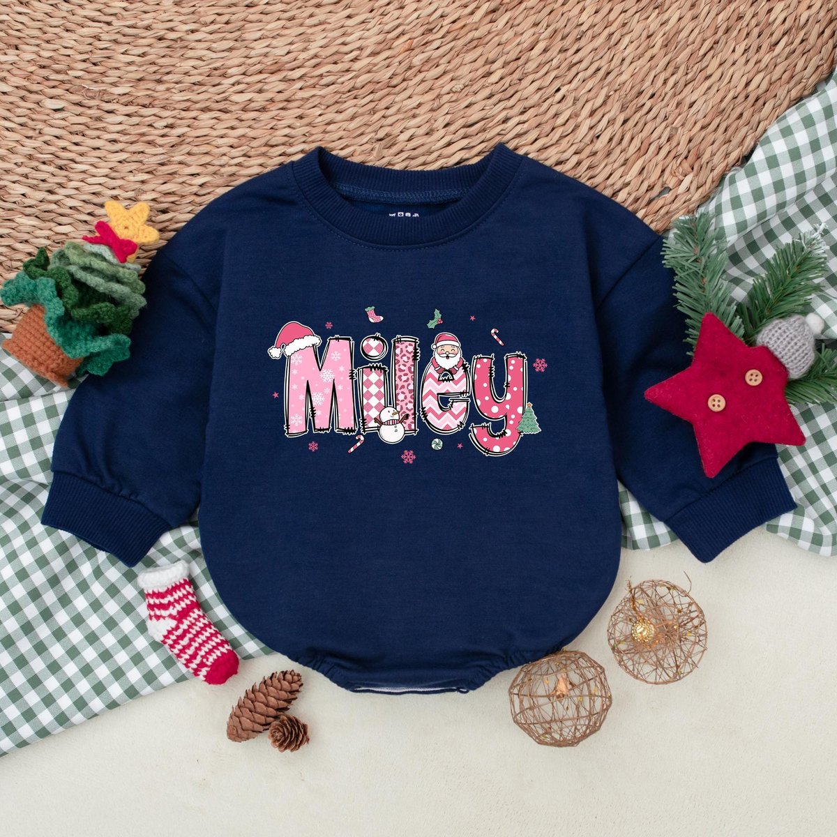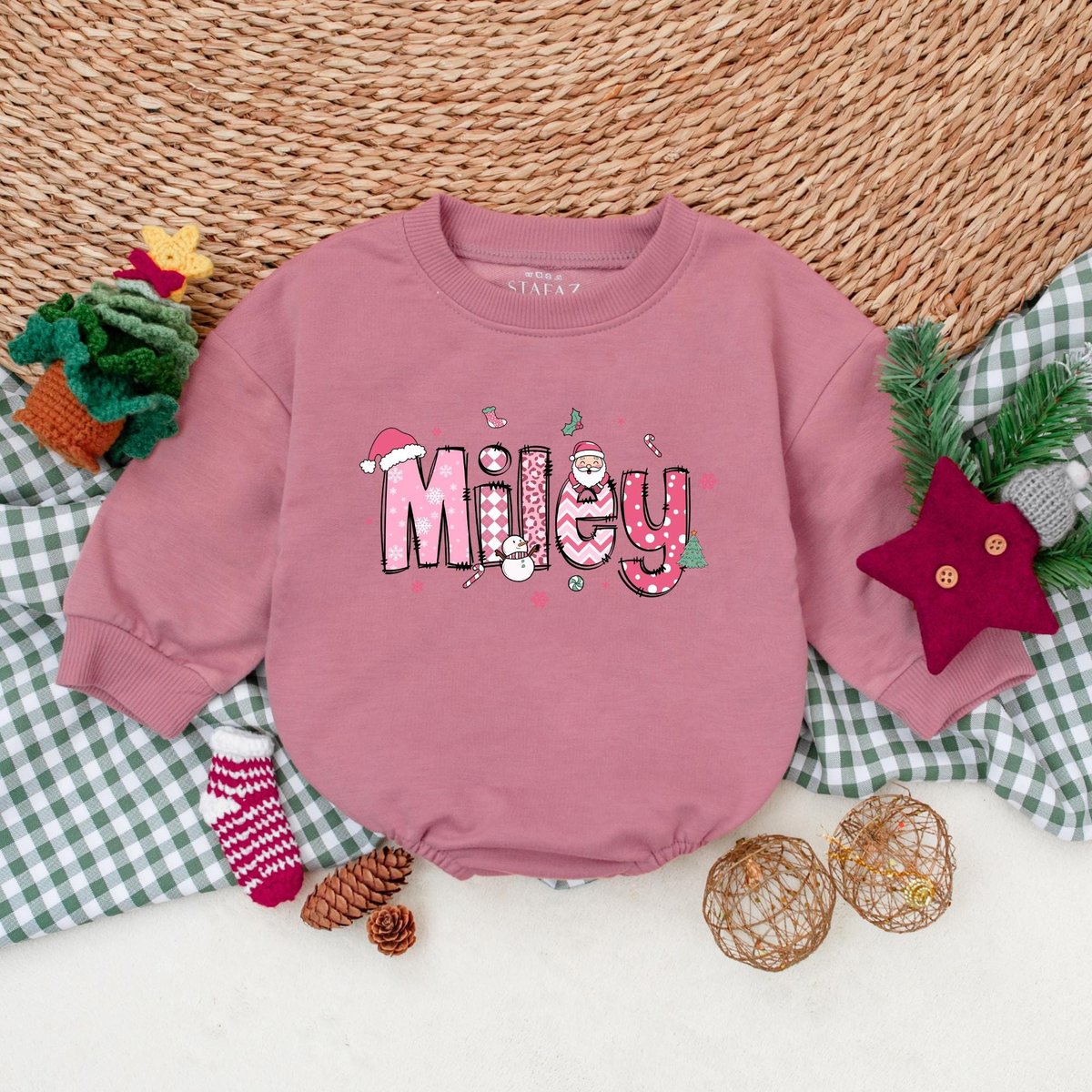 Personalized Pink Christmas Baby Romper Custom Christmas Girls Name Baby Bodysuit Baby Christmas Out 181