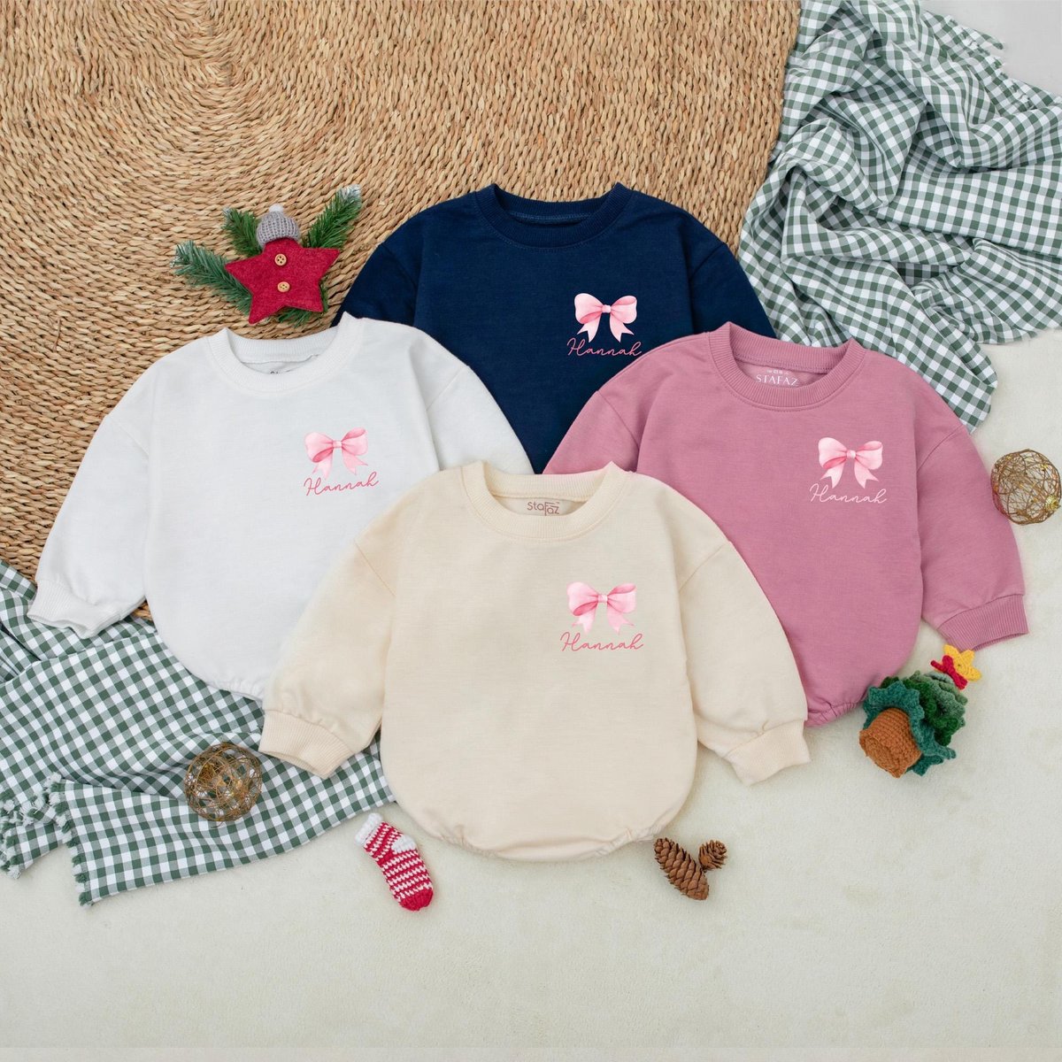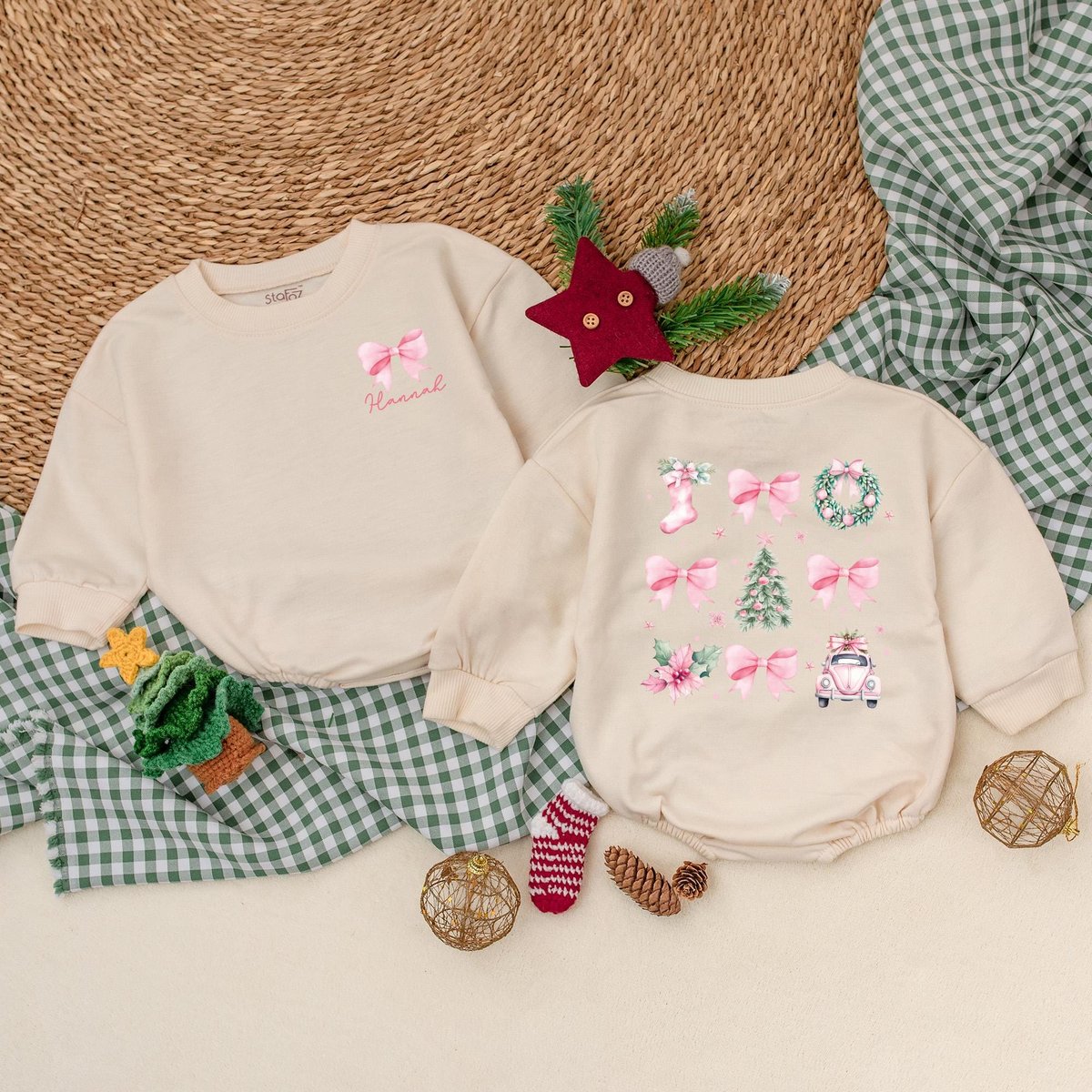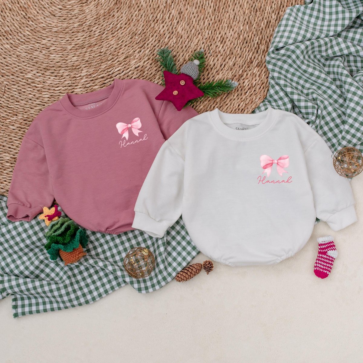 Personalized Pink Christmas Bow Romper Girly Christmas Bodysuit Winter Baby Clothes Christmas Baby S 181