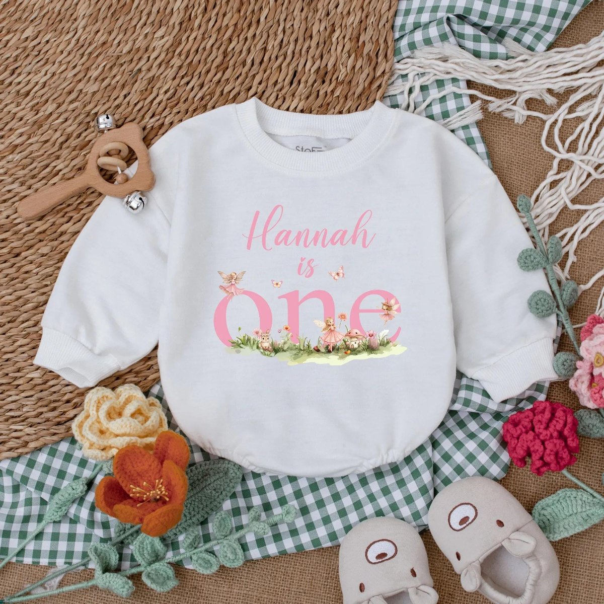 Personalized Pink Fairy First Birthday Romper One Little Fairy Baby Bodysuit One Year Old Outfit 1st 188