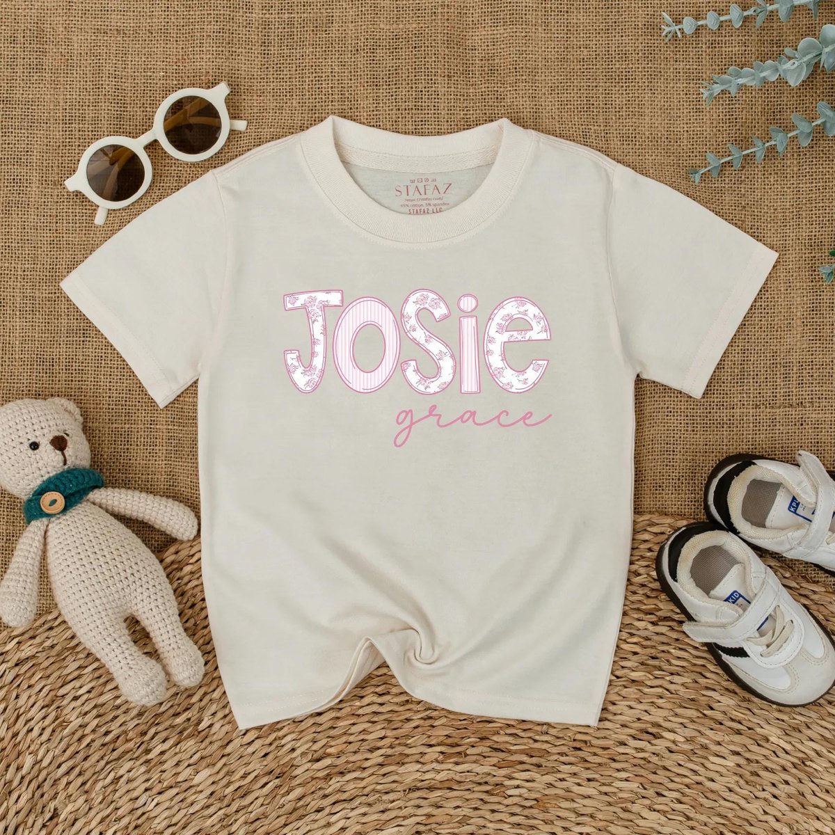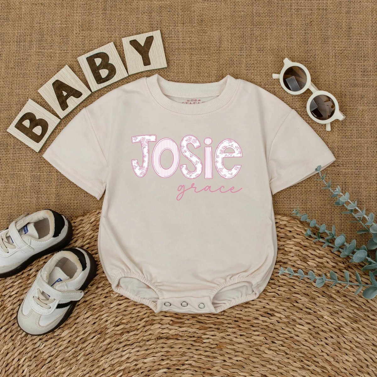 Personalized Pink Floral Baby Girl Romper Custom Name Wildflowers Baby Bodysuit Coming Home Outfit B 430