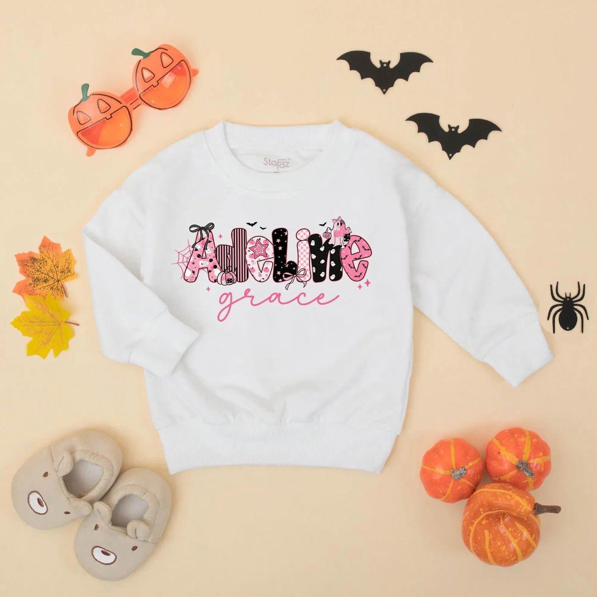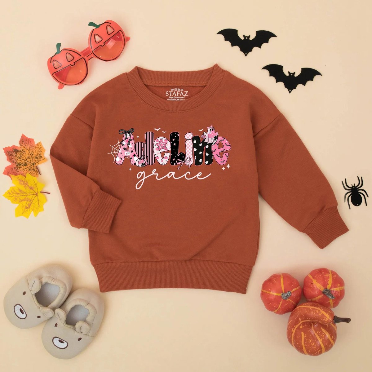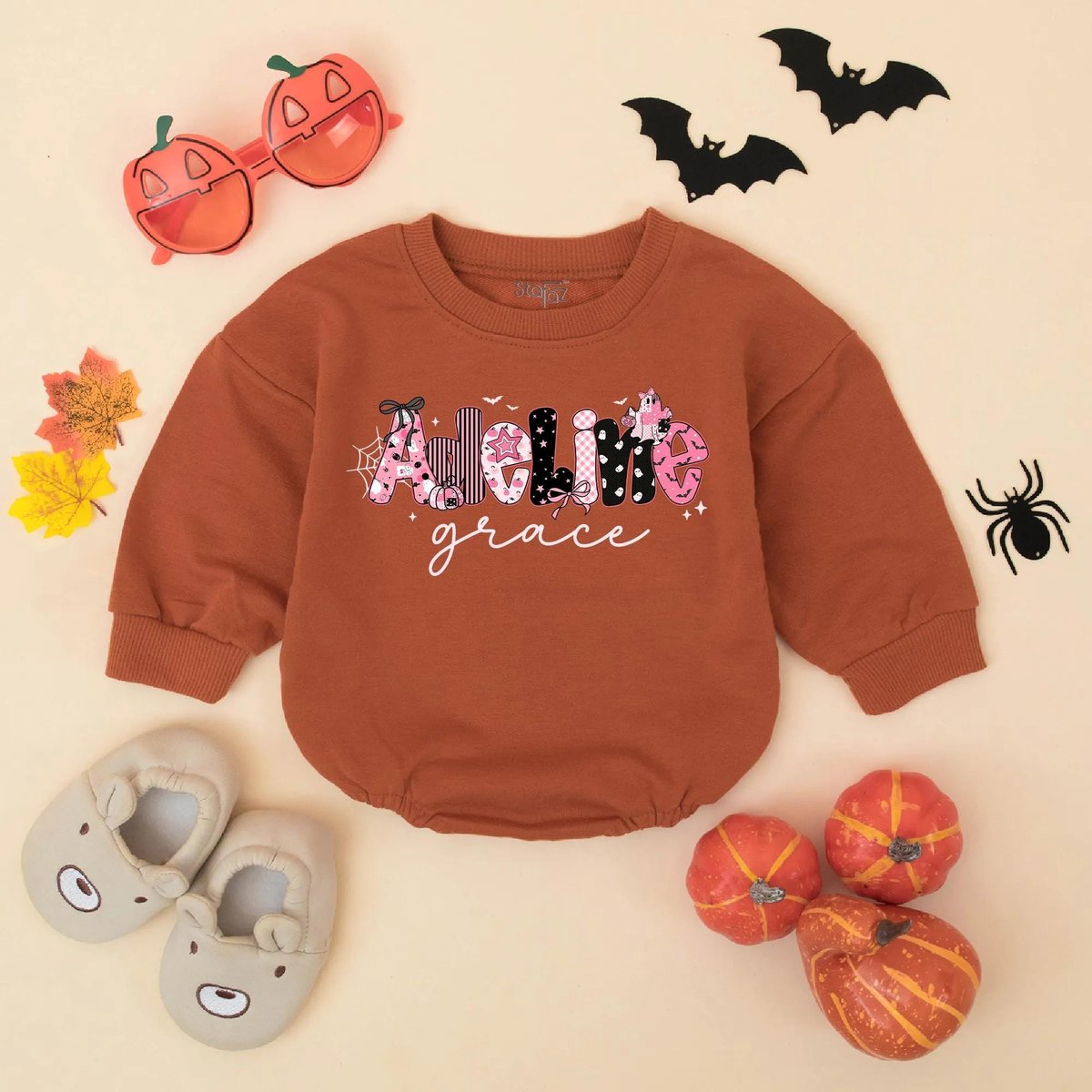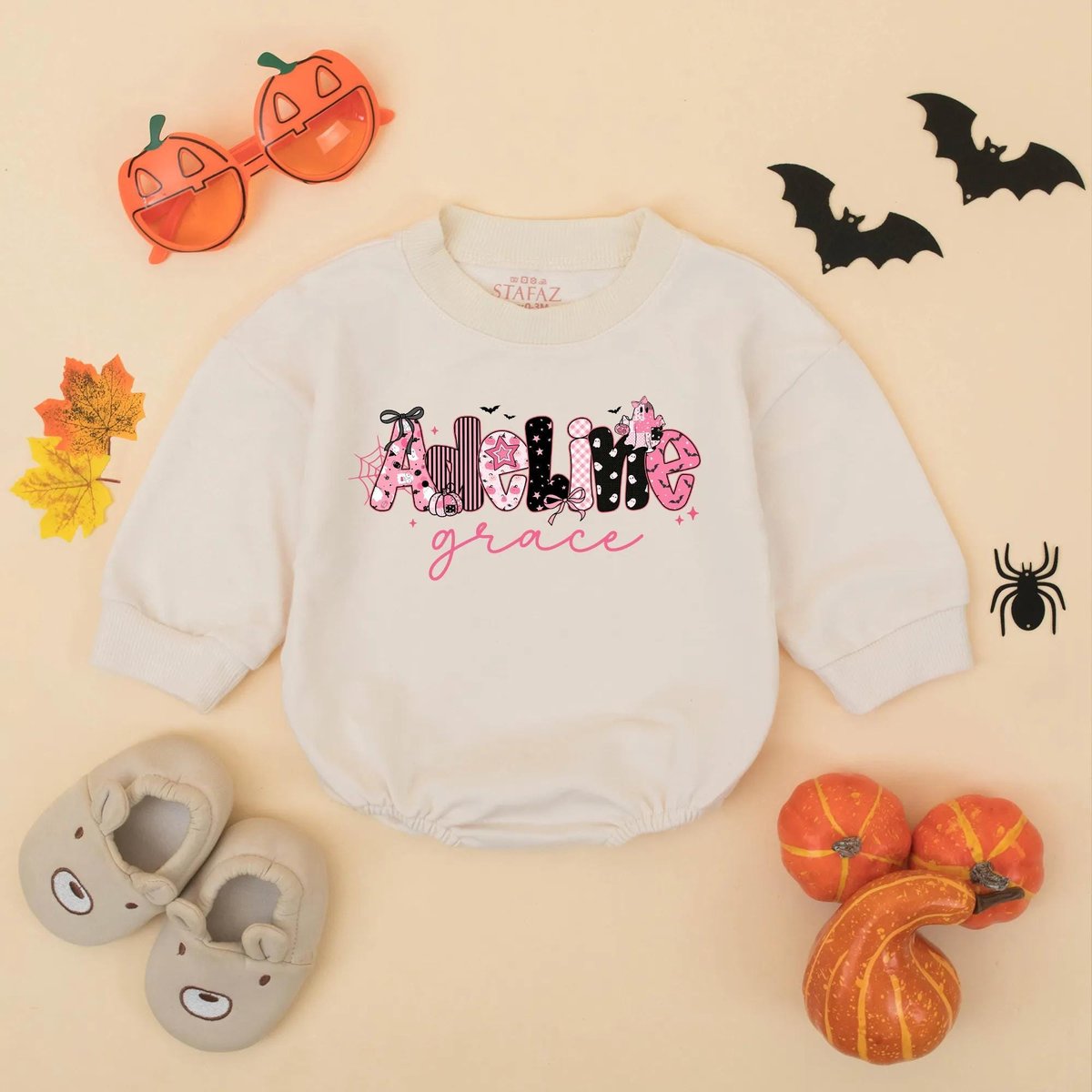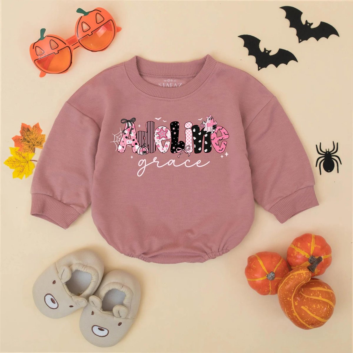 Personalized Pink Halloween Baby Bubble Romper First Halloween Baby Bodysuit Custom Ghost Toddler Sw 435