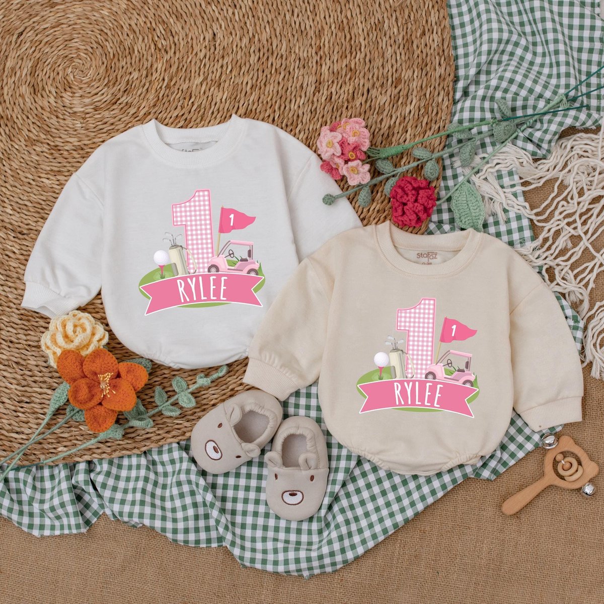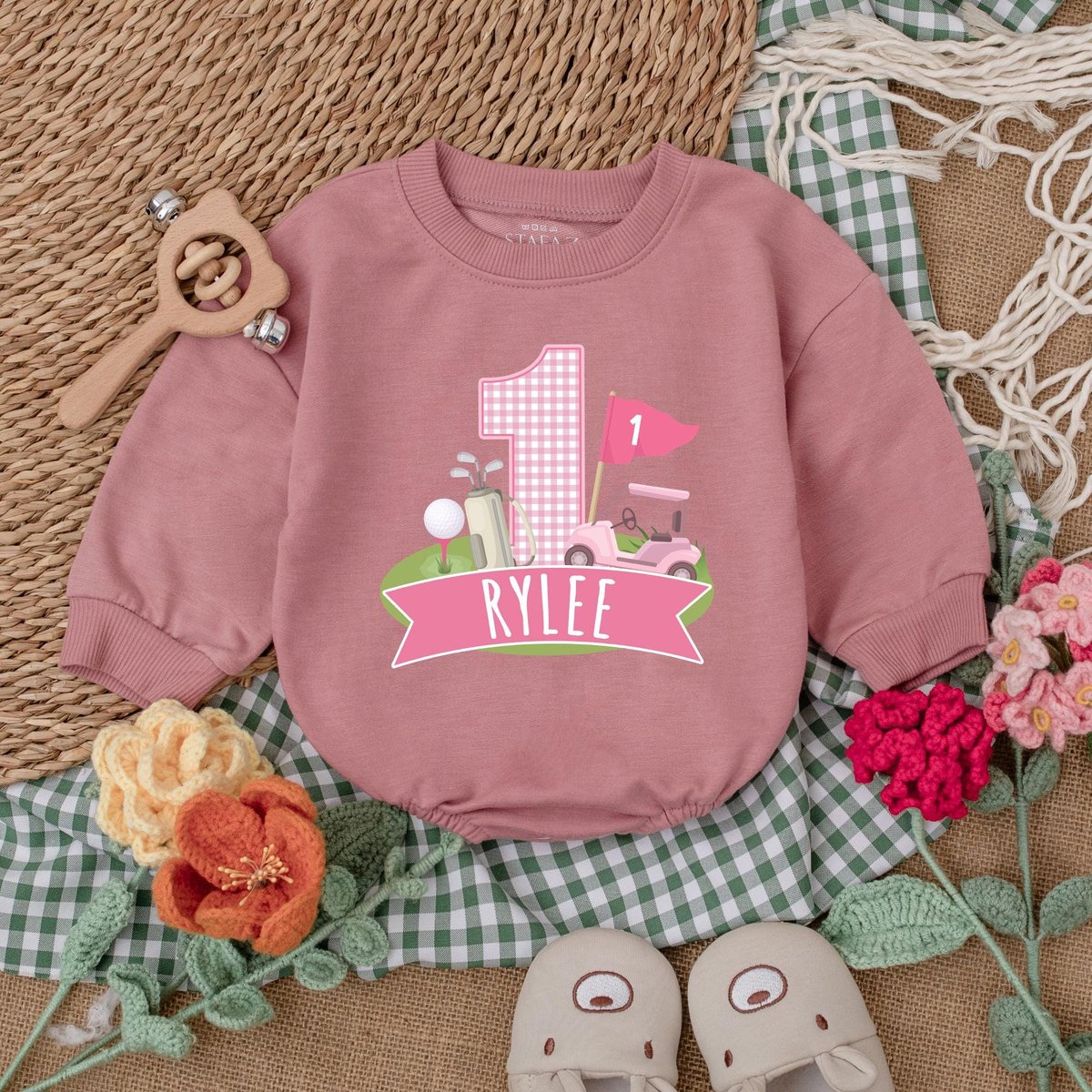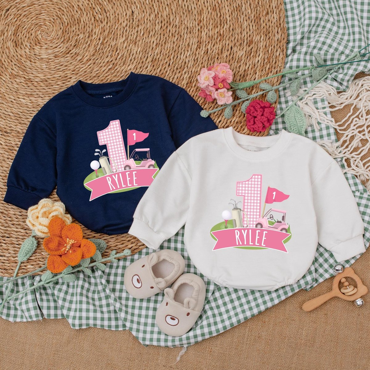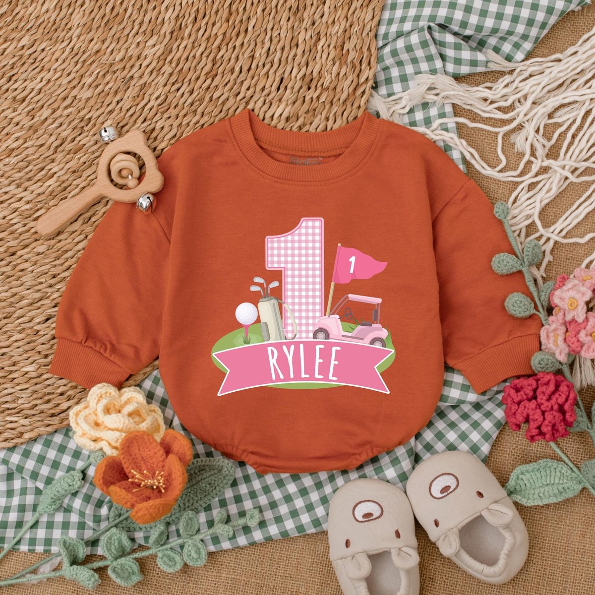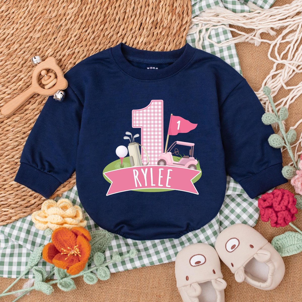 Personalized Pink Golf Hole in One Romper Golf Birthday Baby Bodysuit Girl First Birthday Outfit Bab 186