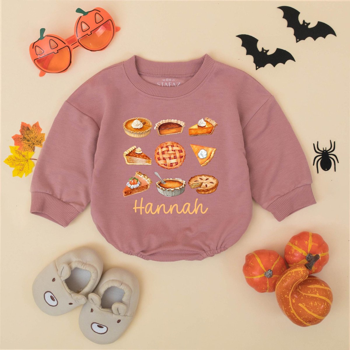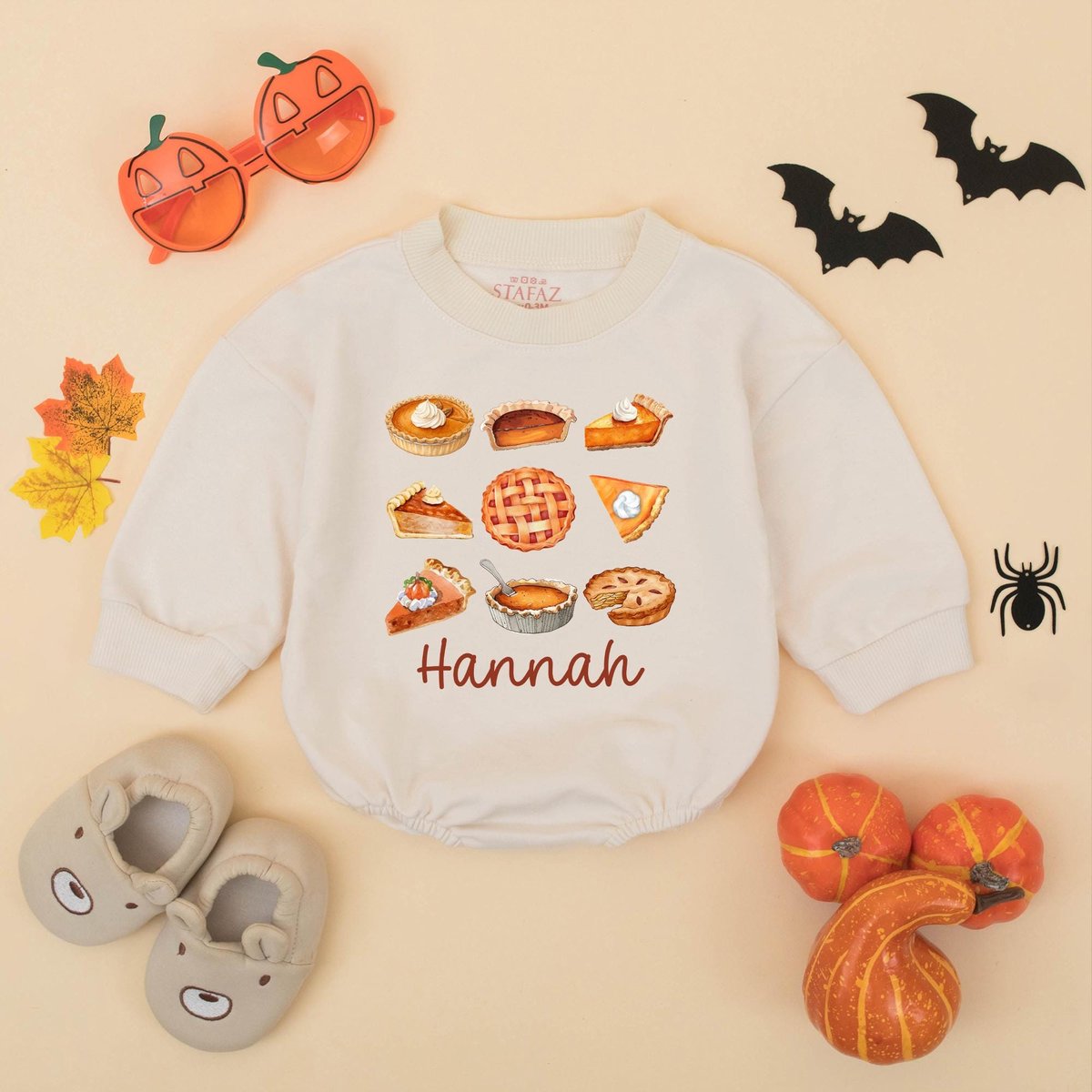 Personalized Pumpkin Pie Thanksgiving Baby Romper Cute Fall Baby Outfit with Name My First Thanksgiv 433