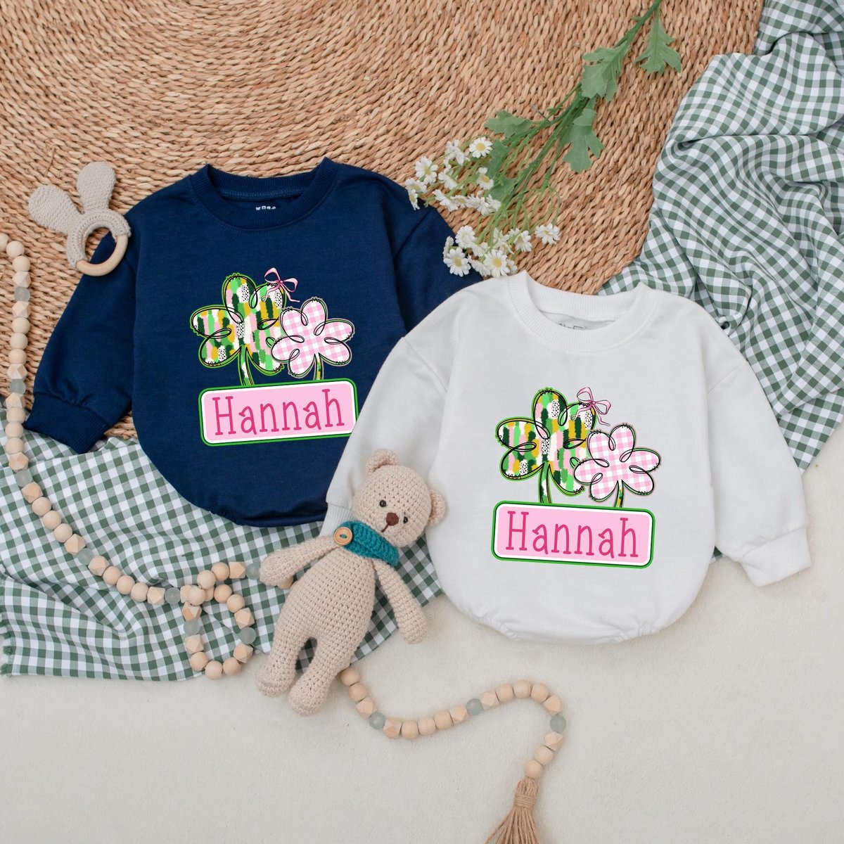 Personalized St Patrick’s Day Girl Romper Custom Name Girls Bodysuit Baby Patrick’s Day Outfit St 187