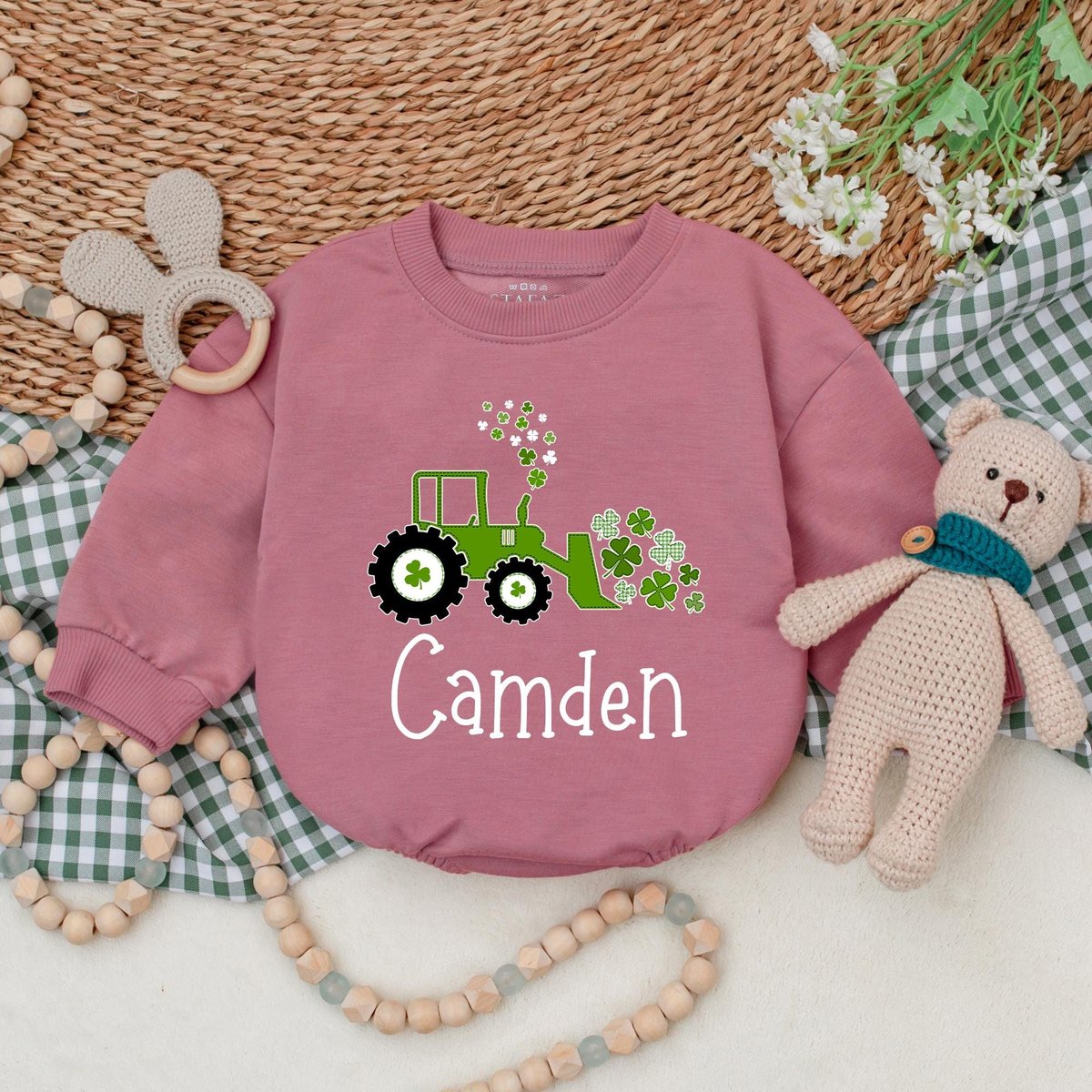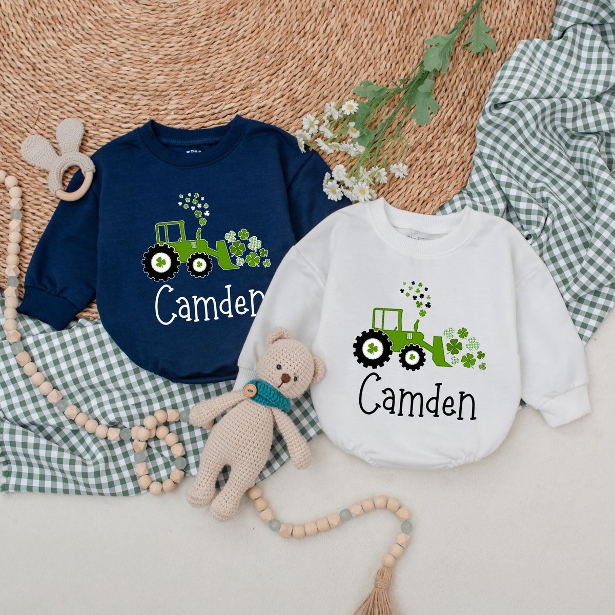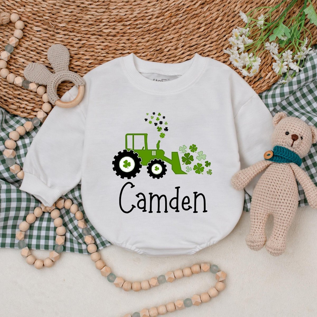 Personalized St Patrick’s Day Green Tractor Baby Romper St. Patrick’s Day Boys Bodysuit Patrick’s 184