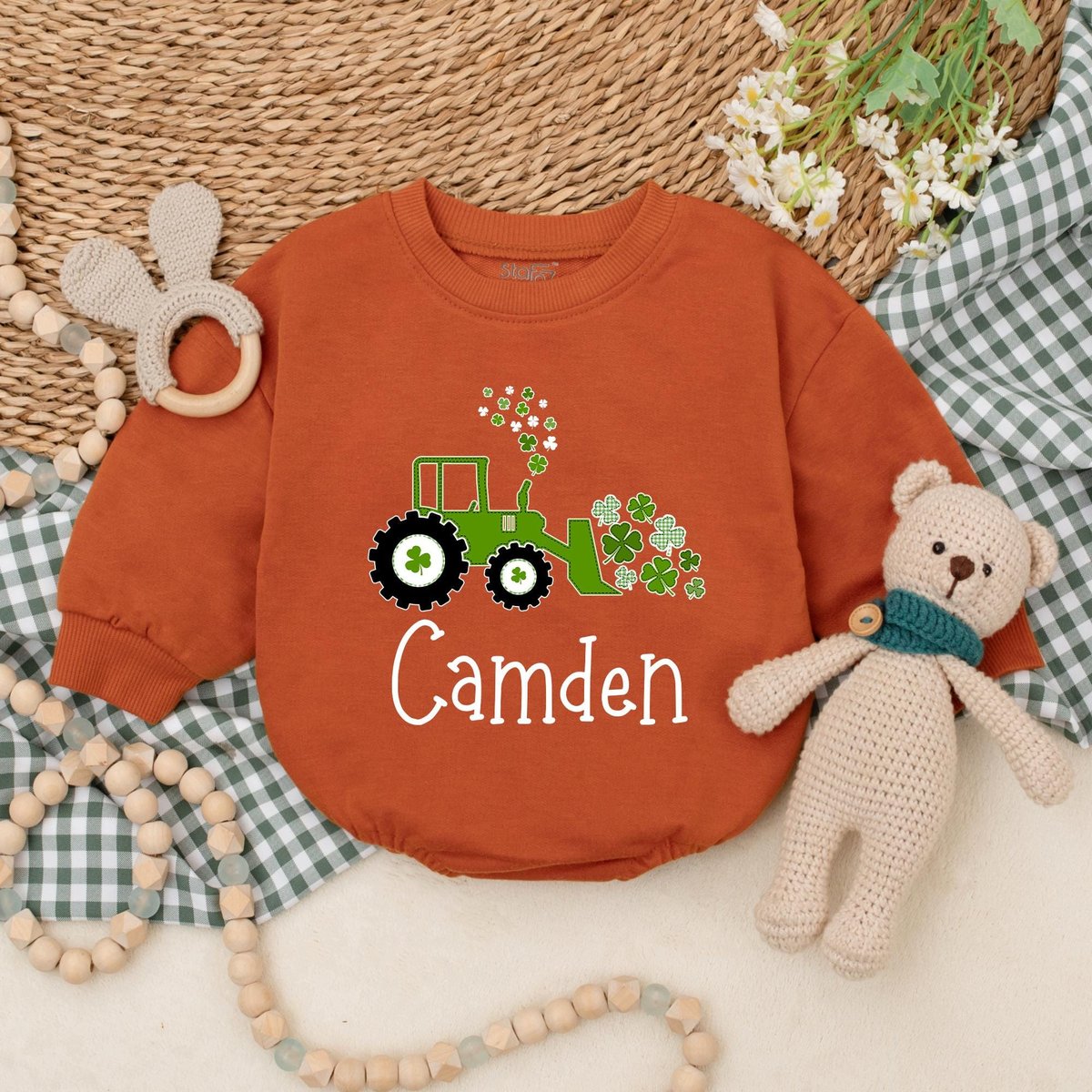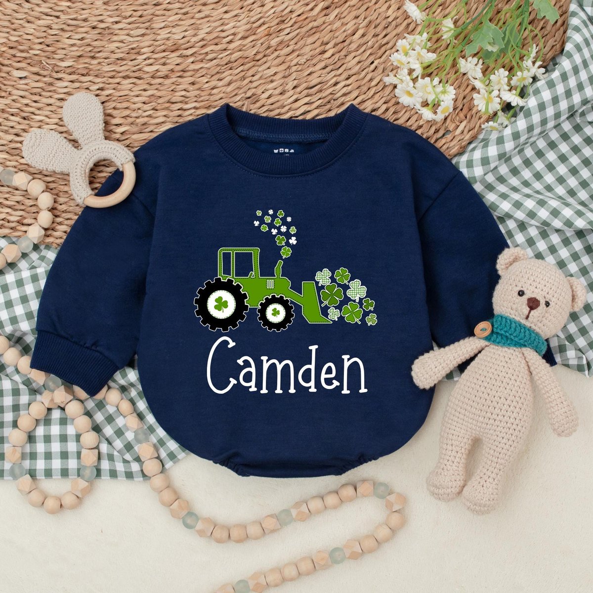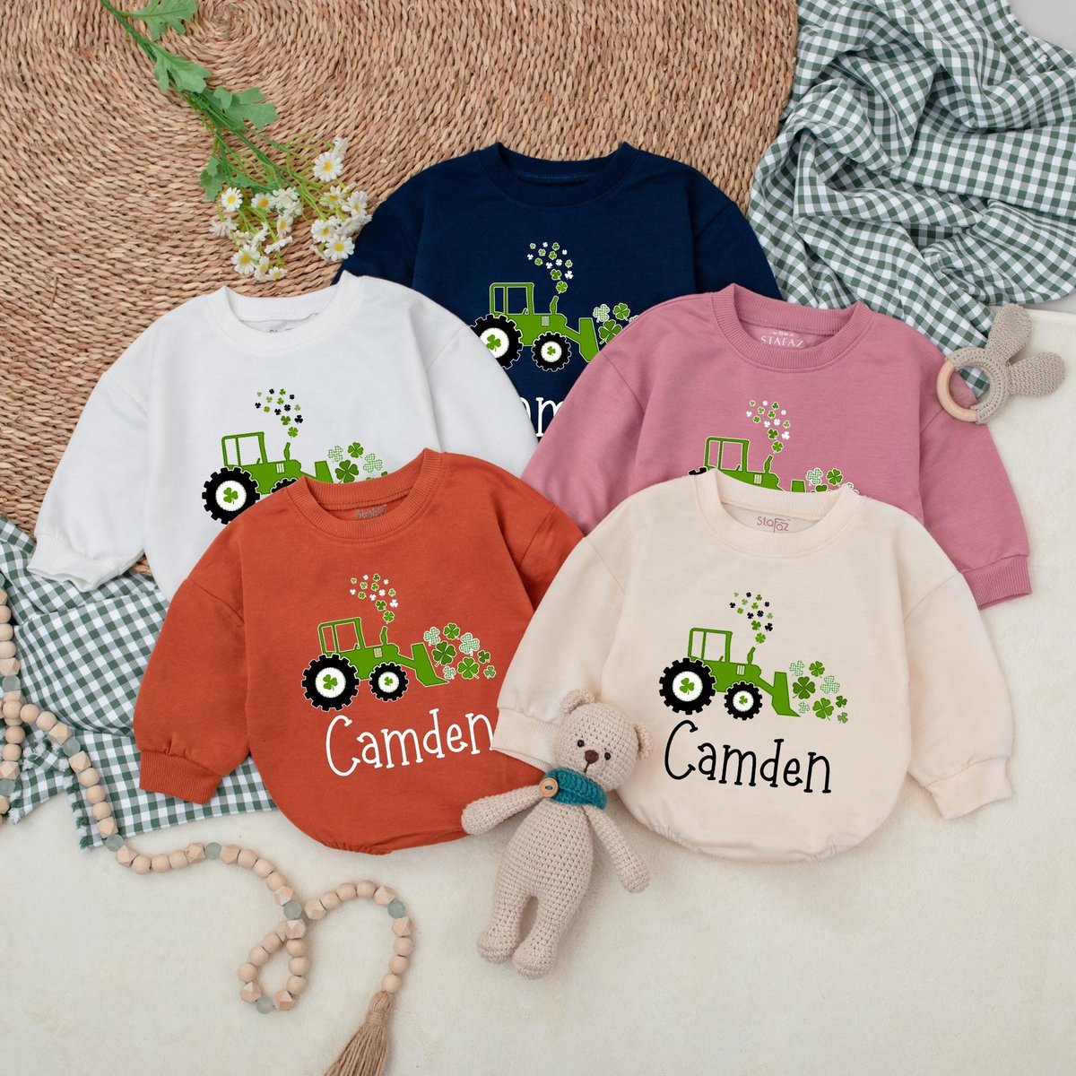 Personalized St Patrick’s Day Green Tractor Baby Romper St. Patrick’s Day Boys Bodysuit Patrick’s 184