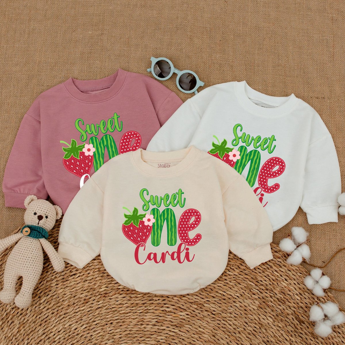 Personalized Strawberry Birthday Bubble Romper Sweet One Strawberry Bodysuit Baby Girl First Birthda 168