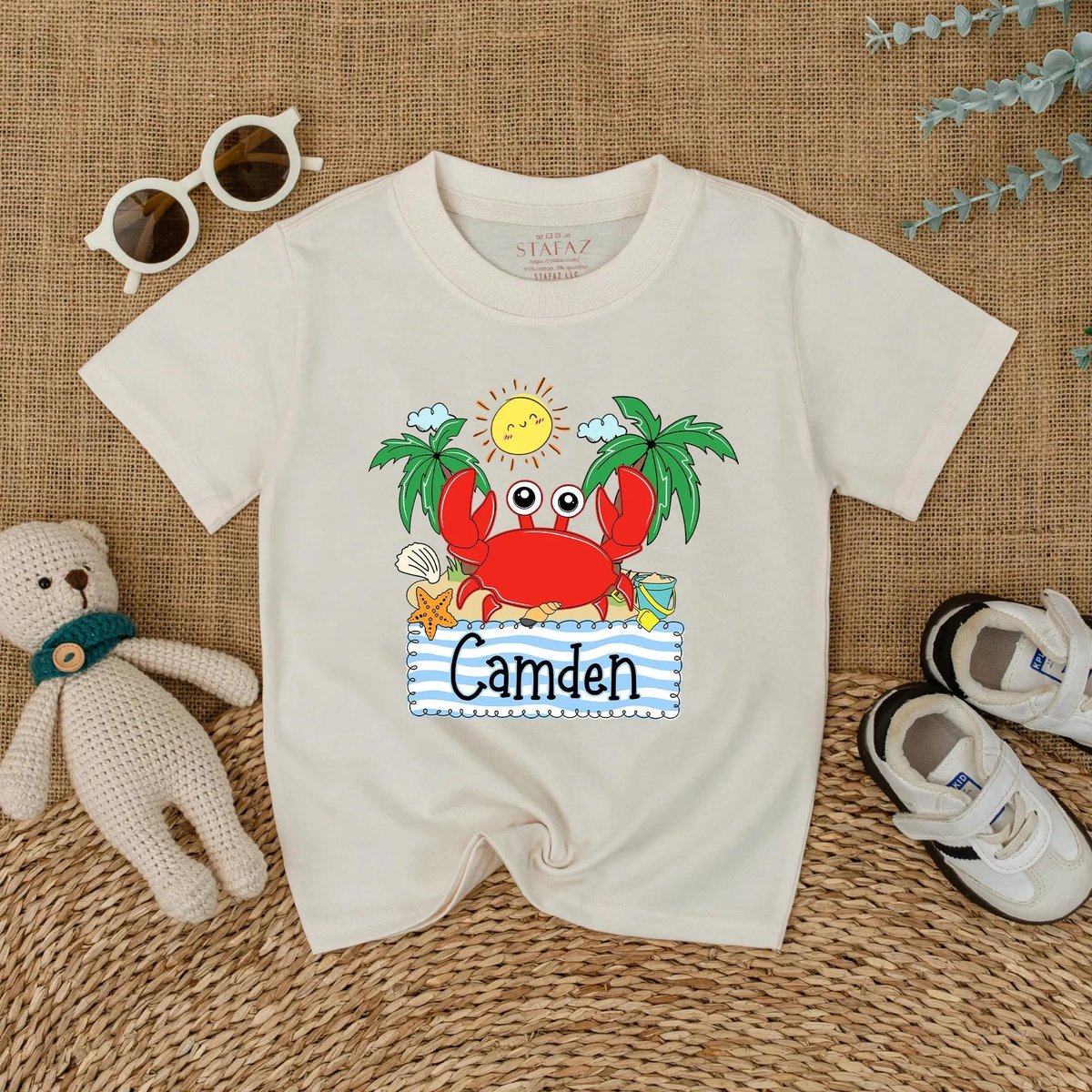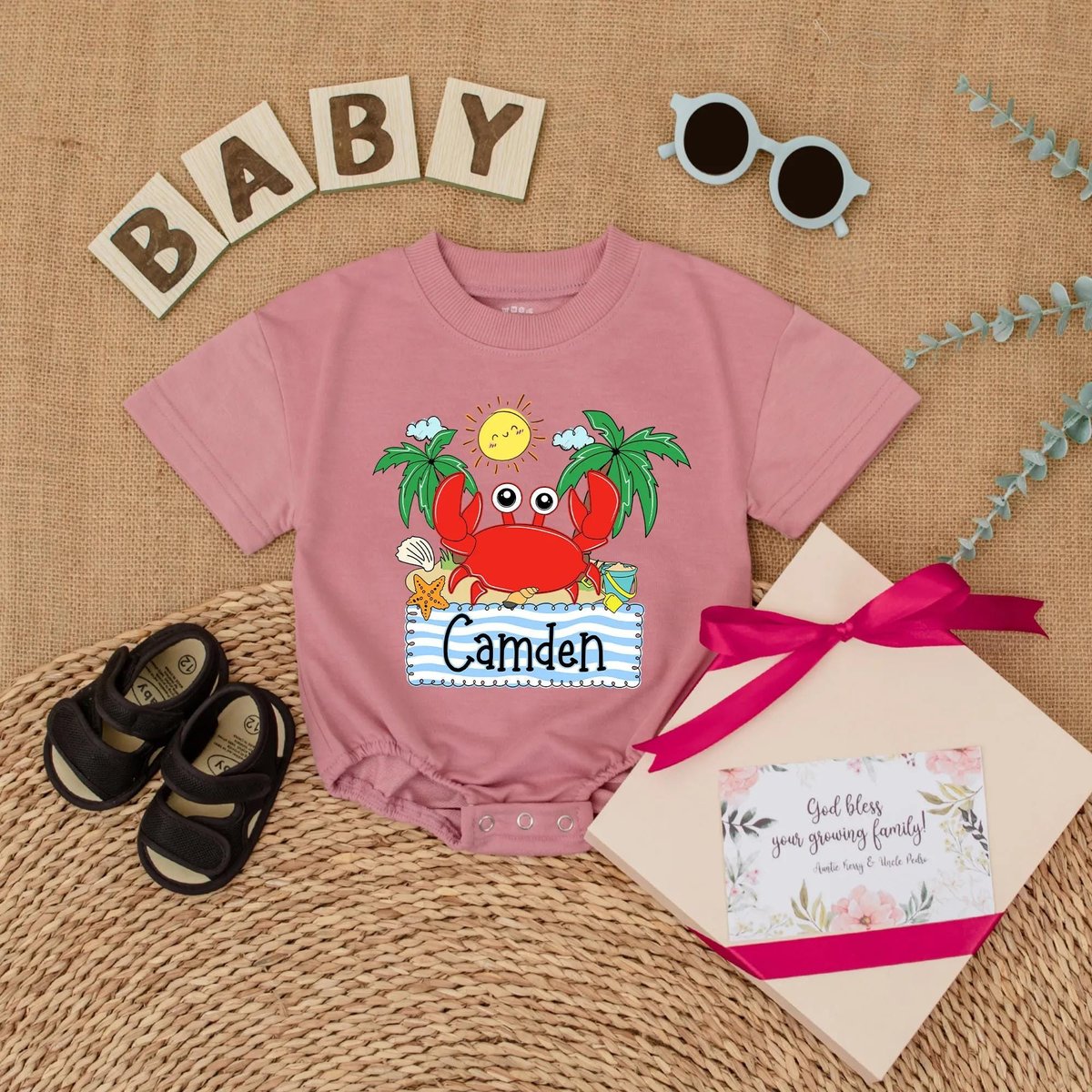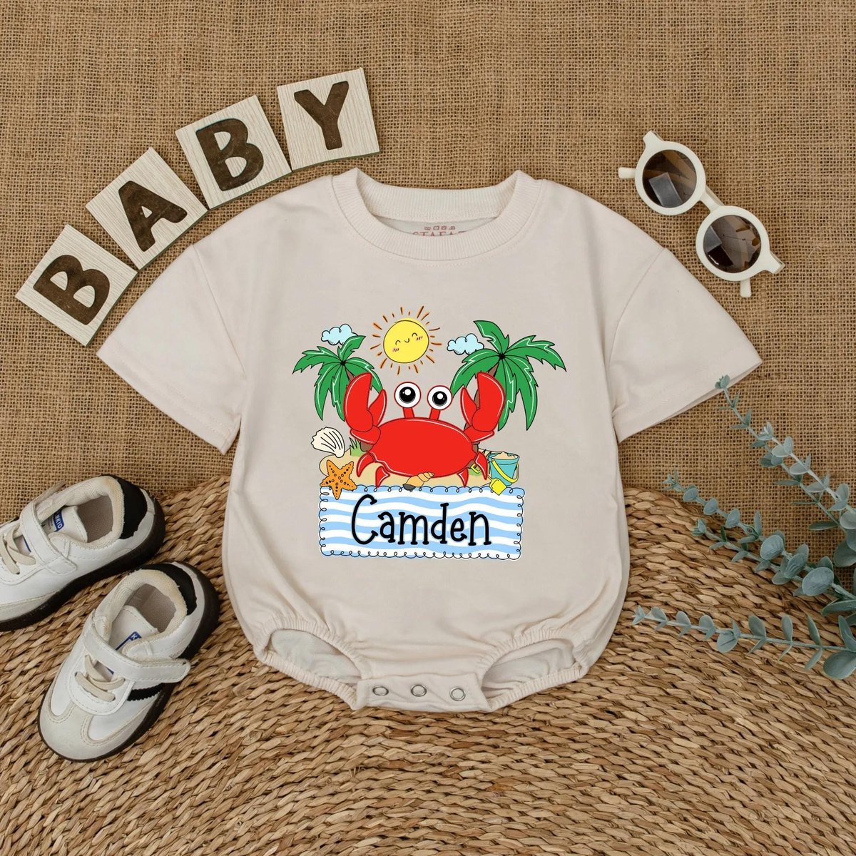 Personalized Summer Crab Baby Romper Custom Name Beach Outfit for Baby Cute Summer Baby Boy Girl Bod 431