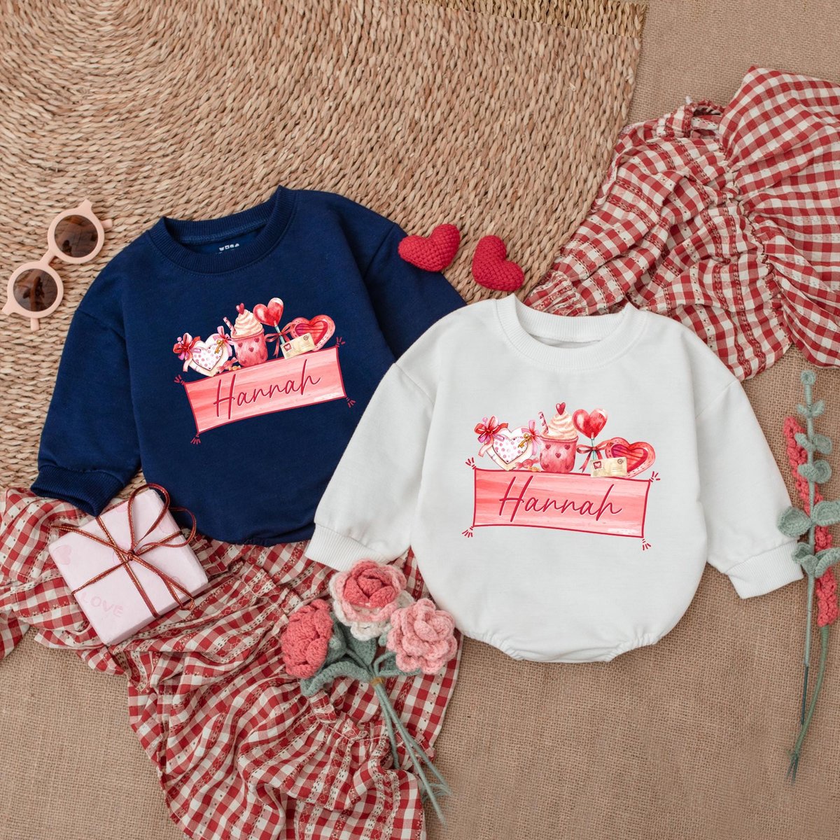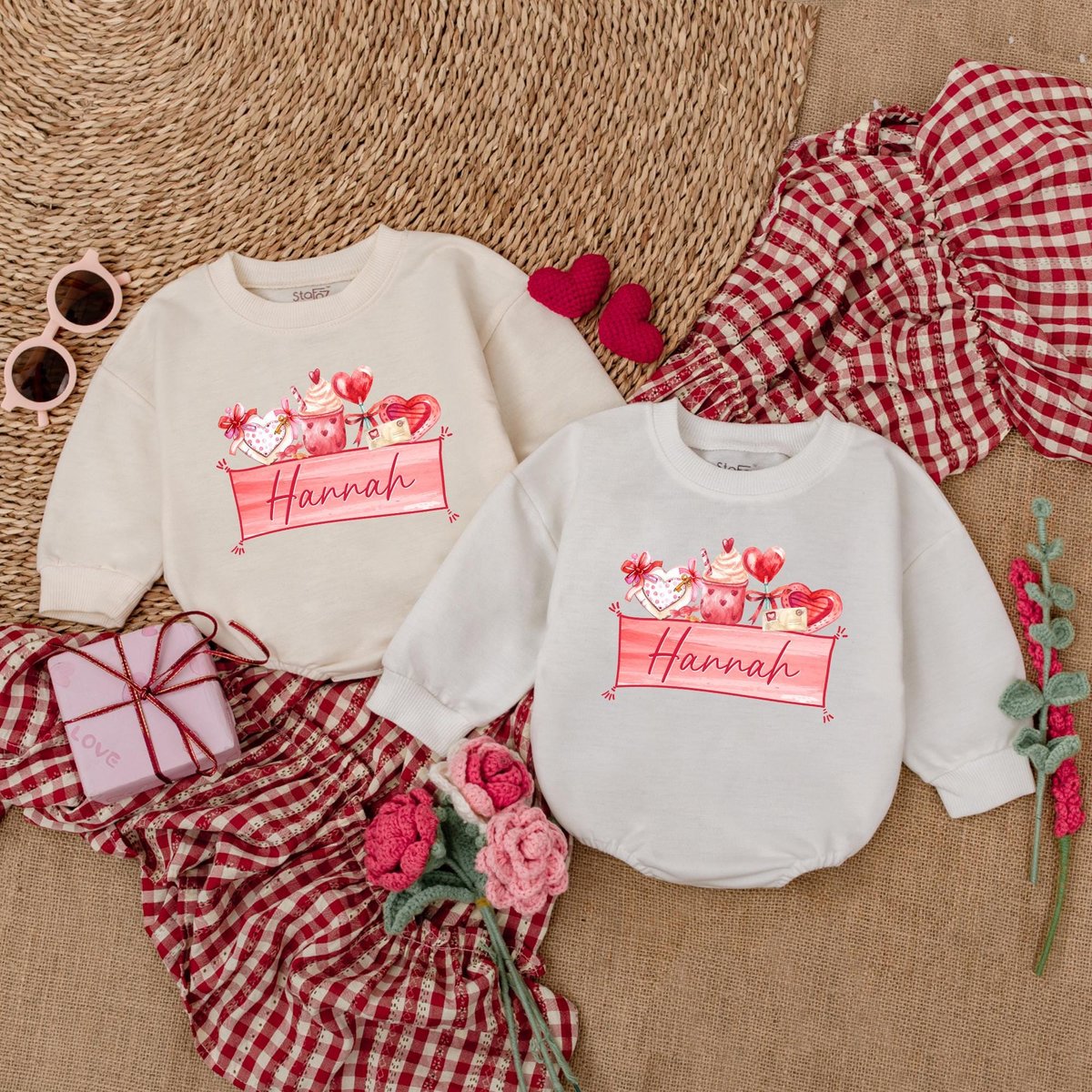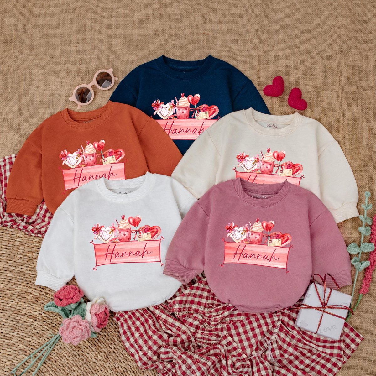 Personalized Valentine Heart Baby Romper Cute Hearts Cupcake Baby Girl Valentine Bodysuit Valentine 183