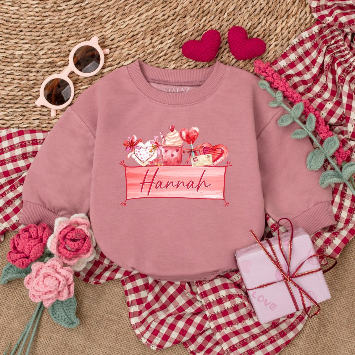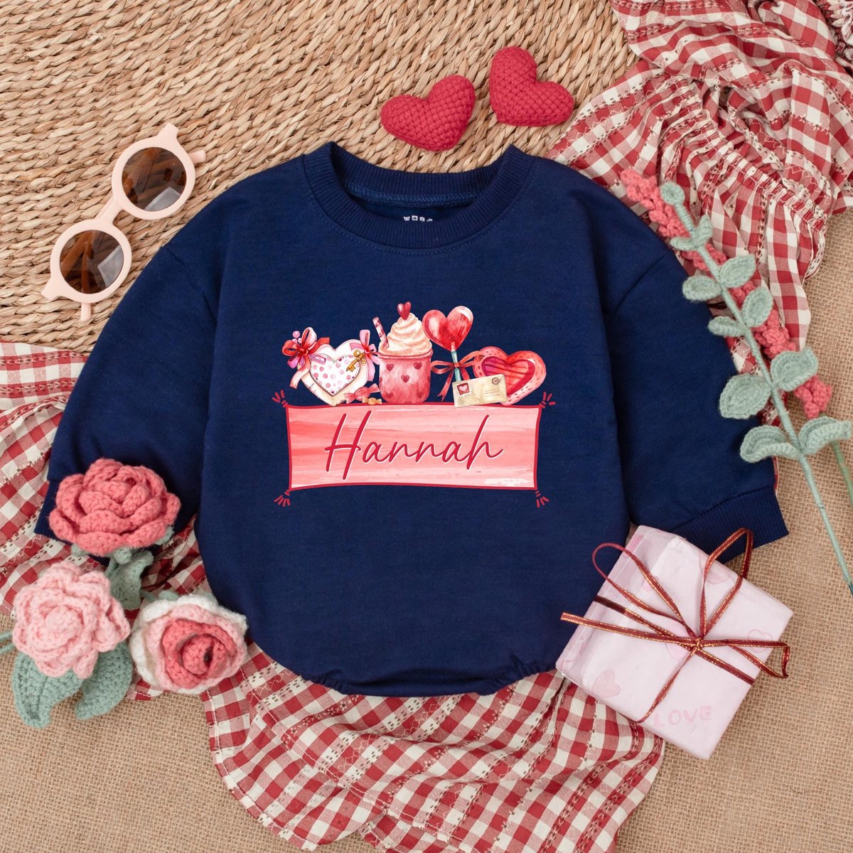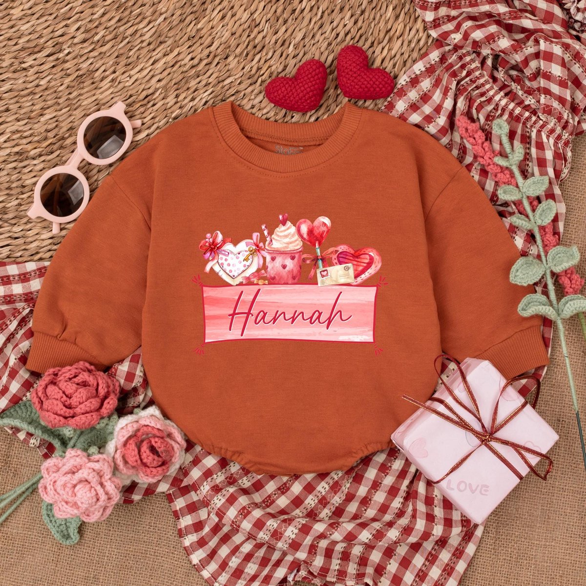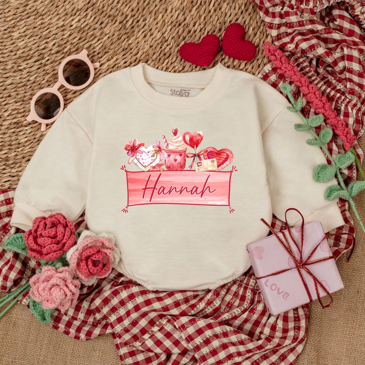 Personalized Valentine Heart Baby Romper Cute Hearts Cupcake Baby Girl Valentine Bodysuit Valentine 183