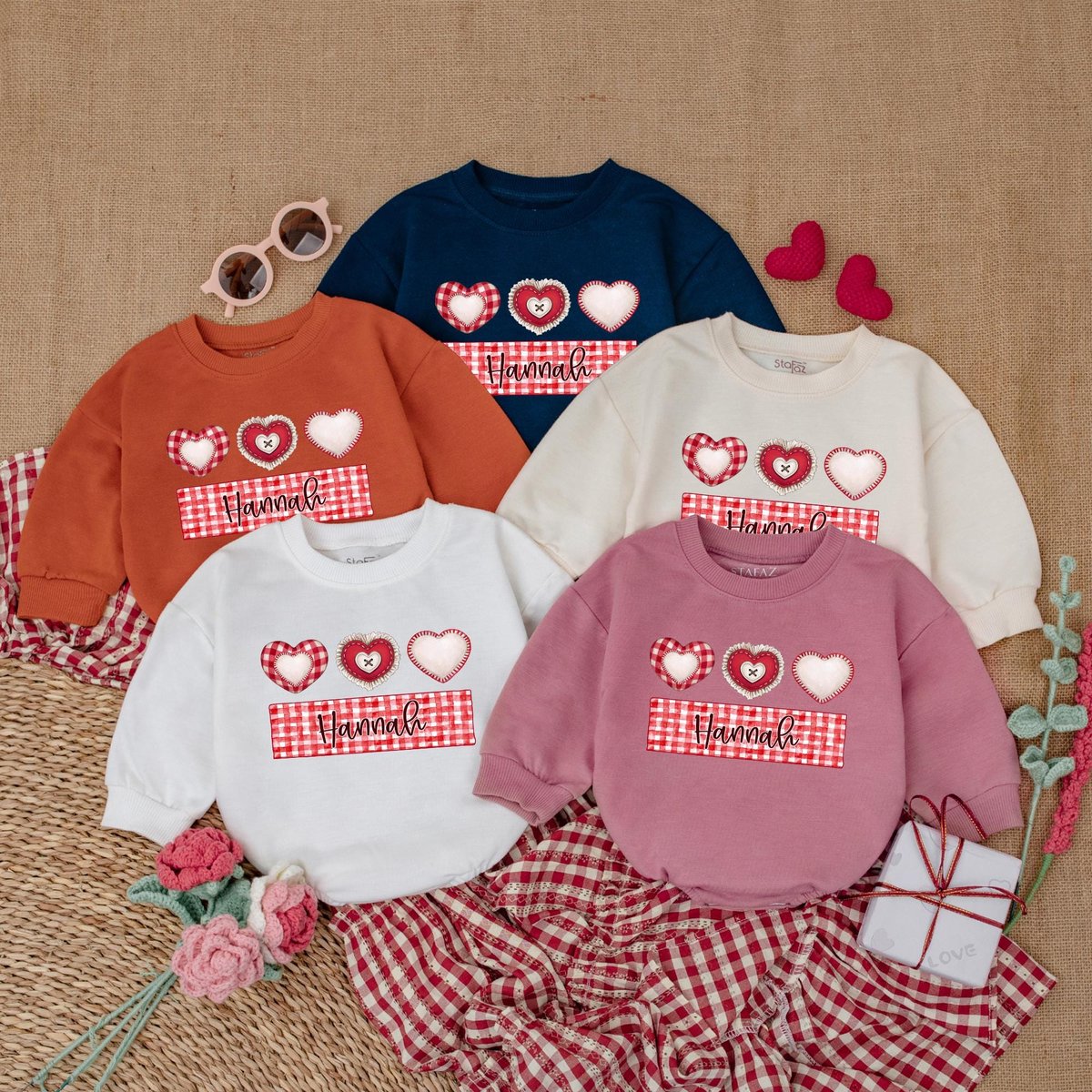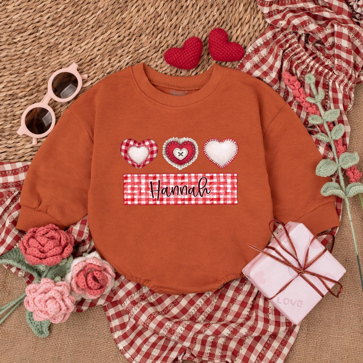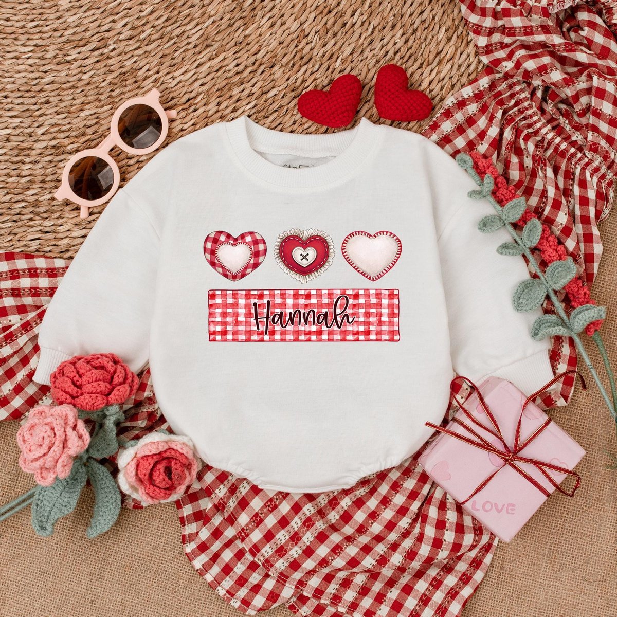 Personalized Valentine Hearts Baby Romper Valentine Custom Name Baby Bodysuit My 1st Valentines Day 183