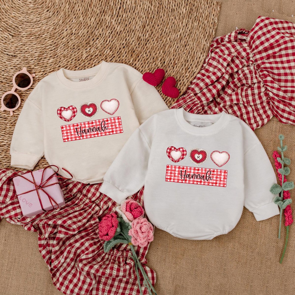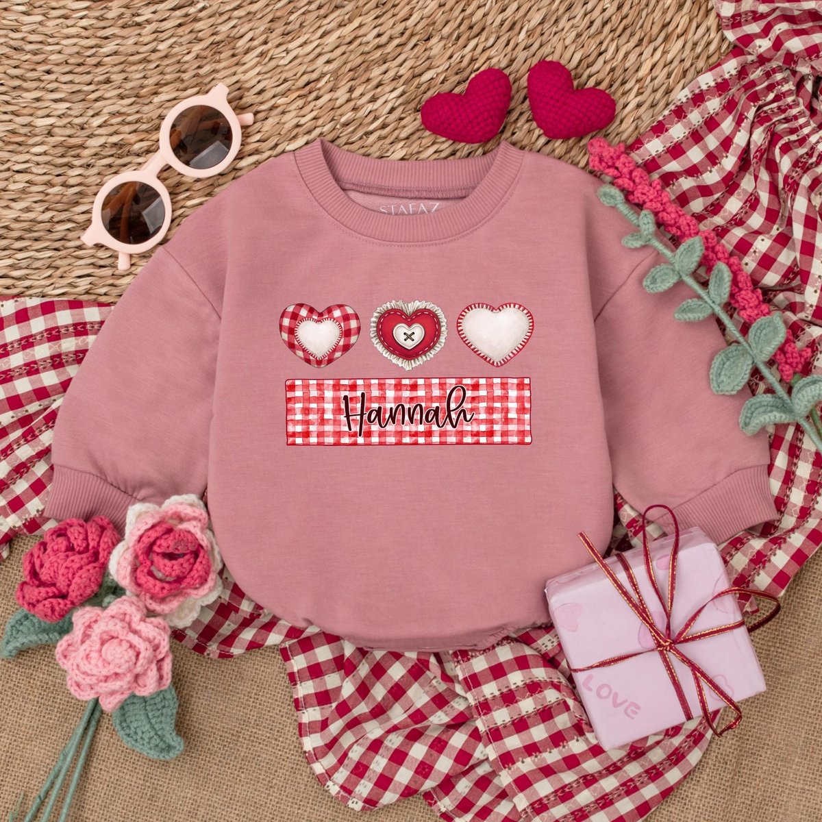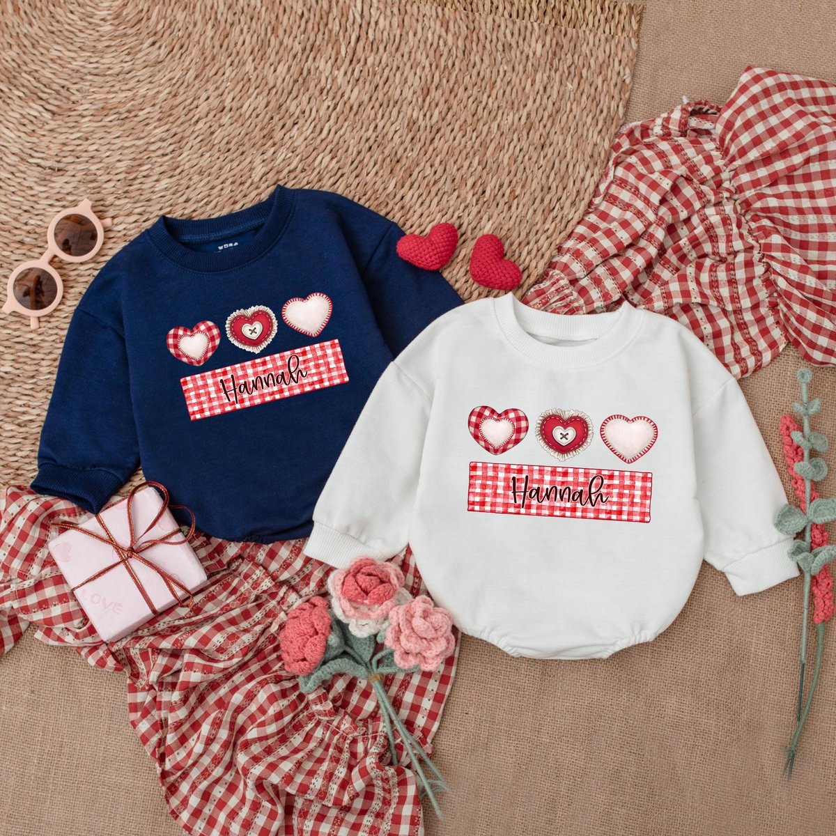 Personalized Valentine Hearts Baby Romper Valentine Custom Name Baby Bodysuit My 1st Valentines Day 183