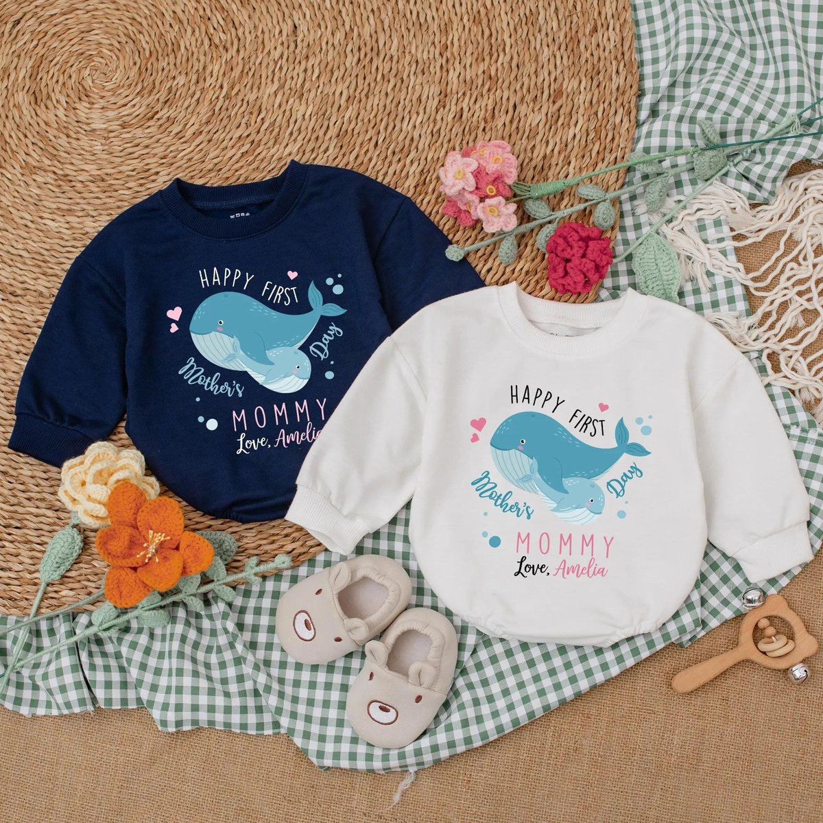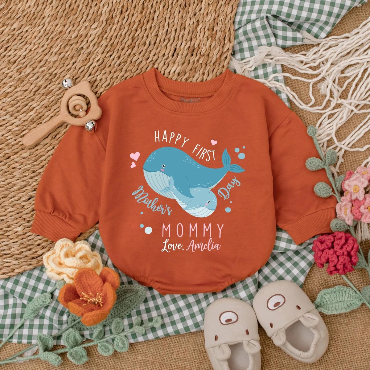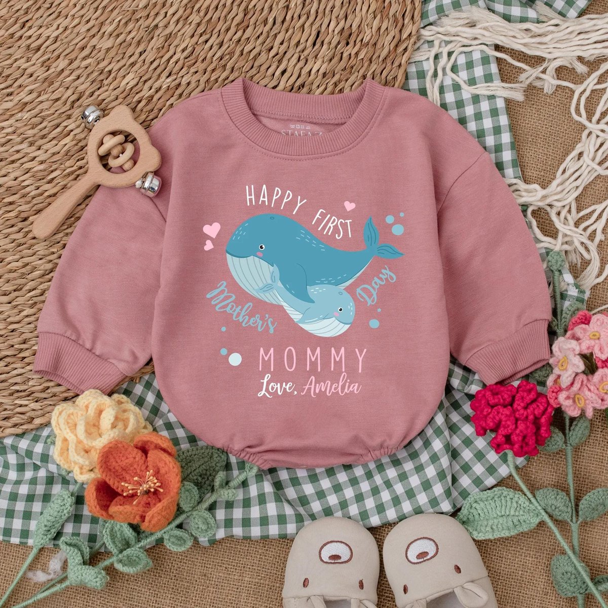 Personalized Whale Happy First Mother’s Day Romper Mum I Whaley Love You Bodysuit Newborn Bubble Ro 189