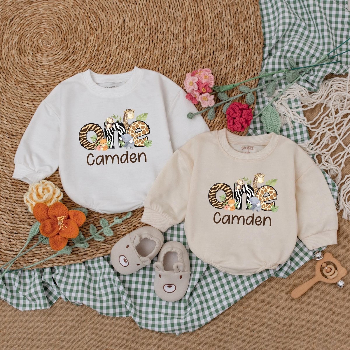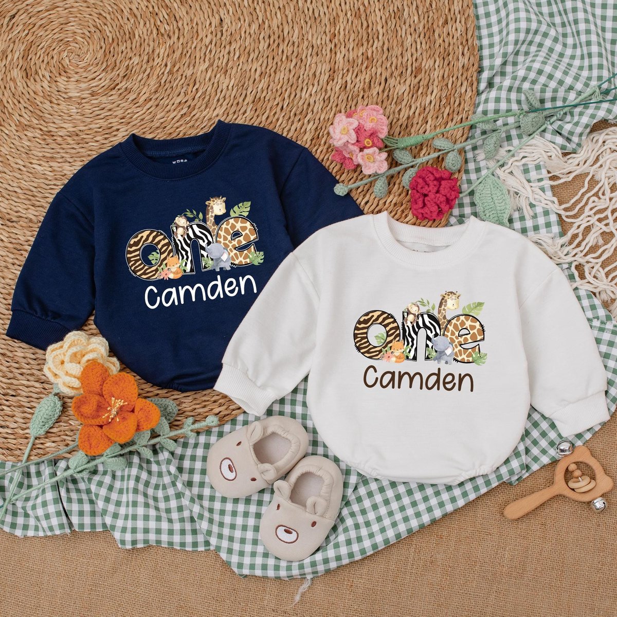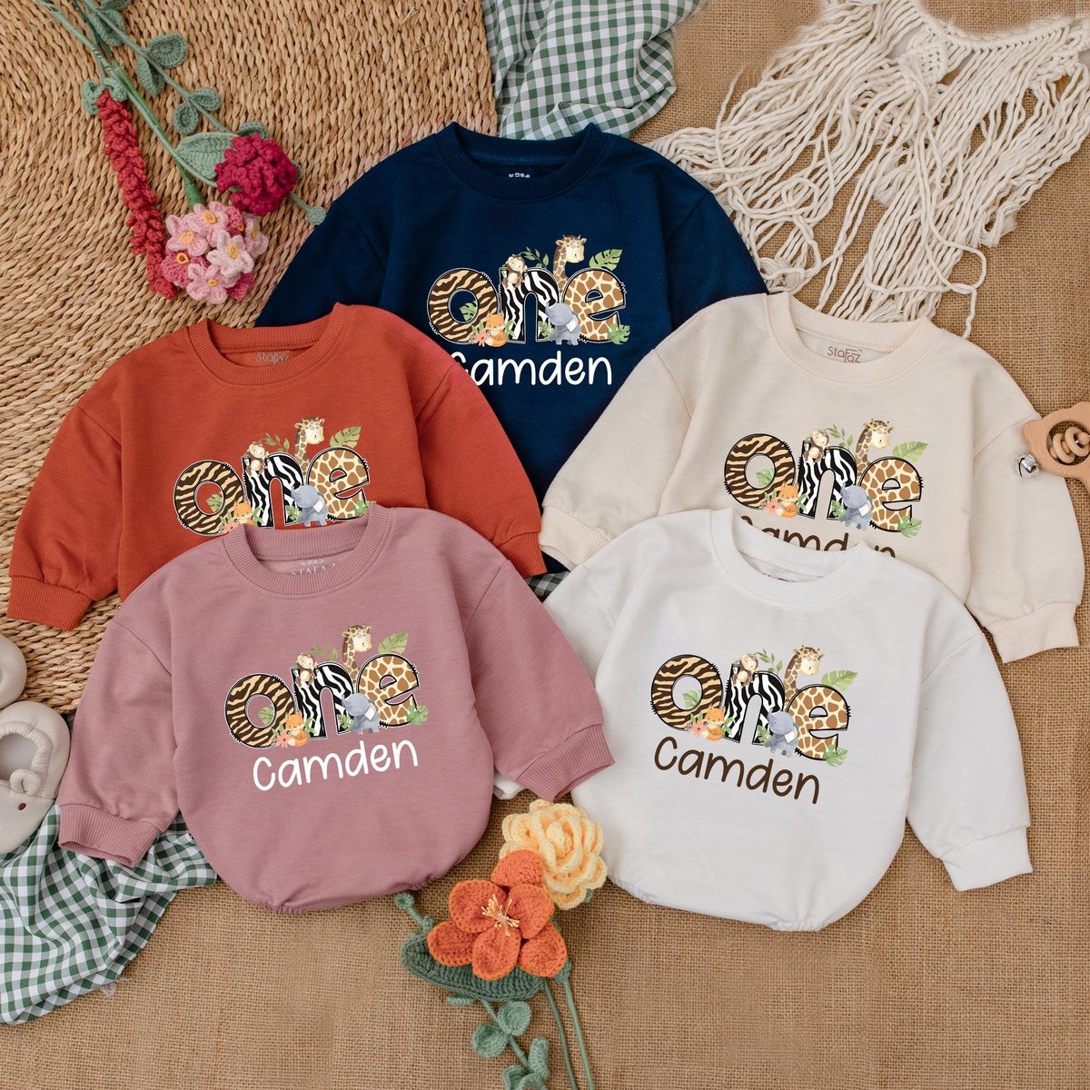 Personalized Wild One Safari Animals Romper Birthday Boy Baby Bodysuit Safari 1st Birthday Outfit Ba 186