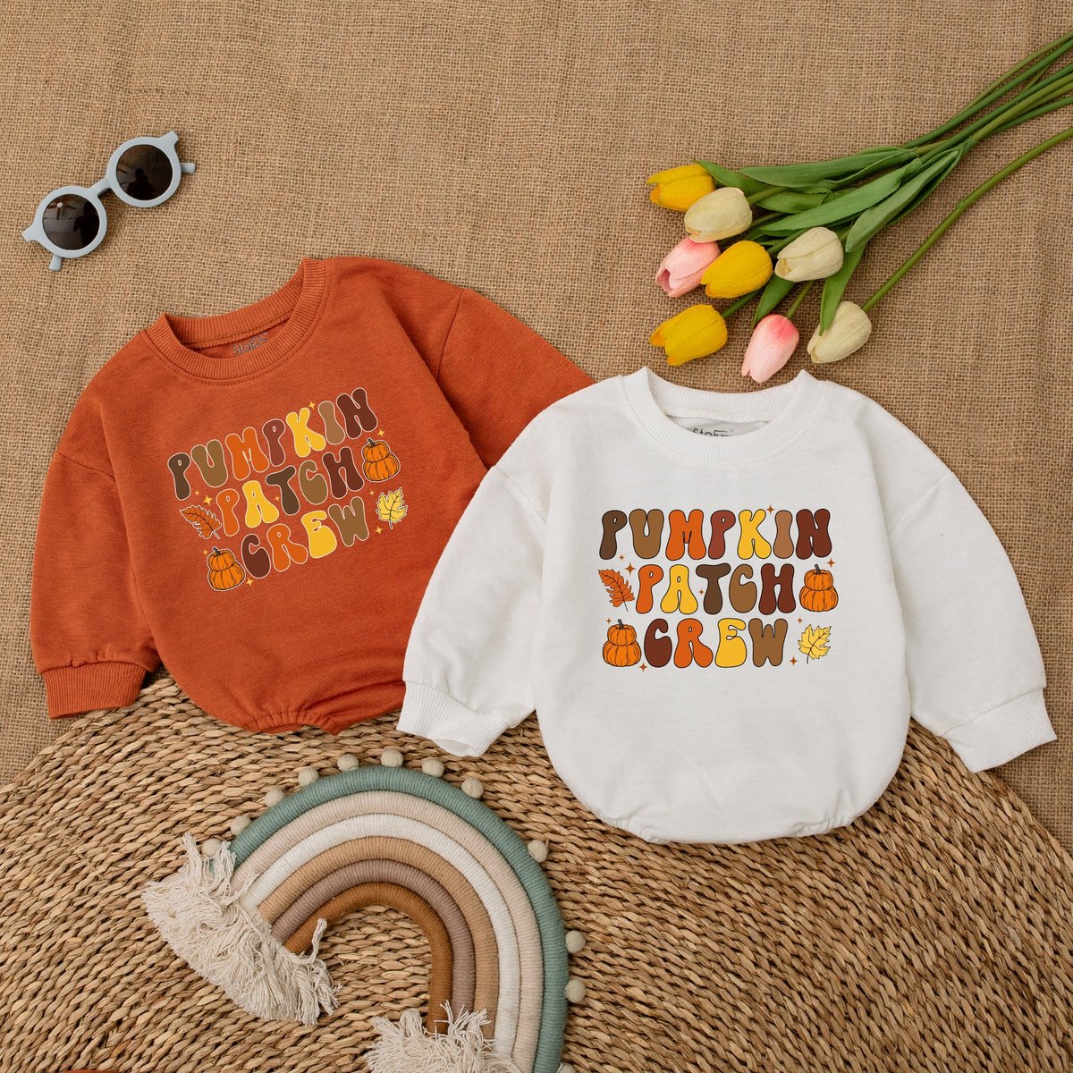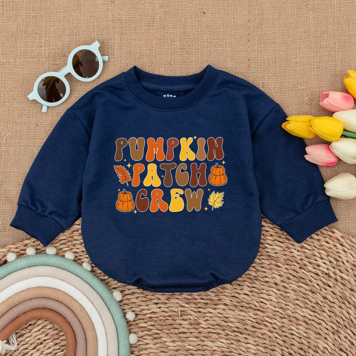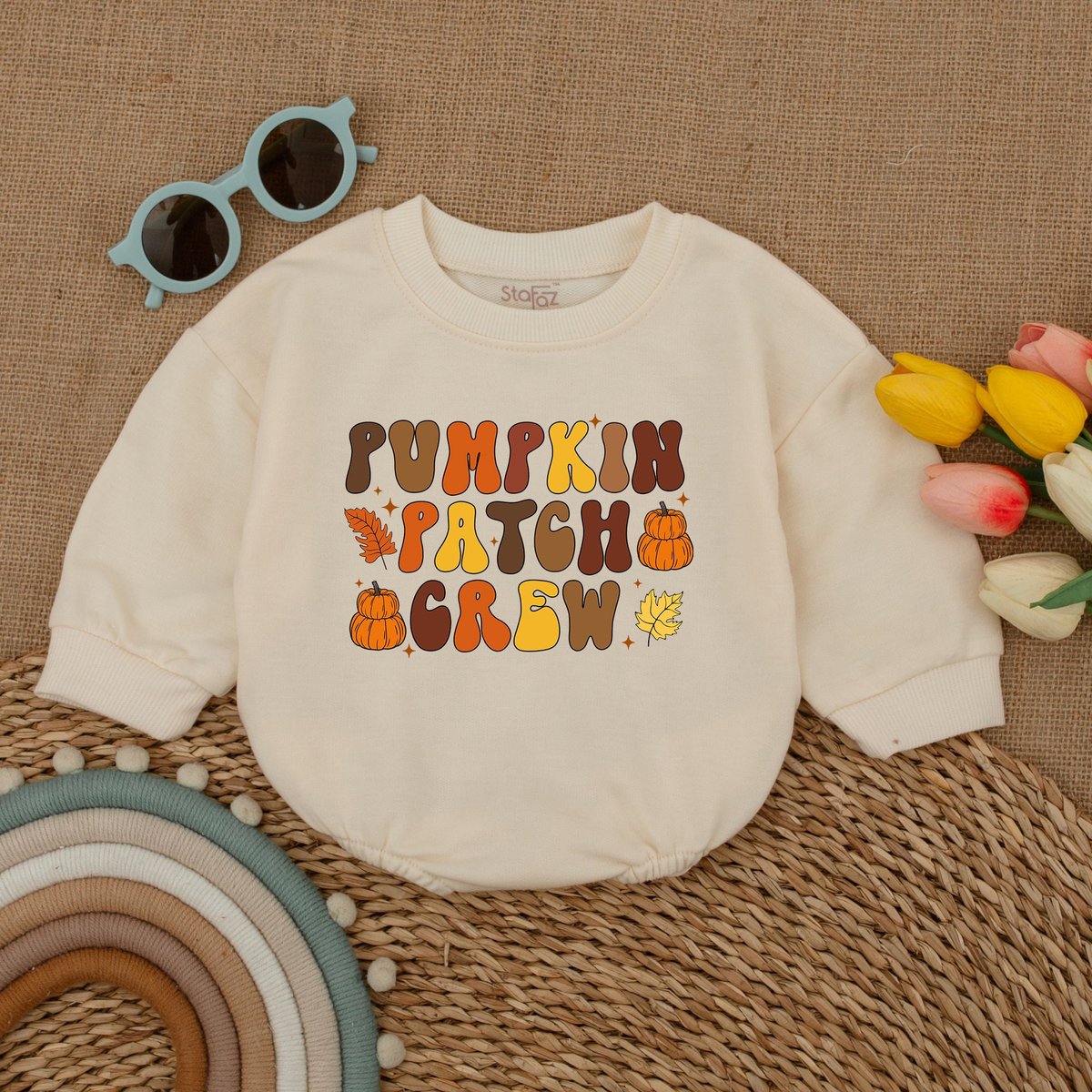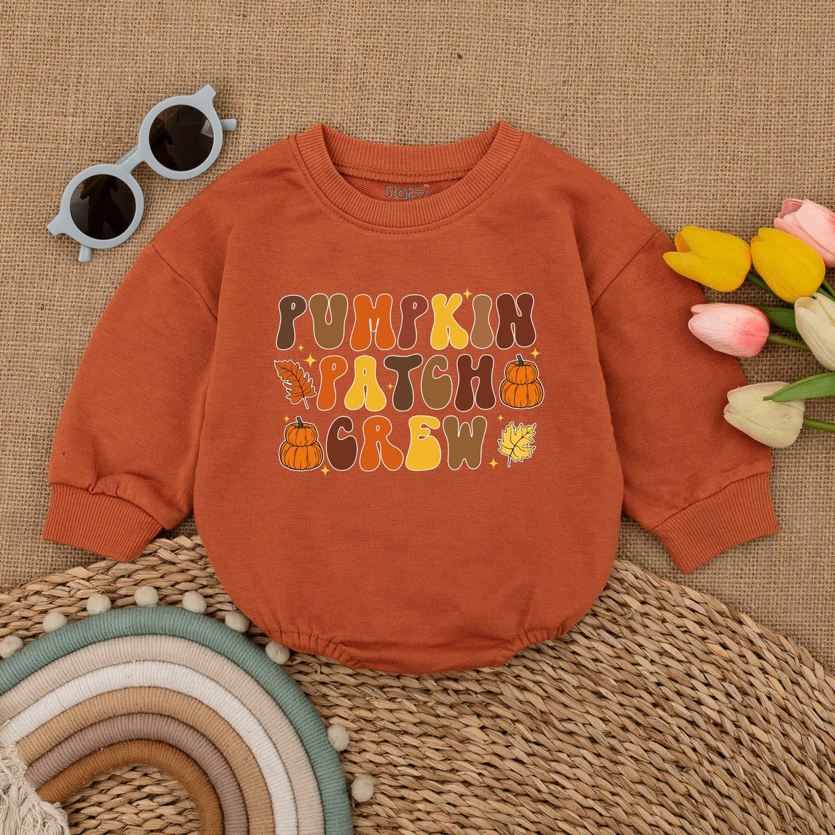 Pumpkin Patch Crew Baby Romper Vintage Pumpkin Bodysuit Baby Thanksgiving Outfit Fall Baby Clothes F 174