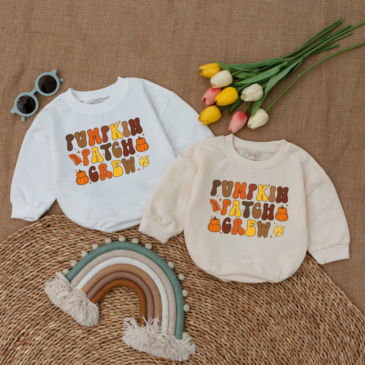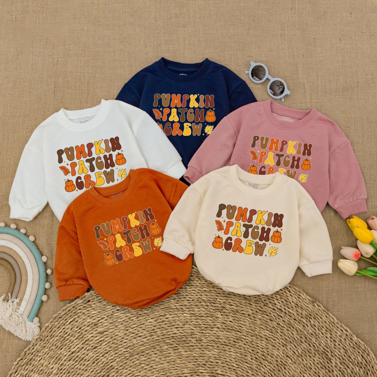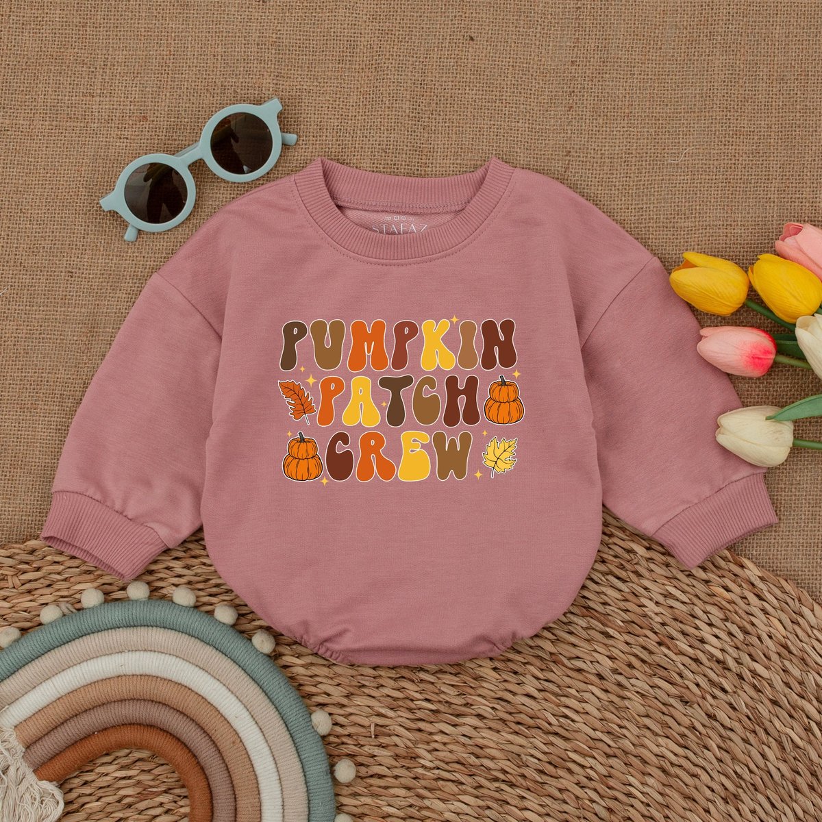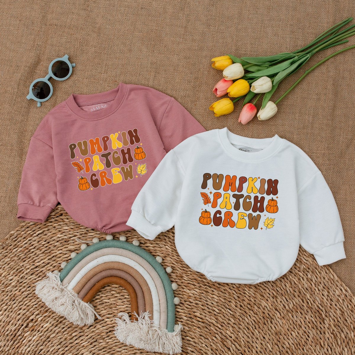 Pumpkin Patch Crew Baby Romper Vintage Pumpkin Bodysuit Baby Thanksgiving Outfit Fall Baby Clothes F 174