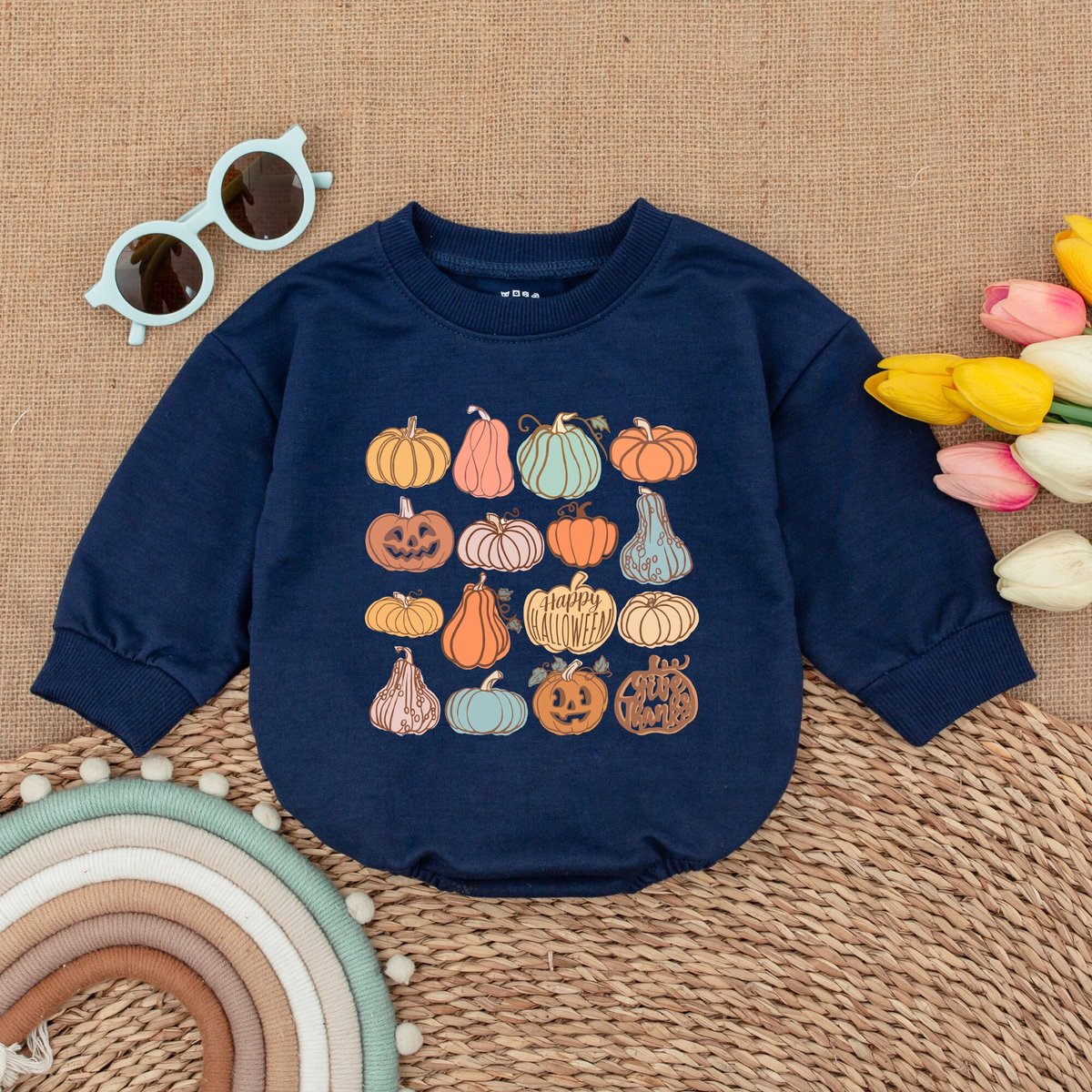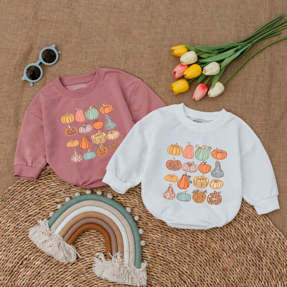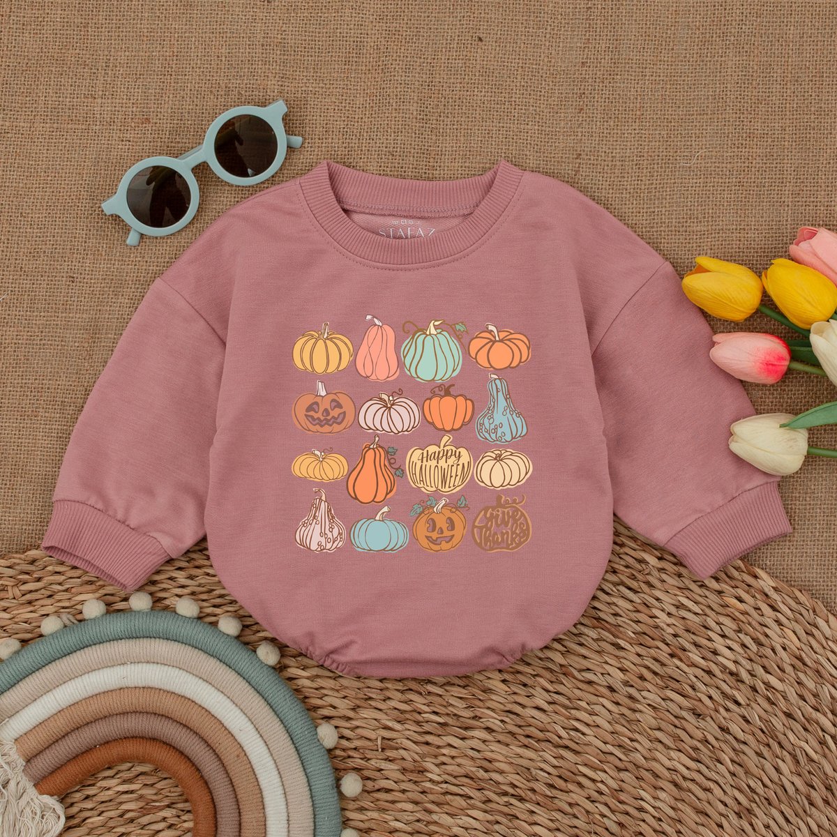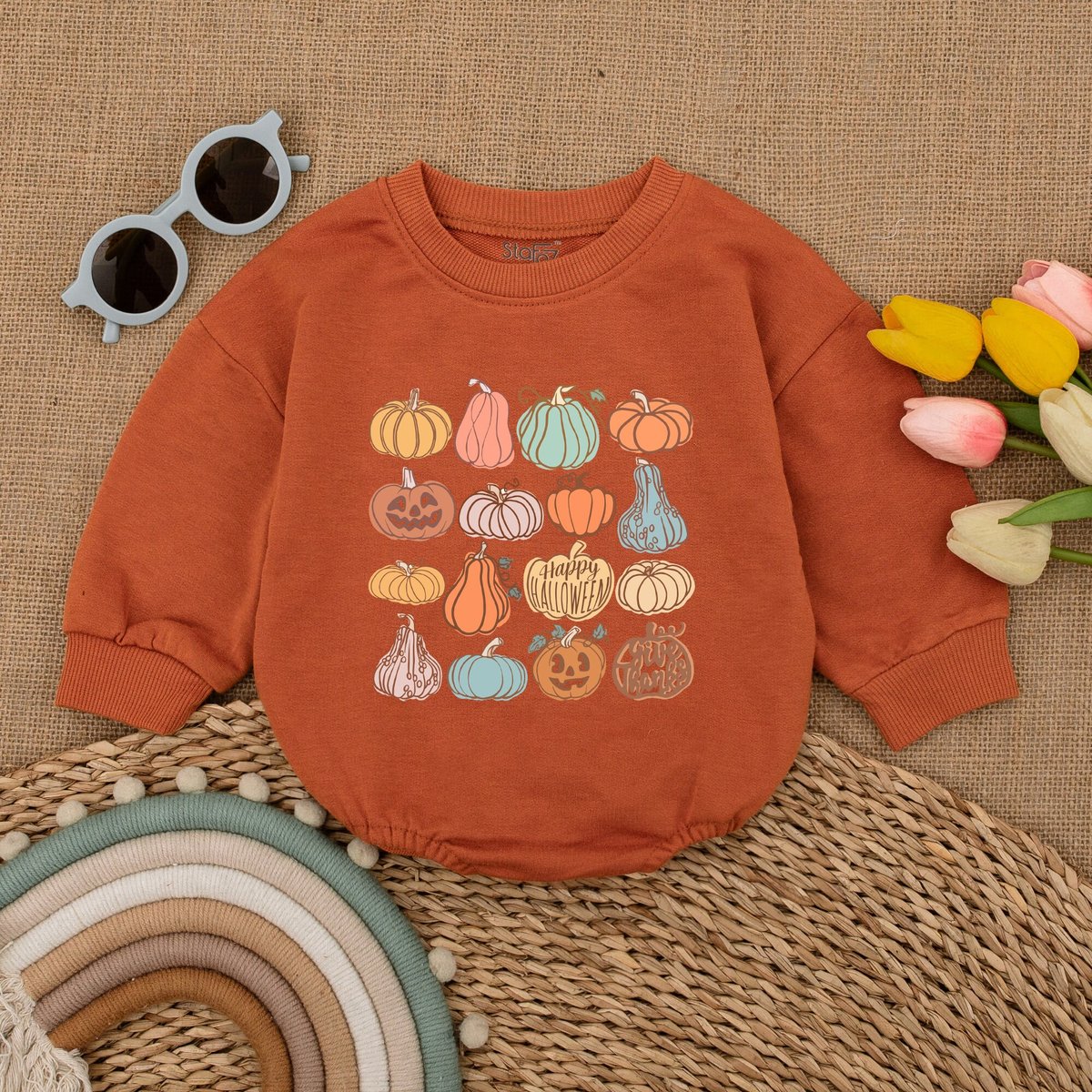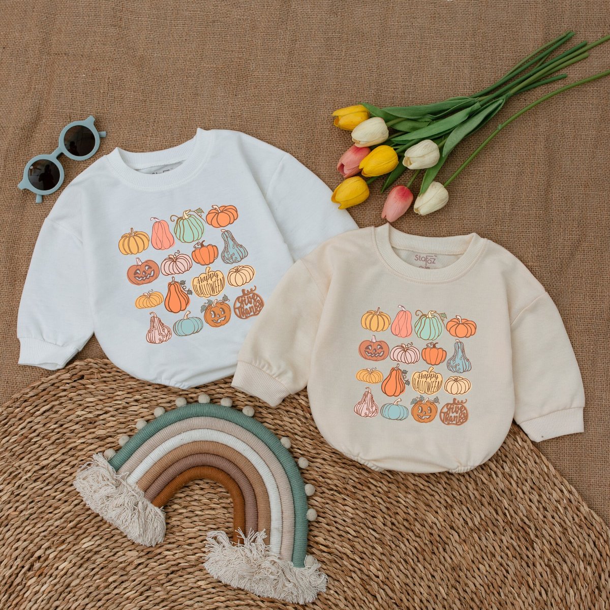 Retro Pumpkin Baby Romper Thanksgiving Baby Bodysuit Retro Fall Baby Bodysuit Fall Baby Outfit Autum 175