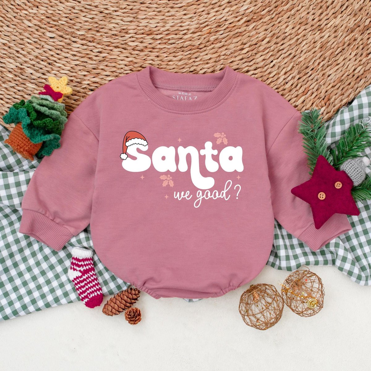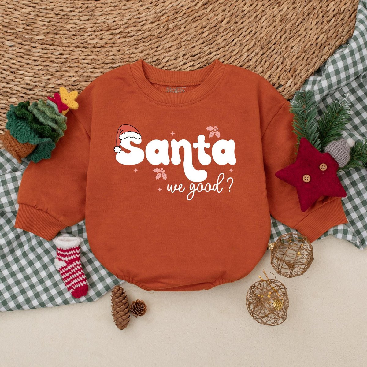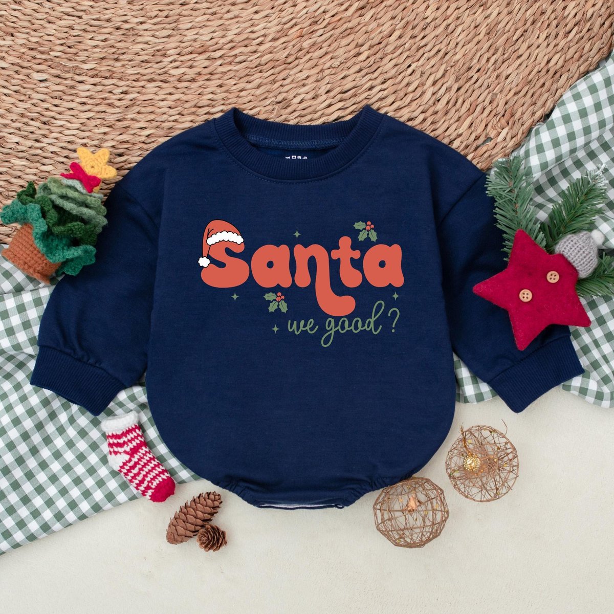 Santa We Good Baby Romper Christmas Baby Bodysuit Christmas Bubble Romper First Christmas Outfit Fun 179