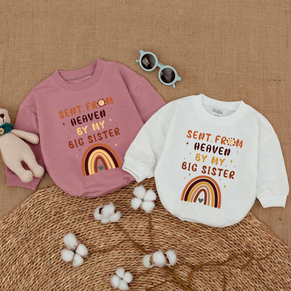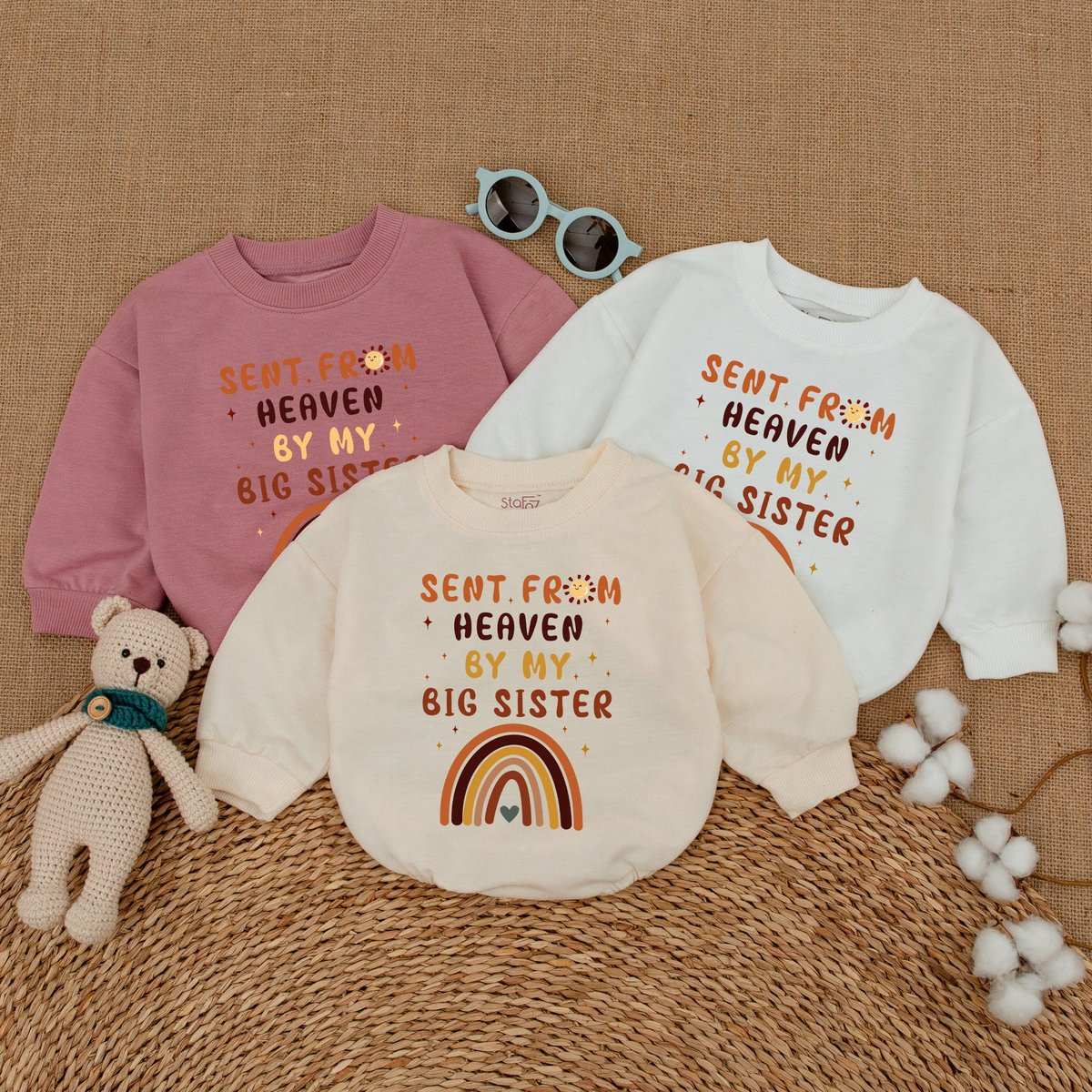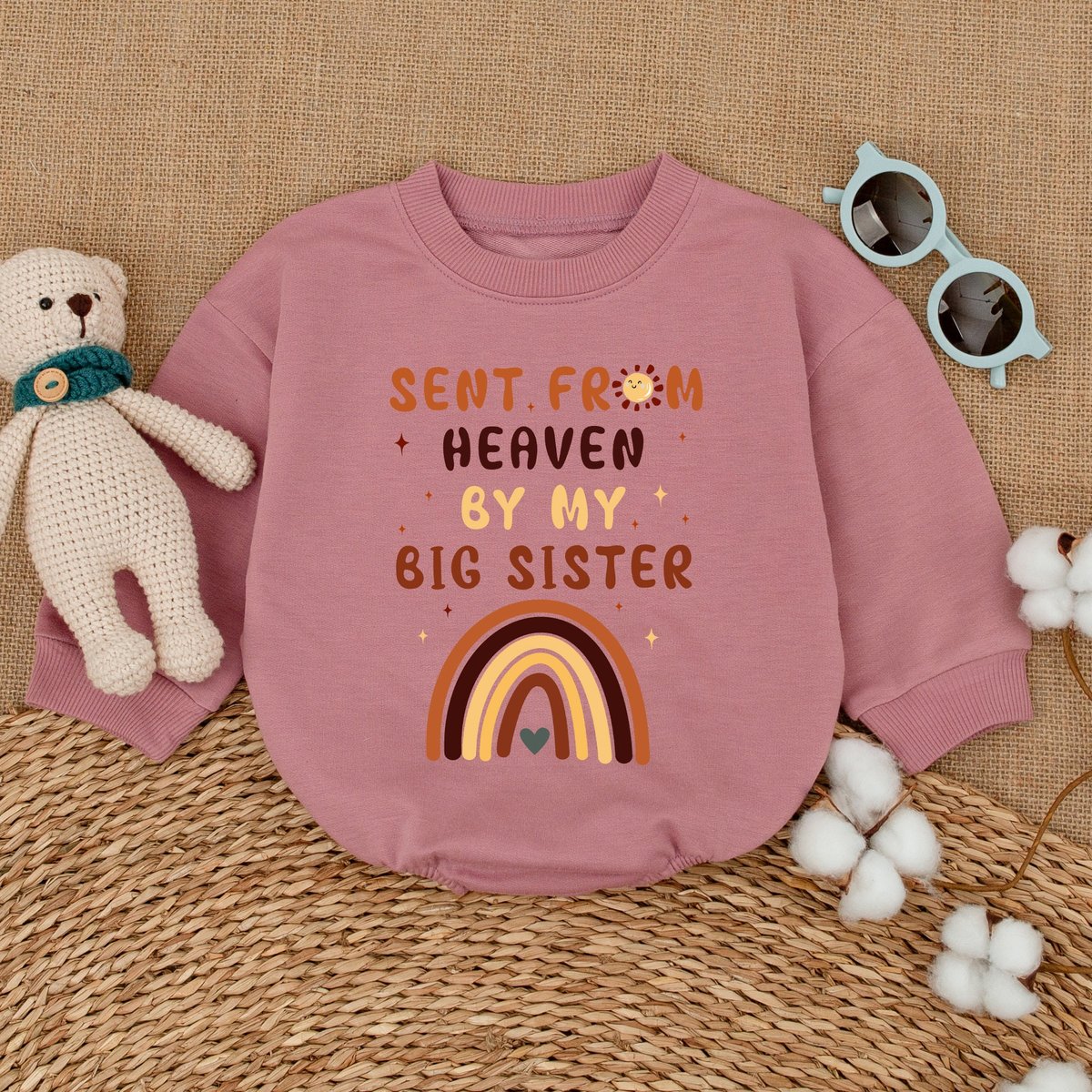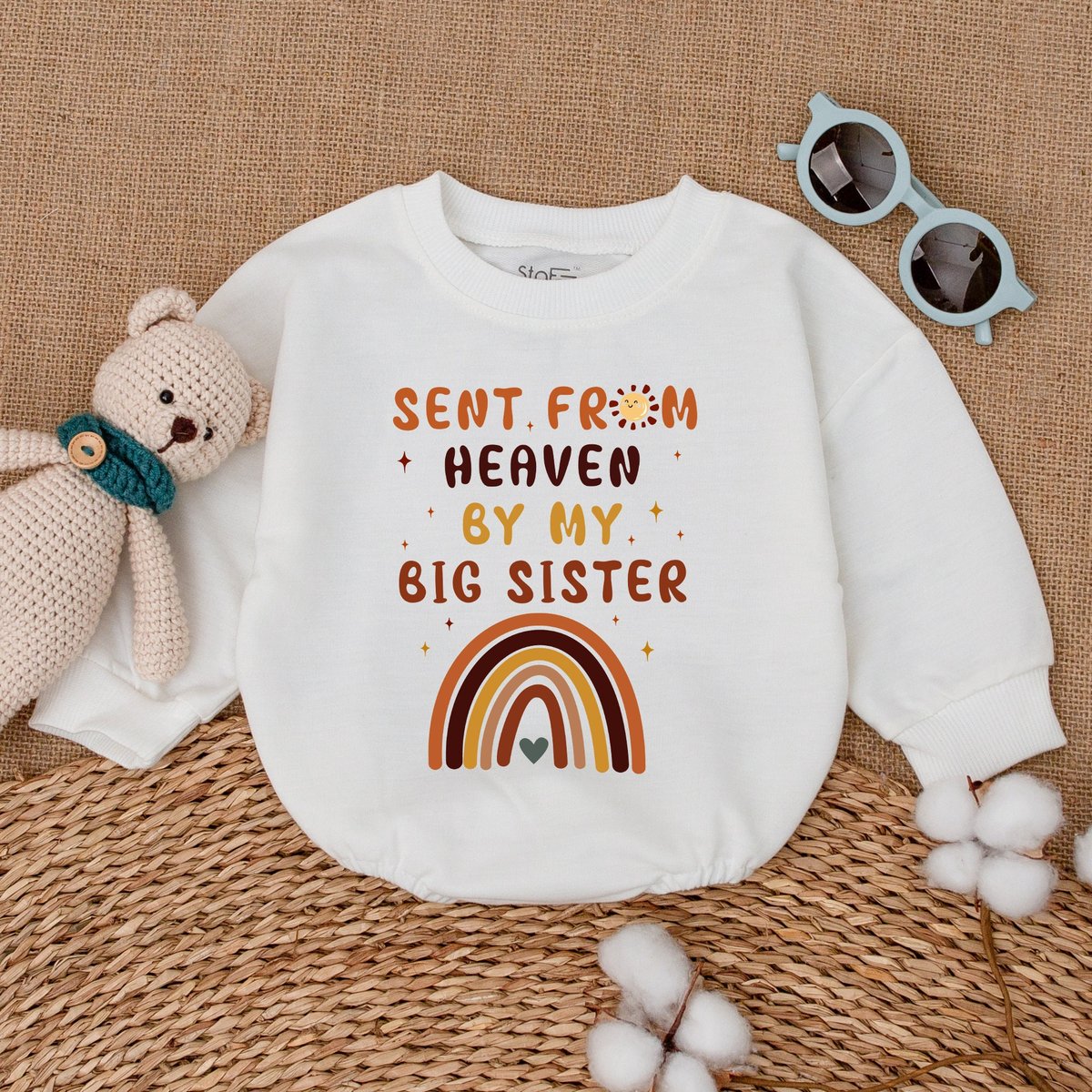 Sent From Heaven By My Big Sister Romper Guardian Angel Bodysuit Sibling Newborn Bubble Romper Comin 170
