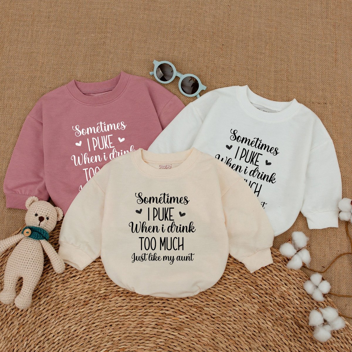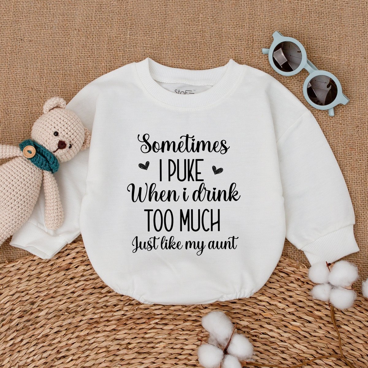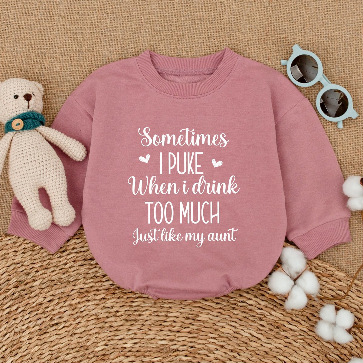 Sometimes I Puke When I Drink Too Much Just Like My Aunt Romper Auntie’s Bestie Baby Bodysuit Retro 169