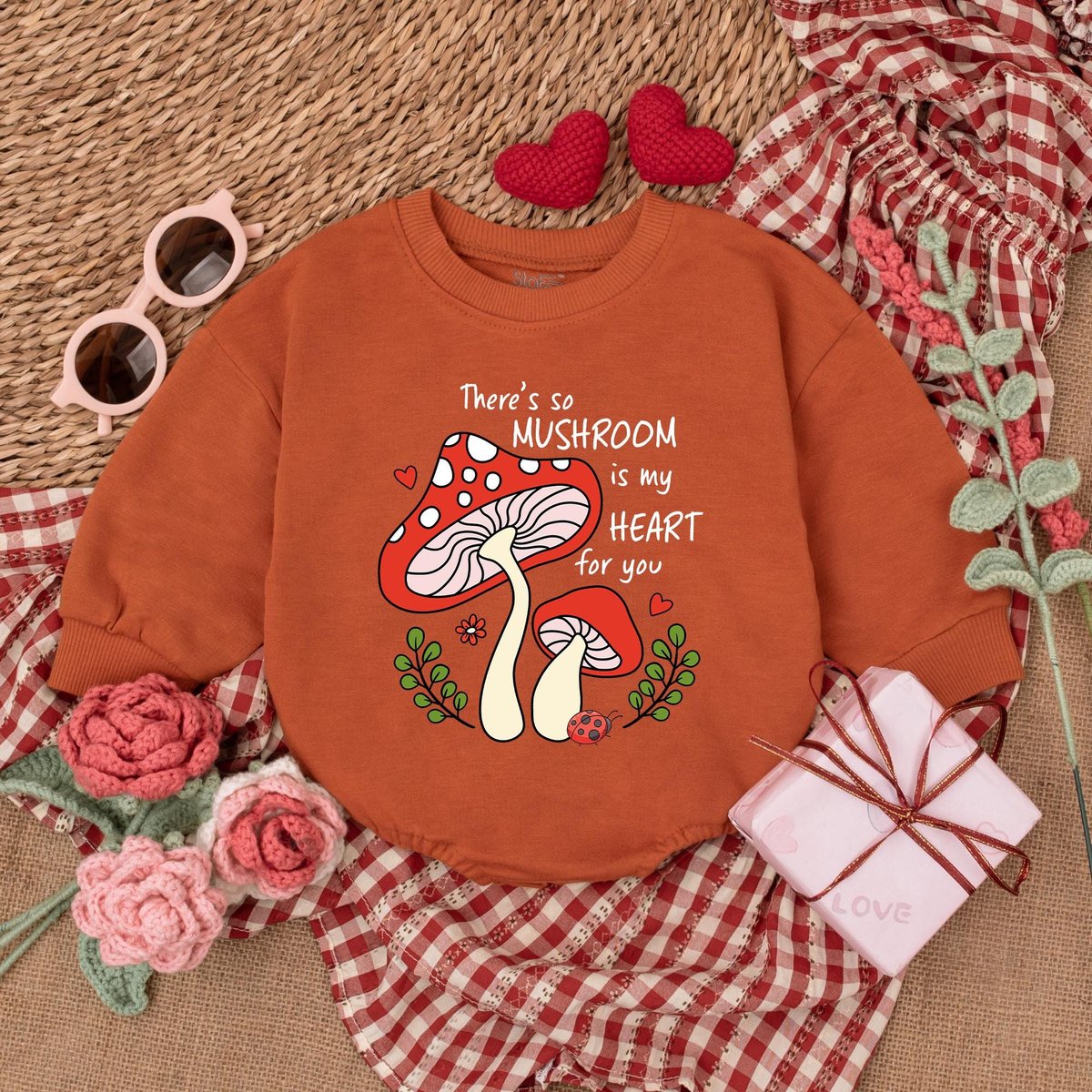 There’s So Mushroom In My Heart For You Baby Romper Baby Valentine Bodysuit 1st Valentines Day Outf 183