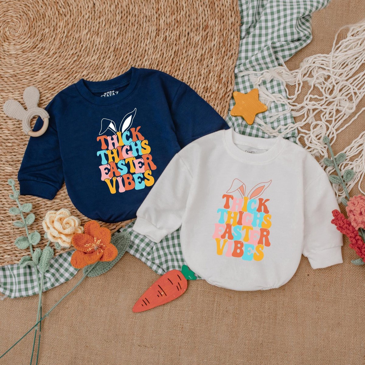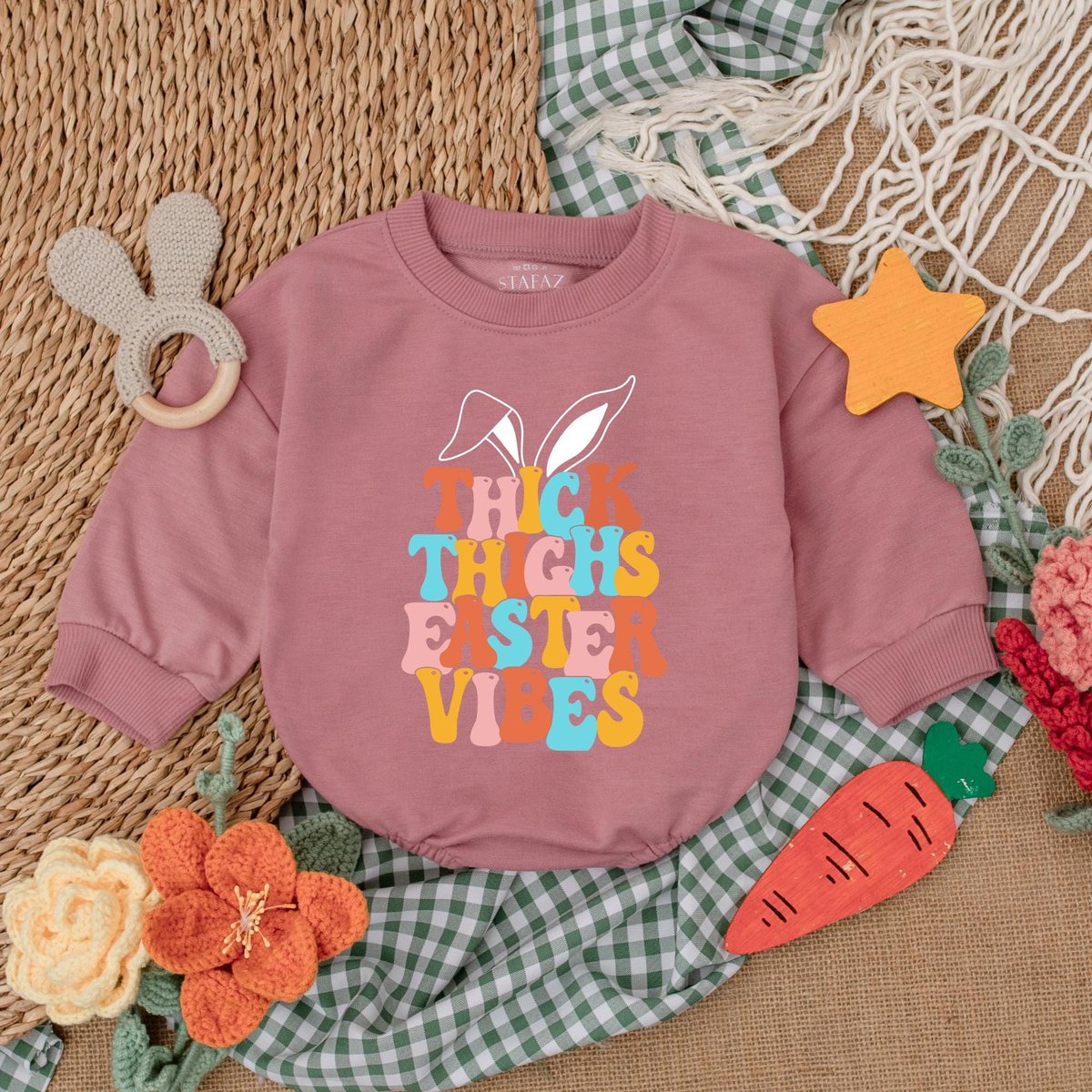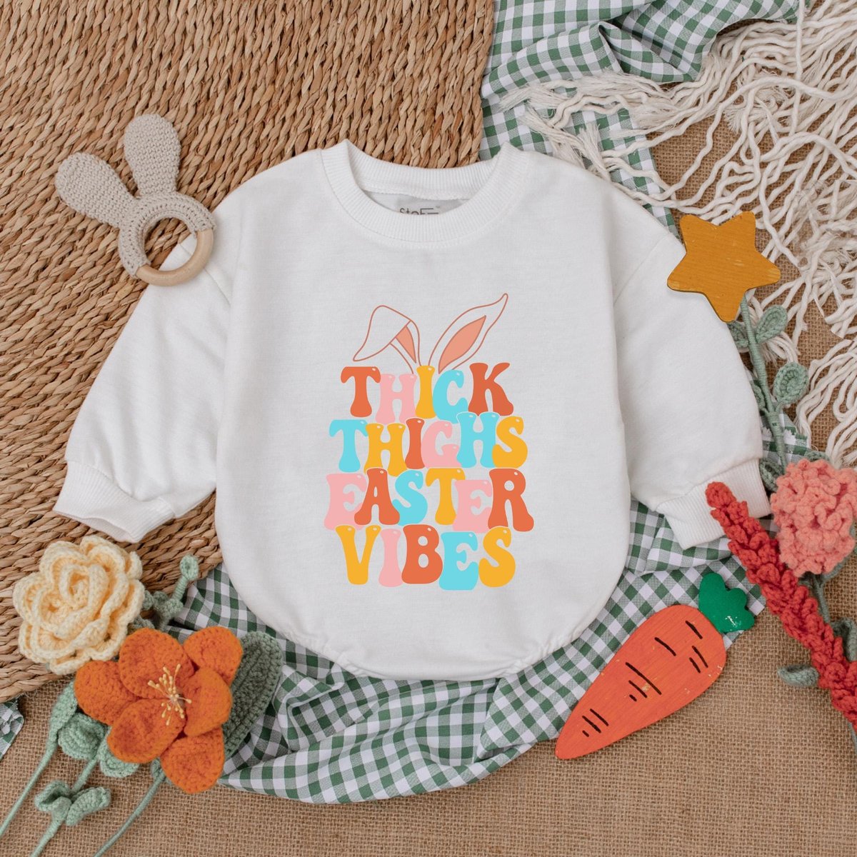 Thick Thighs Easter Vibes Baby Romper Easter Baby Bodysuit Easter Day Baby Gift My First Easter Outf 186