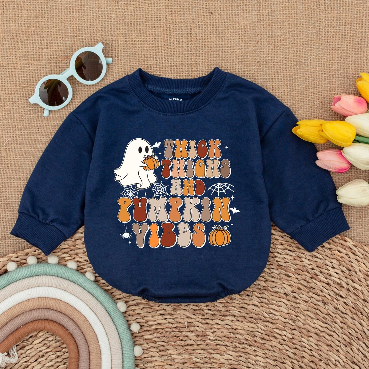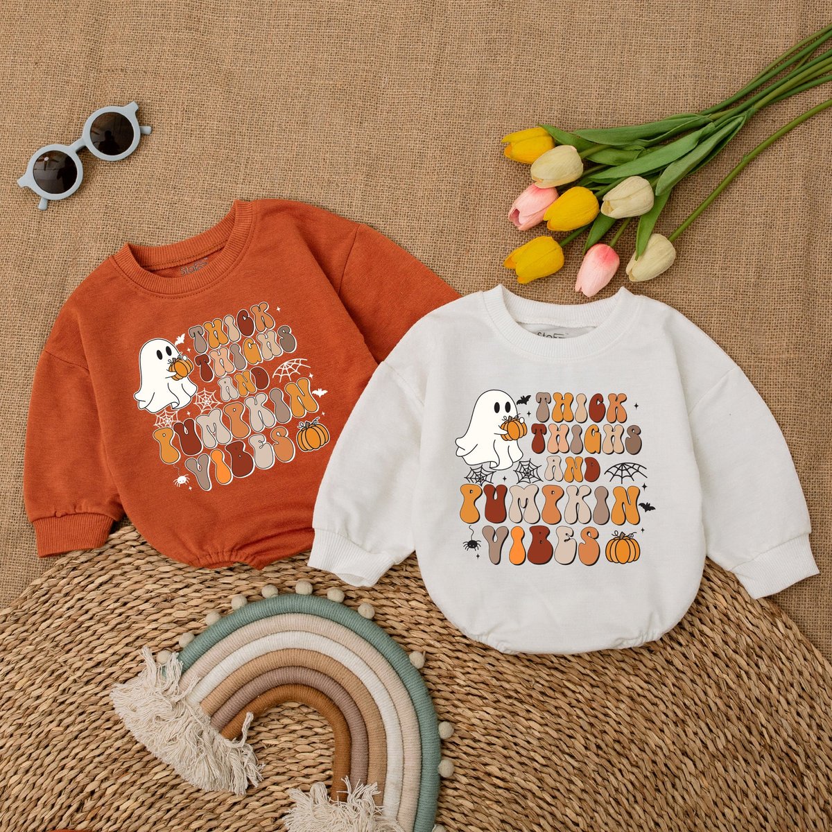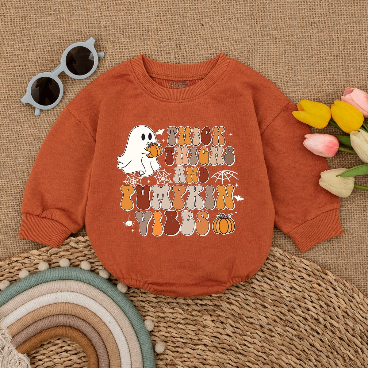 Thick Thighs And Pumpkin Vibes Baby Romper Halloween Ghost Bodysuit Fall Baby Outfit Halloween Baby 174