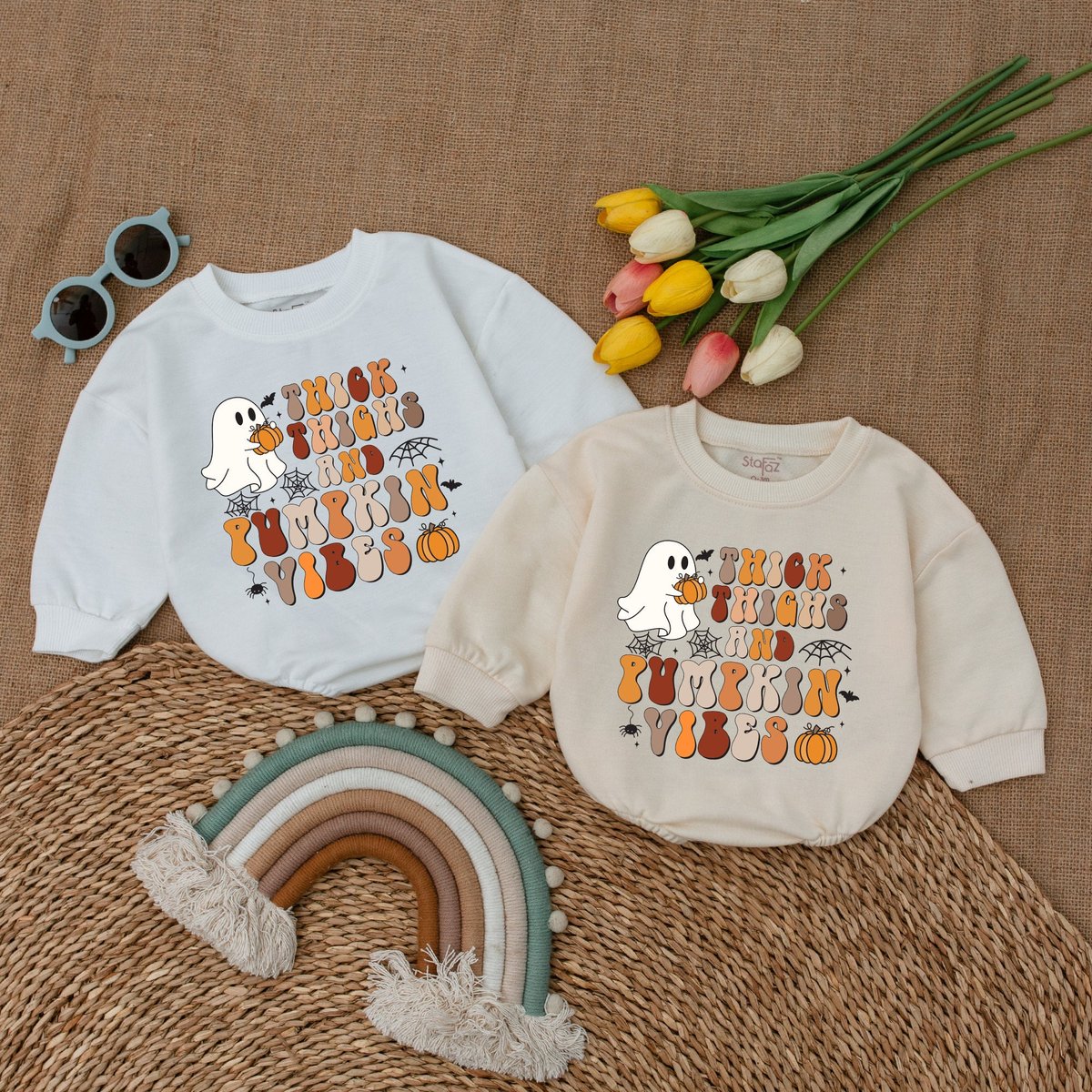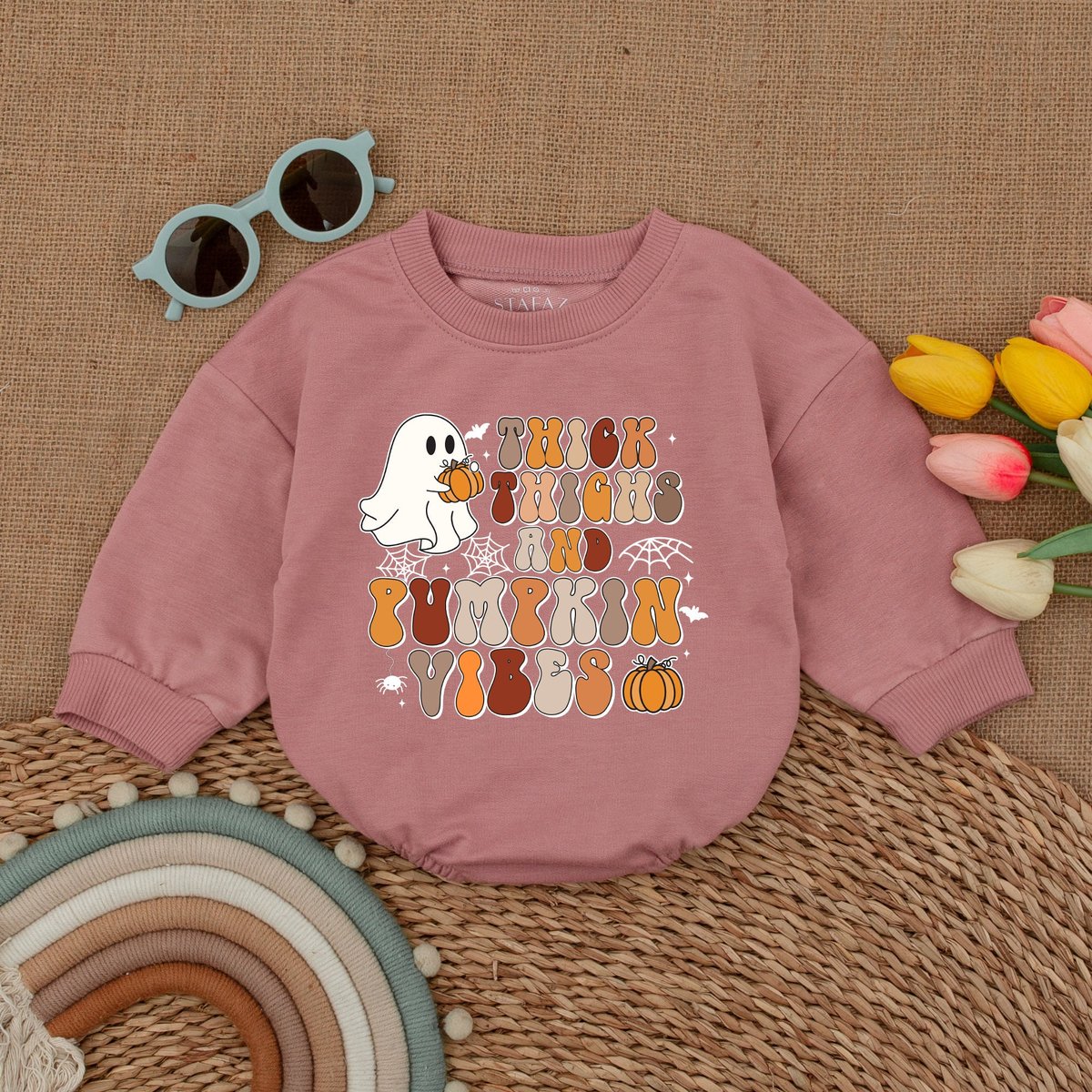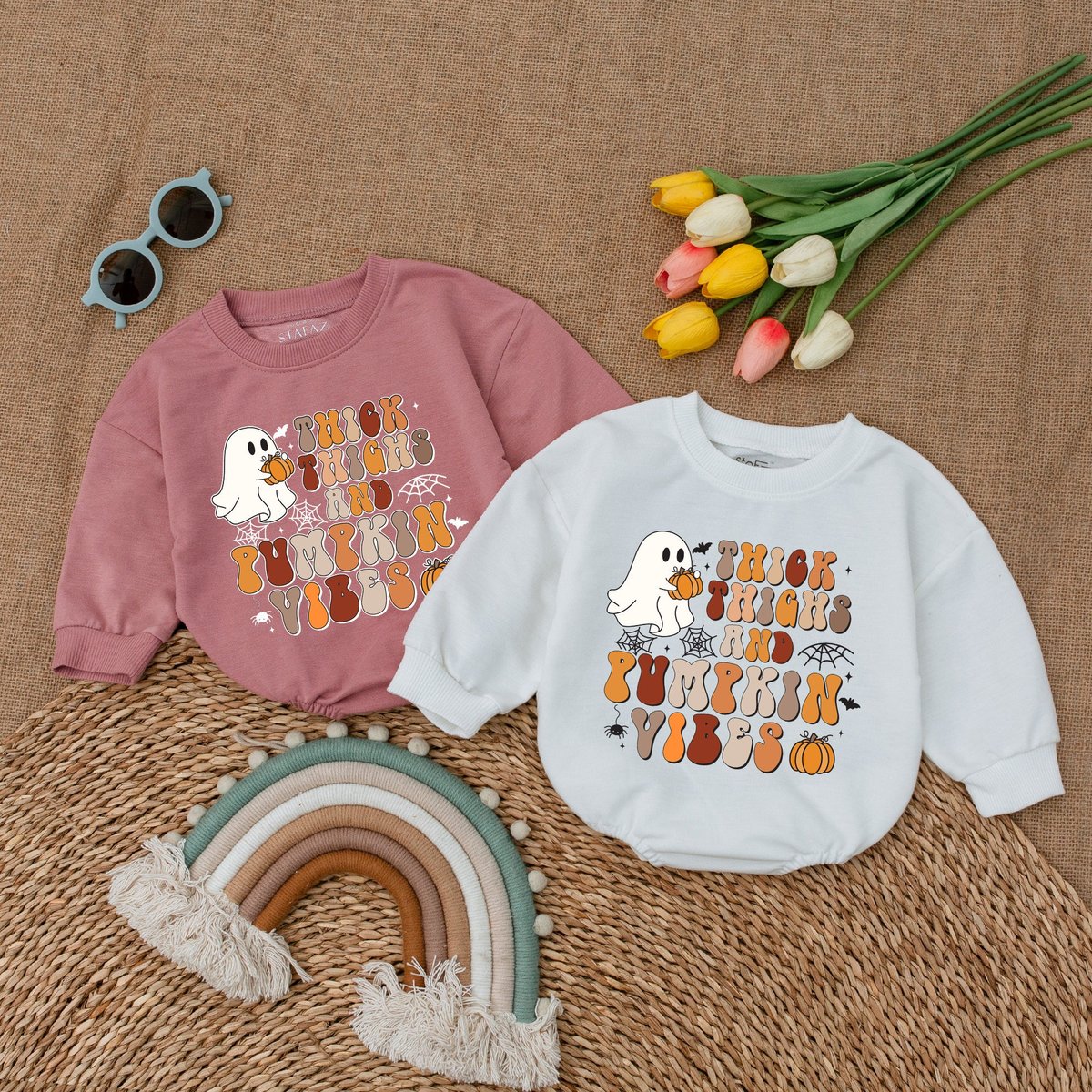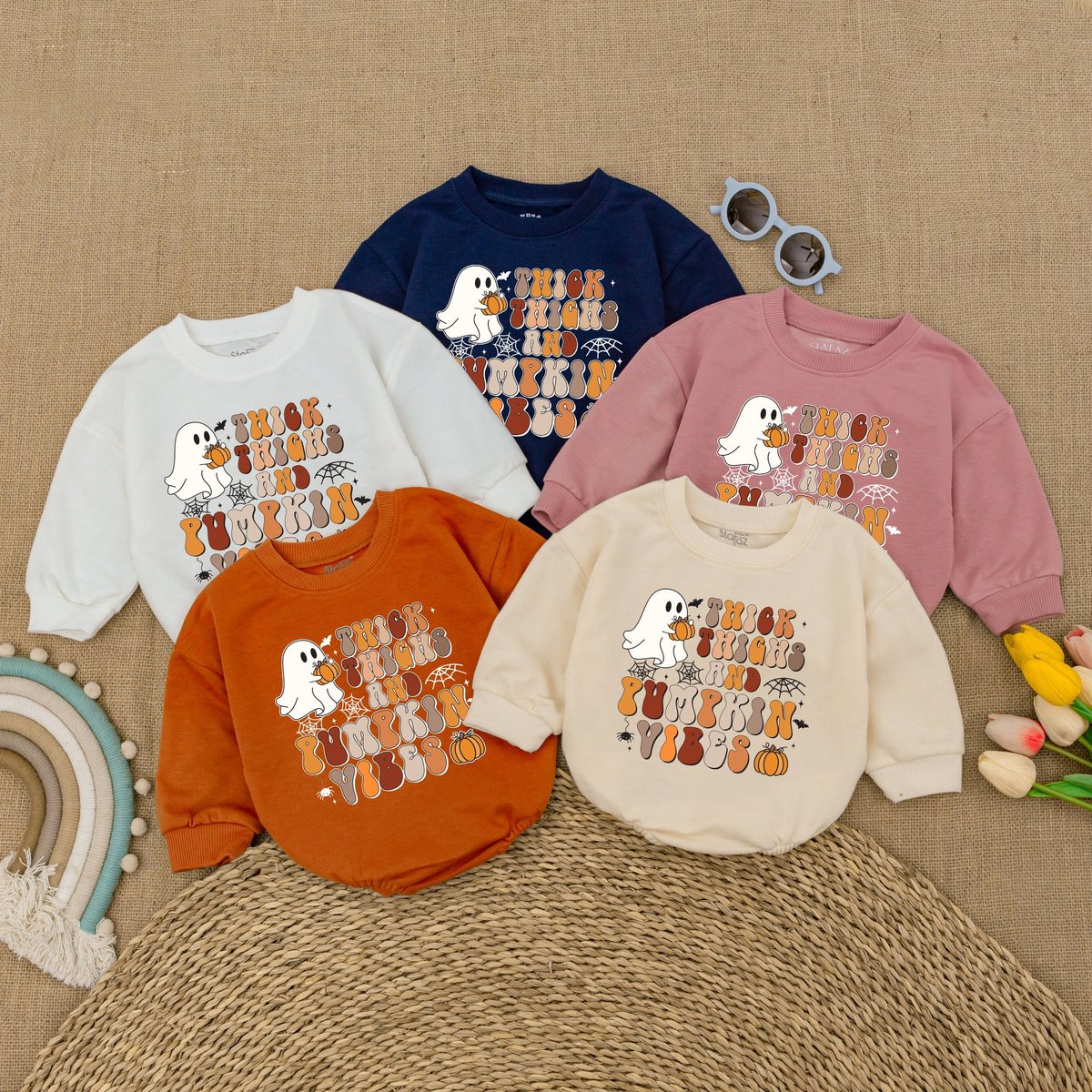 Thick Thighs And Pumpkin Vibes Baby Romper Halloween Ghost Bodysuit Fall Baby Outfit Halloween Baby 174