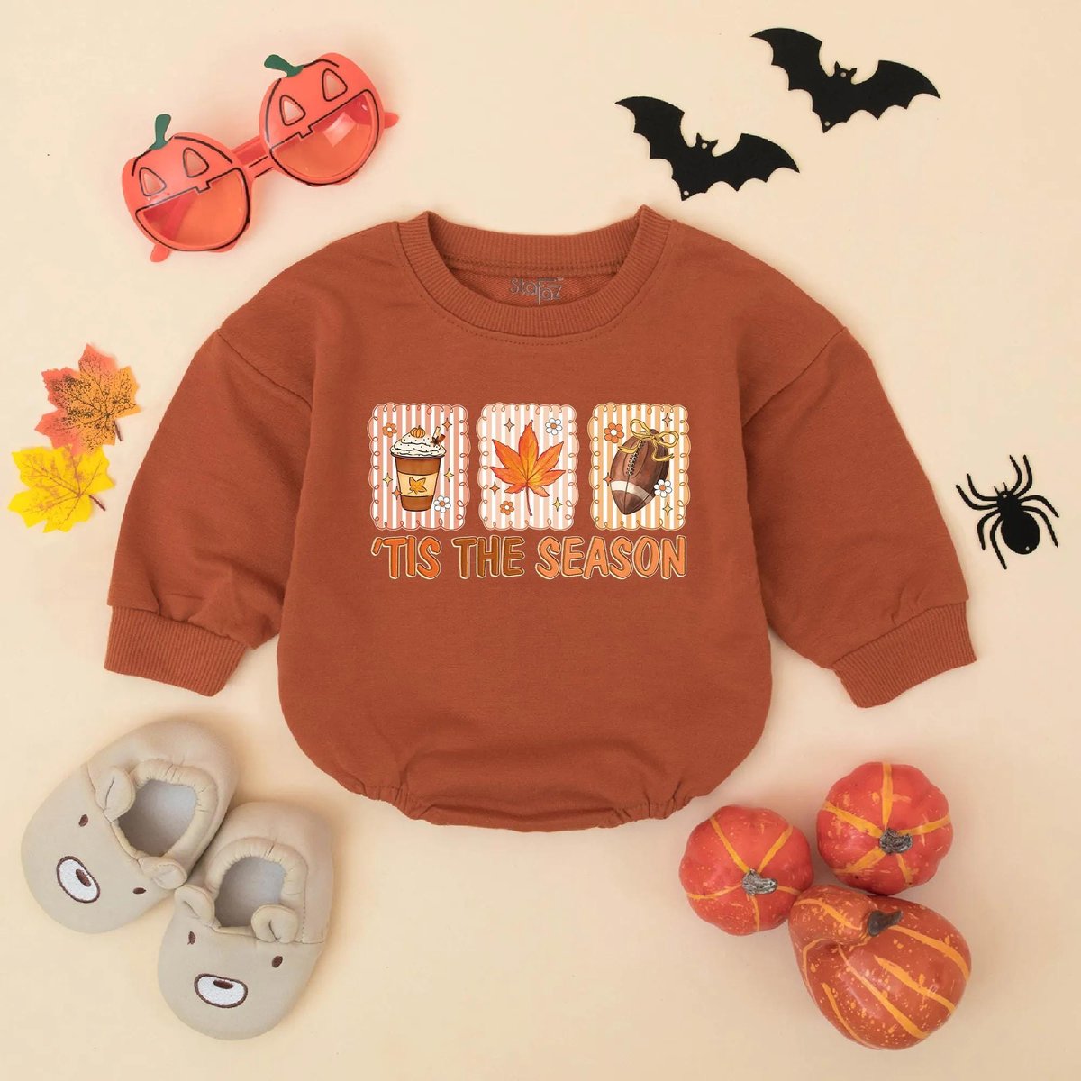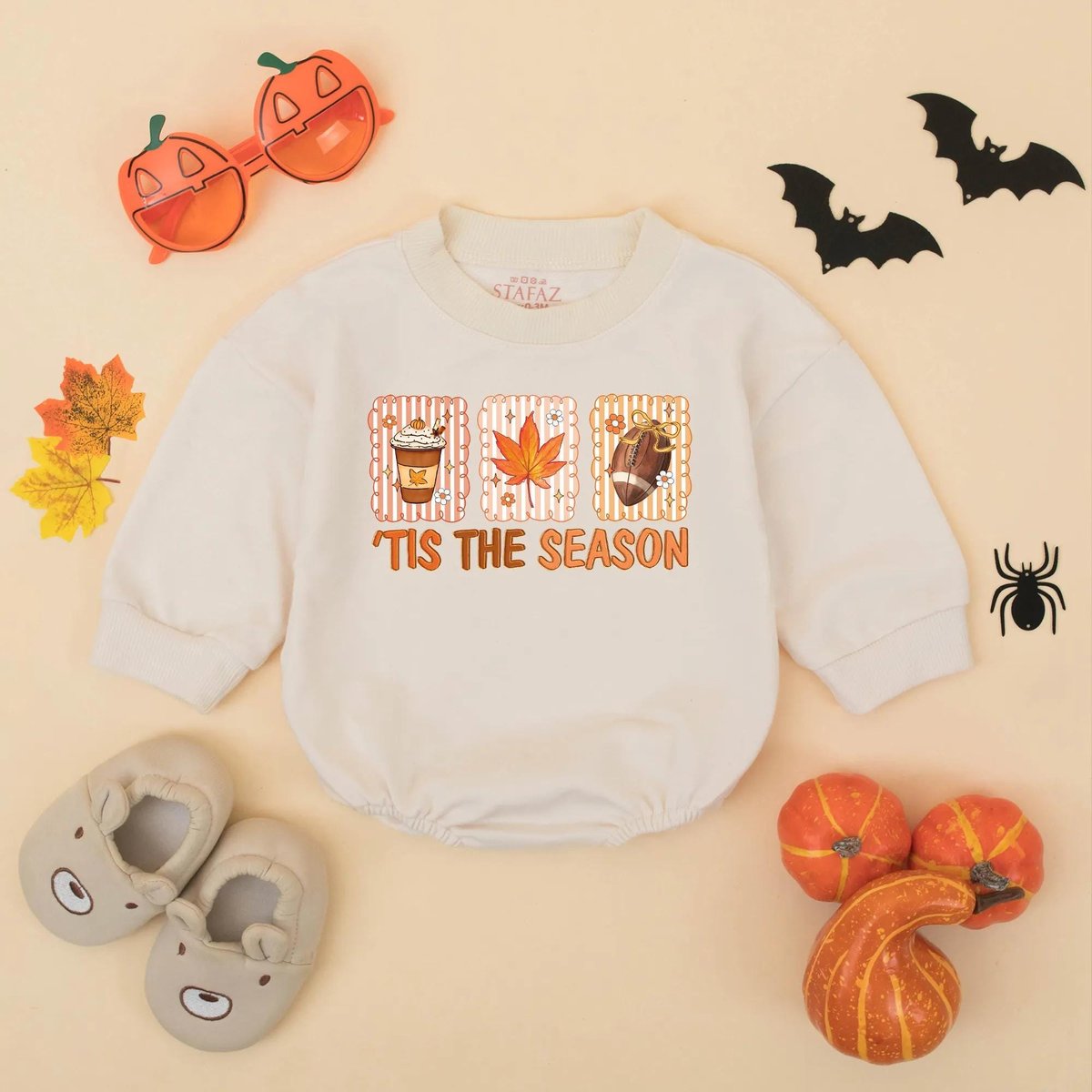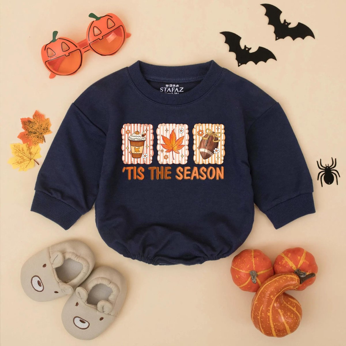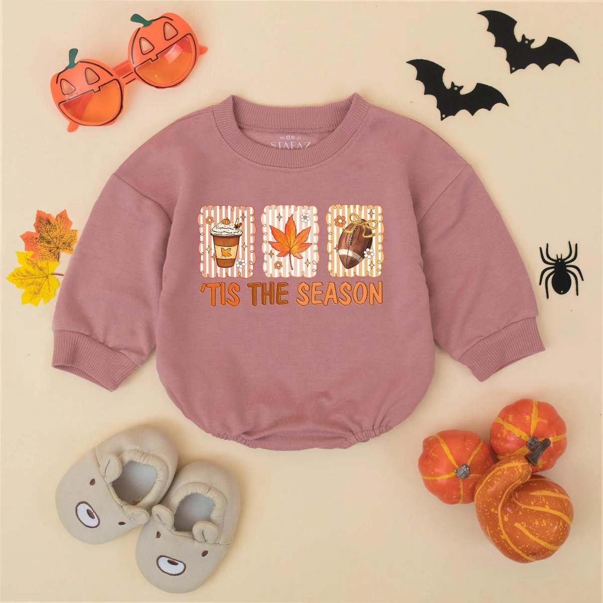 Tis The Season Baby Romper Thanksgiving Baby Bodysuit Retro Football Game Day Outfit Toddler Fall Co 434