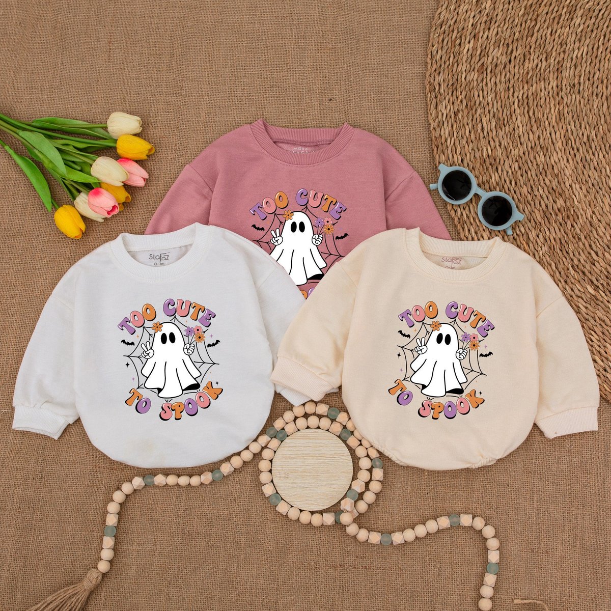 Too Cute To Spook Baby Romper Girl Halloween Baby Bodysuit Retro Ghost Outfit Fall Baby Outfit Hallo 174