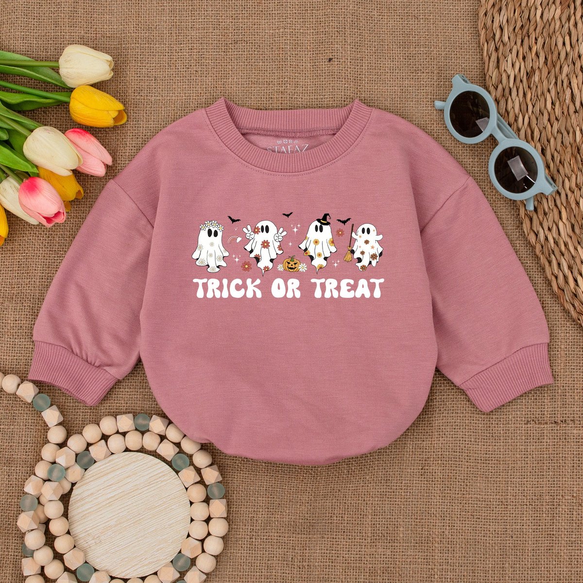 Trick or Treat Baby Romper Retro Ghost Halloween Ghost Bodysuit Fall Baby Outfit Halloween Baby Show 173