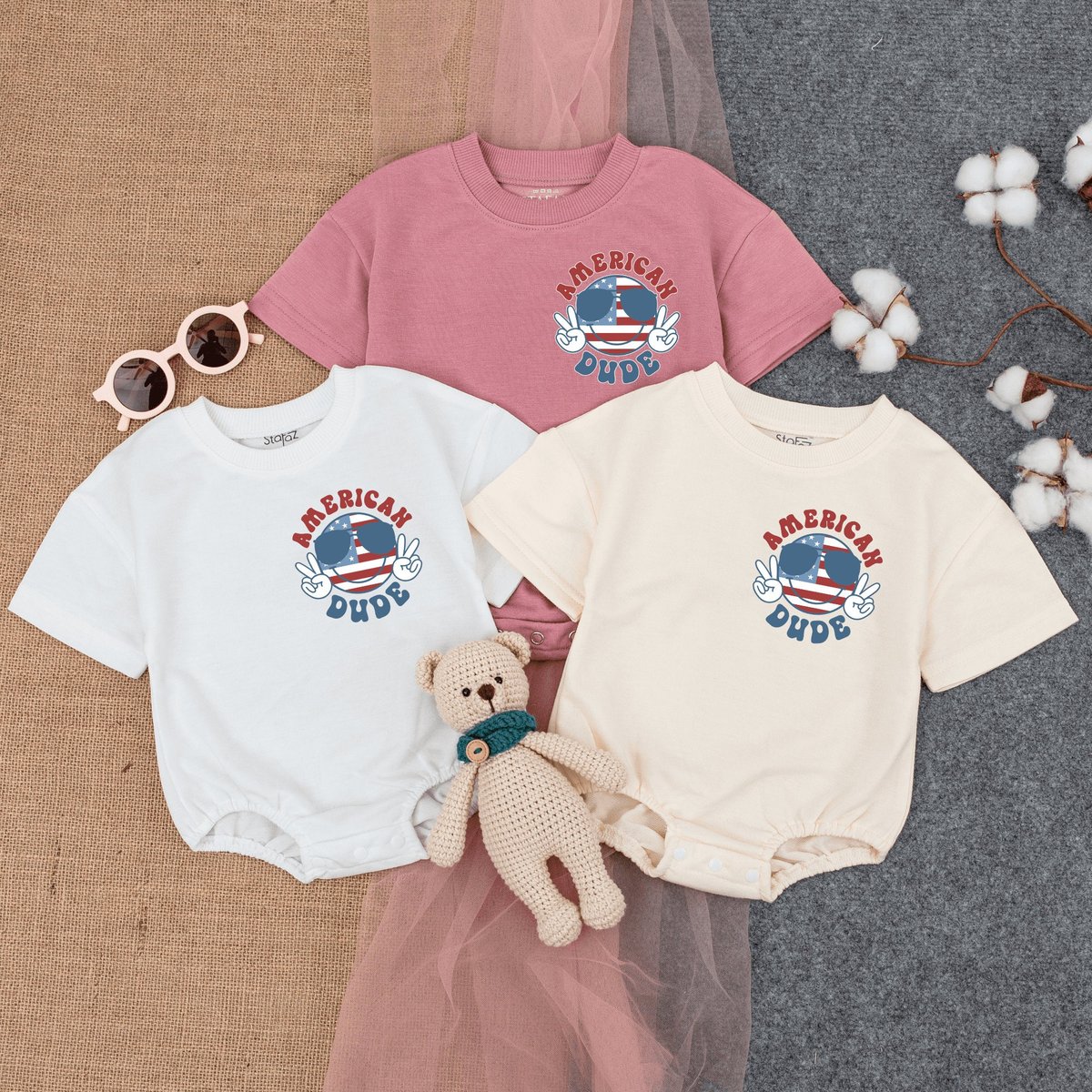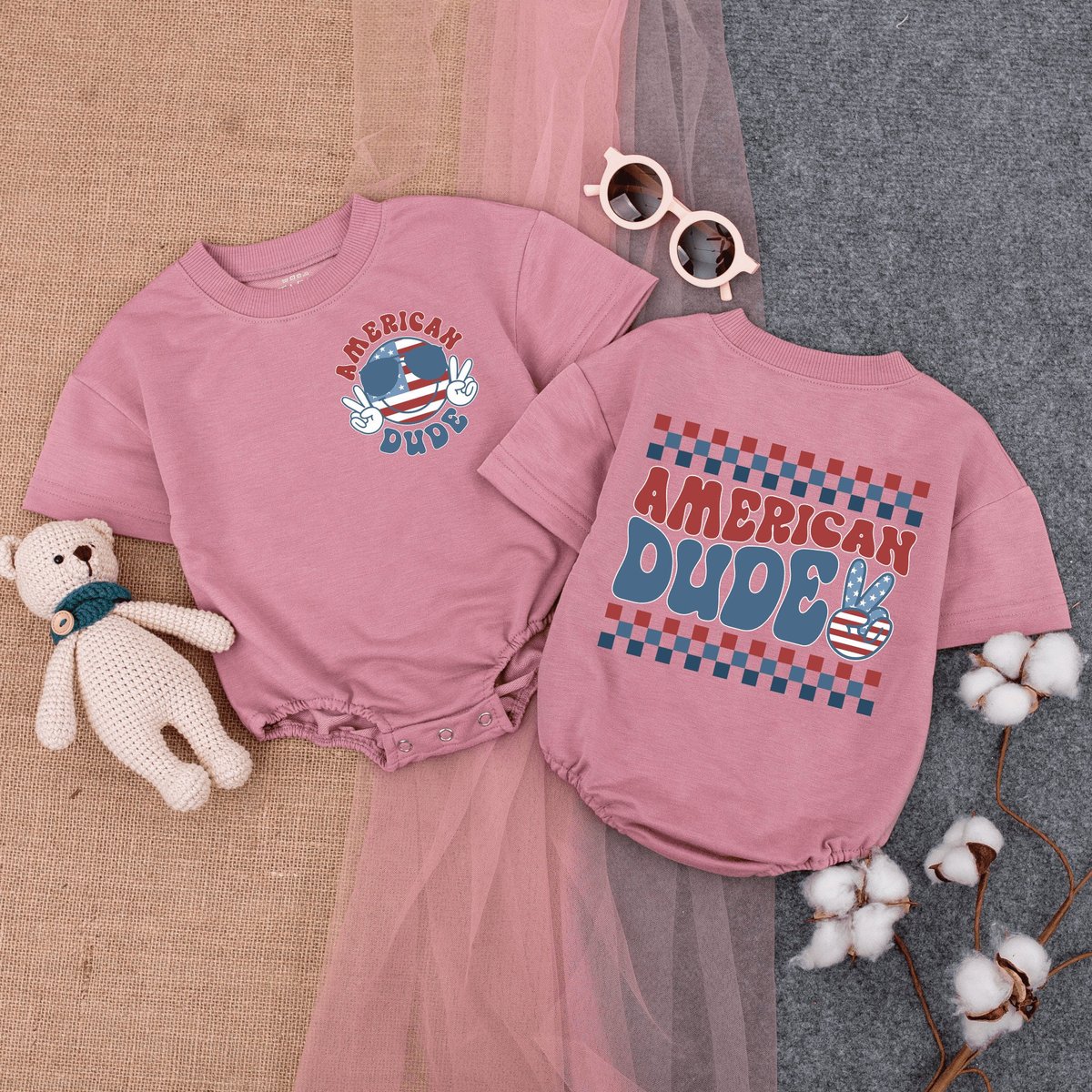 American Dude Baby Romper Short Sleeve Retro Patriotic Bodysuit Cute Fourth of July Baby Baby Clot 168