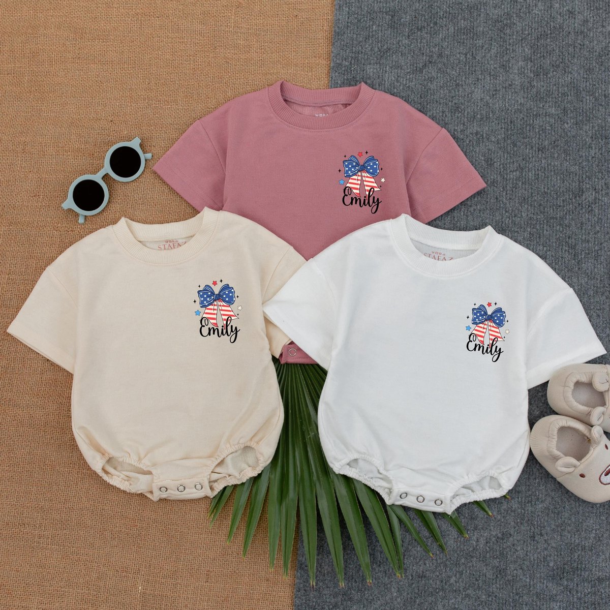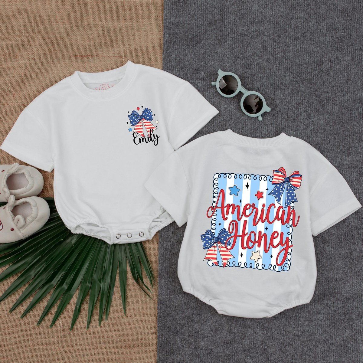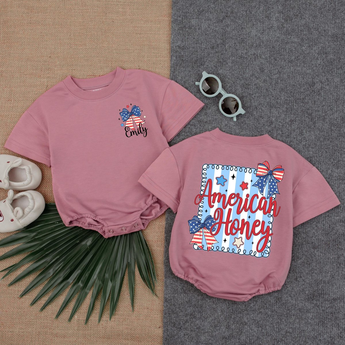 American Honey Baby Romper Bow T shirt Bubble Romper Fourth Of July Girl Outfit Patriotic Baby Cloth 430