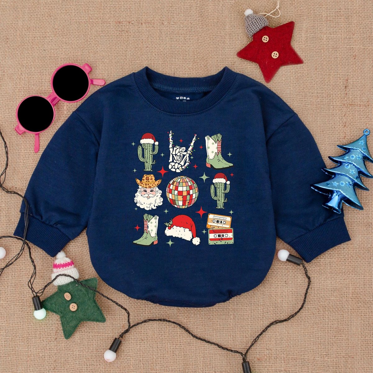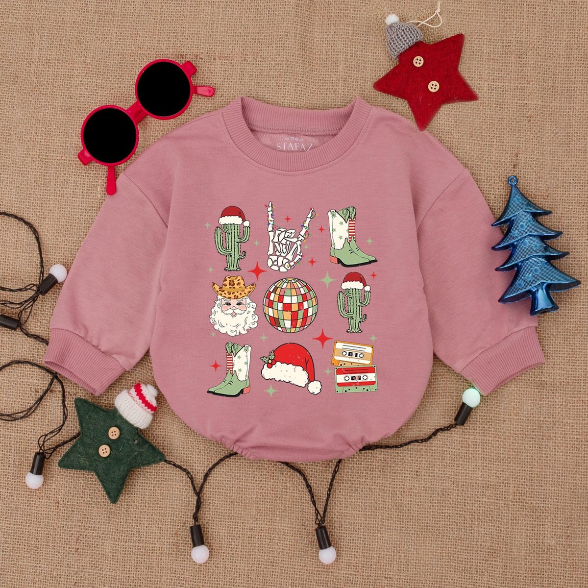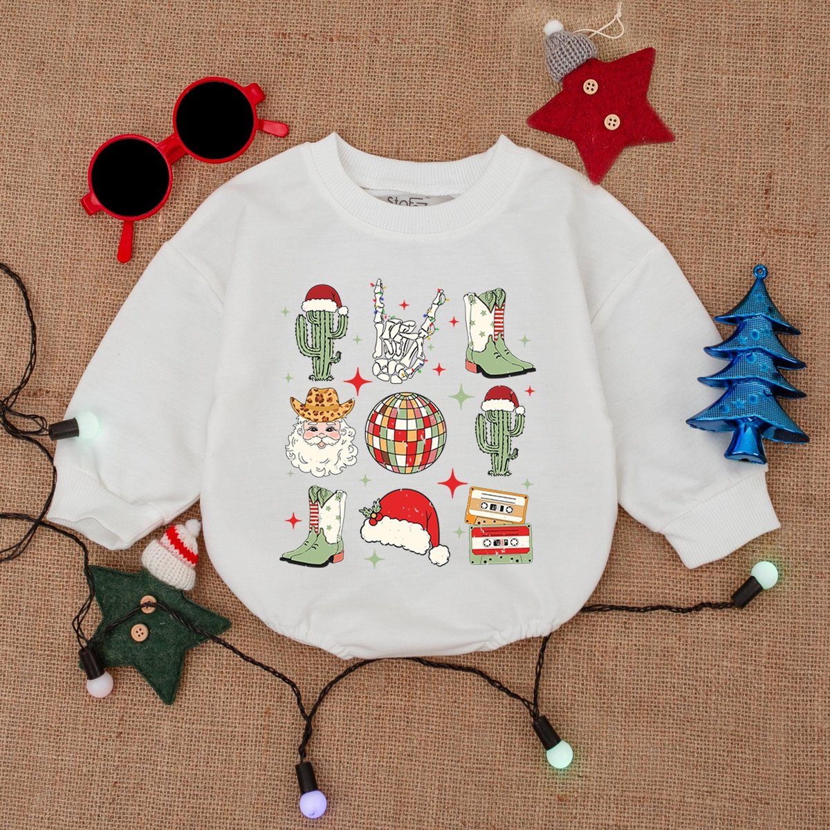 Cowboy Western Christmas Romper Sweatshirt Howdy Santa Baby Bodysuit Cute Western Christmas Baby Out 183