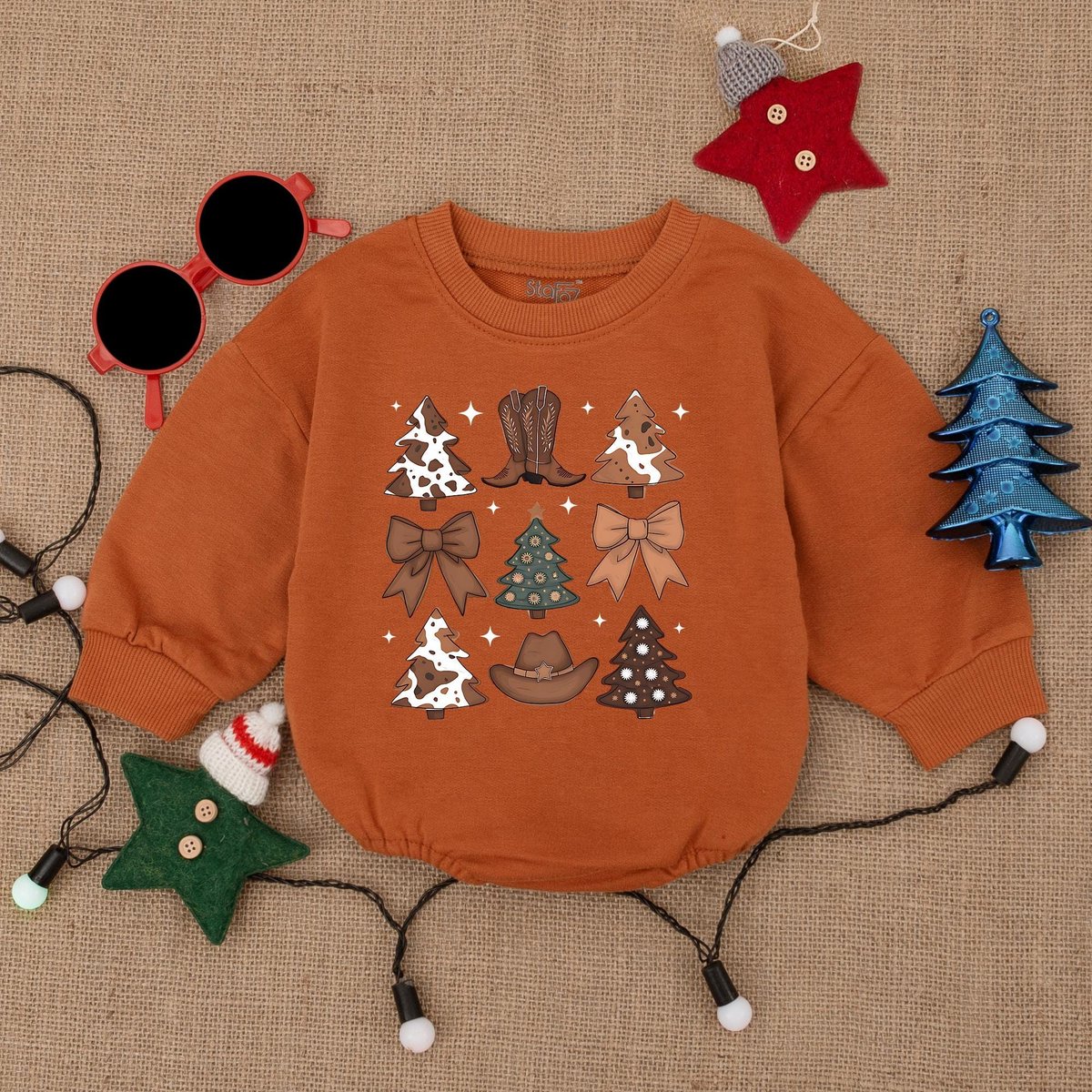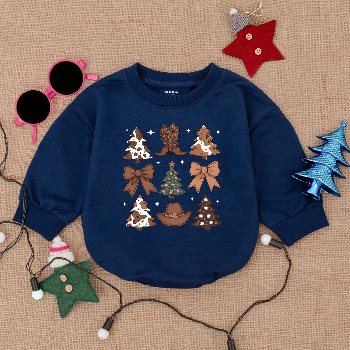 Cowboy Western Christmas Romper Sweatshirt Howdy Santa Baby Bodysuit Cute Western Christmas Baby Out 182