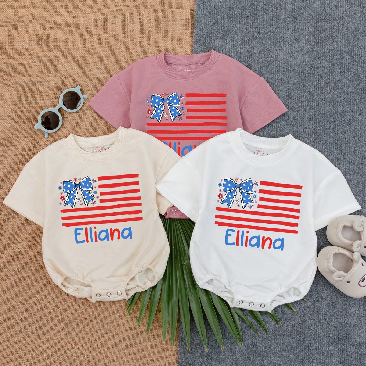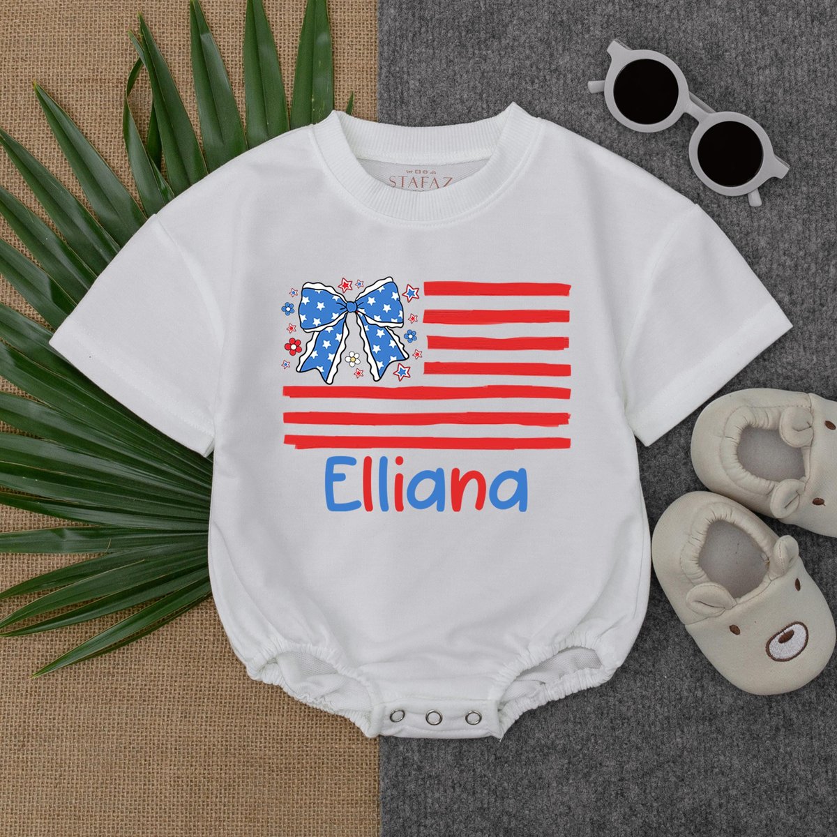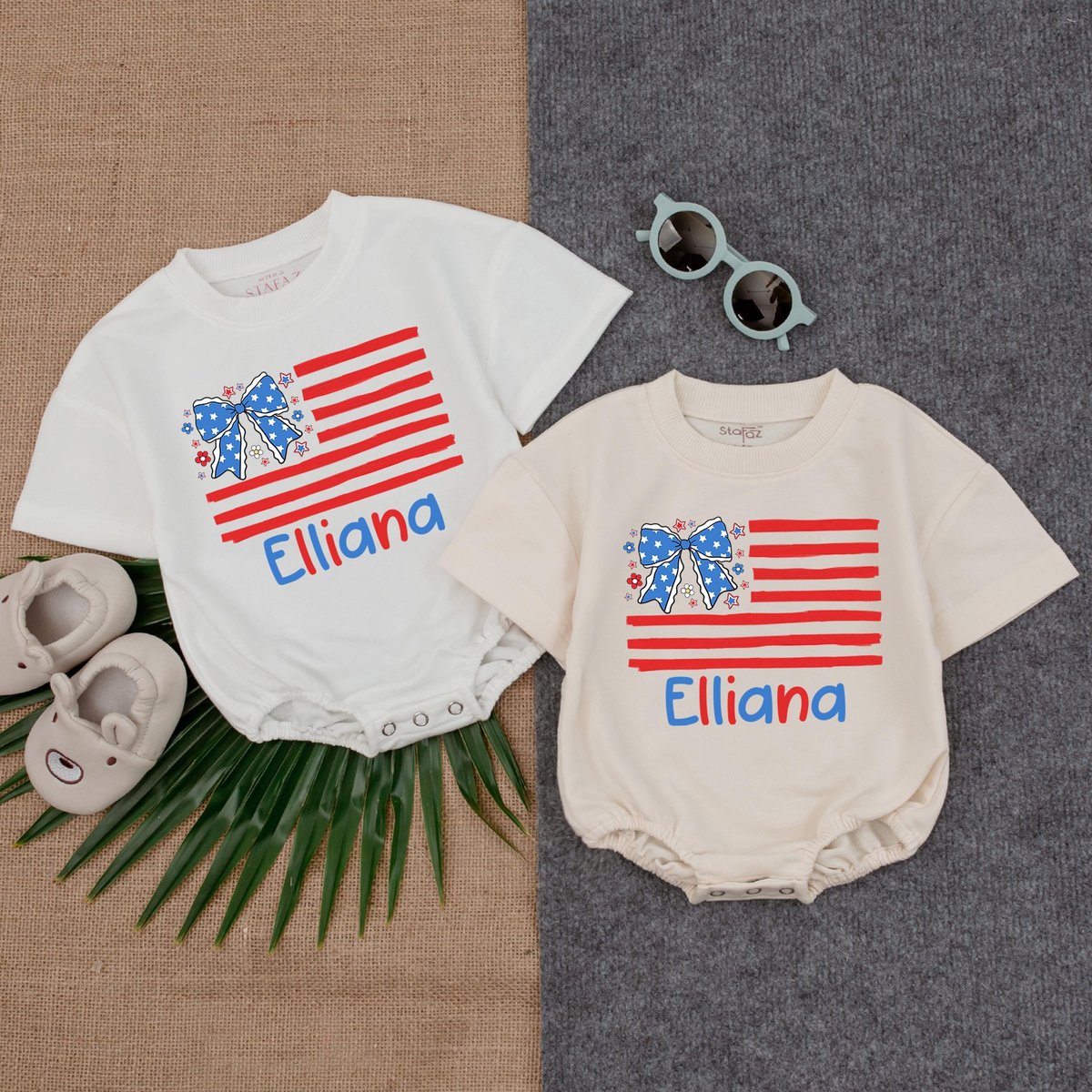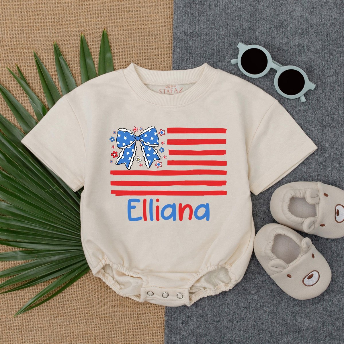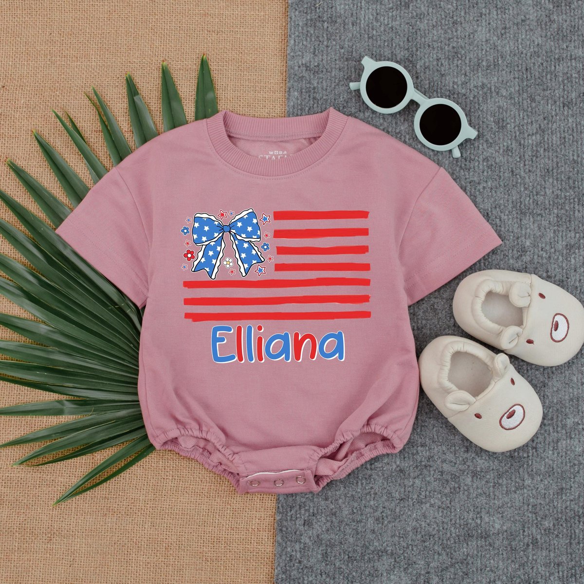 Custom 4th of July Bubble Romper Baby Girl Red White Blue Romper Personalized Name Baby Outfit Short 431