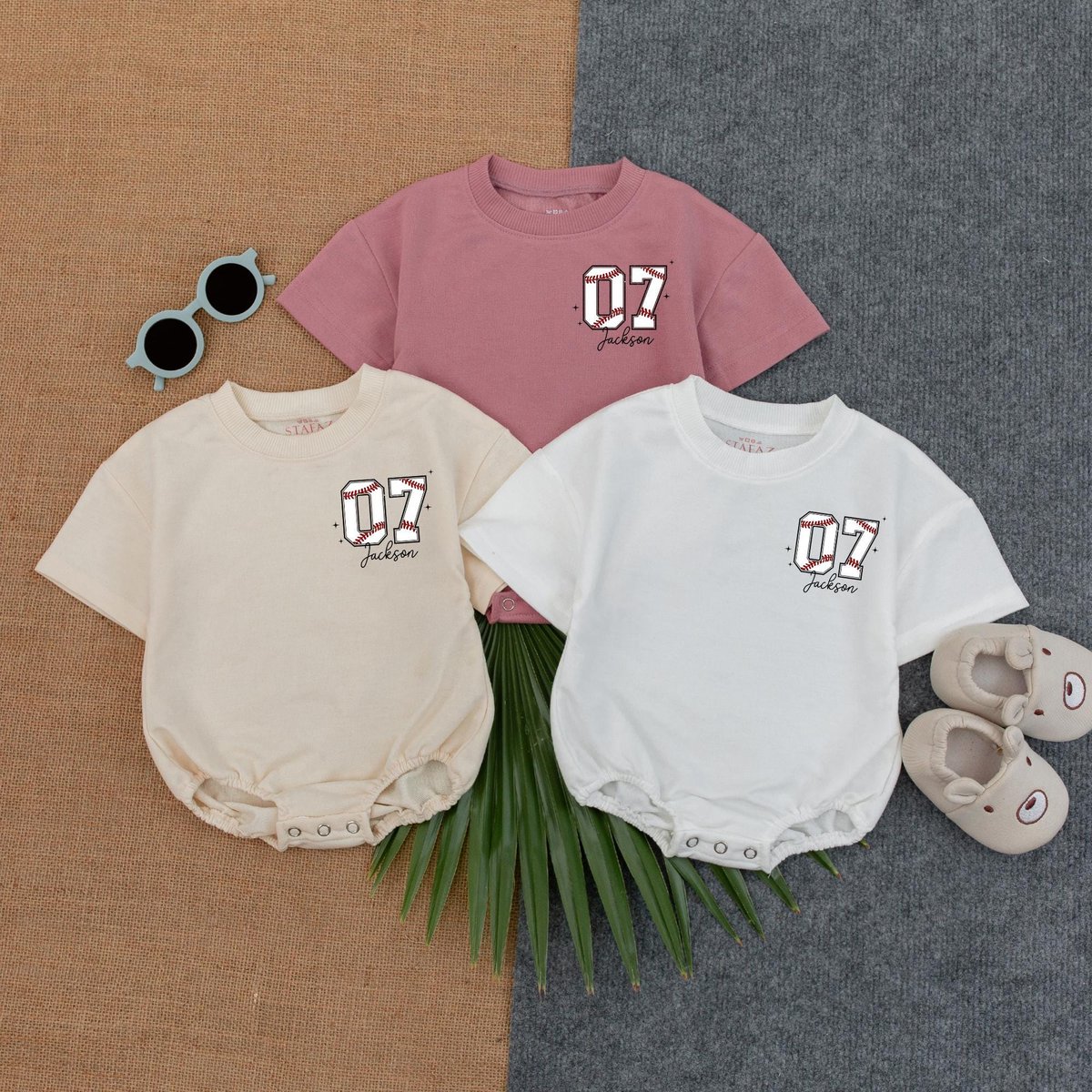 Custom Baseball Pocket T shirt Bubble Romper Personalized Baseball Number Shirt Baseball Lover Tee B 187