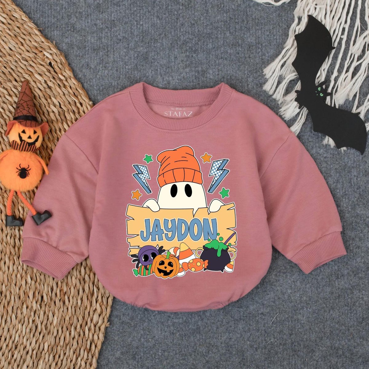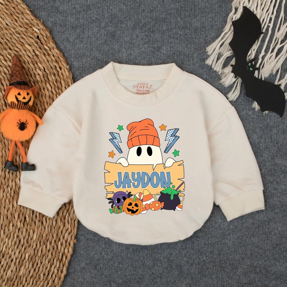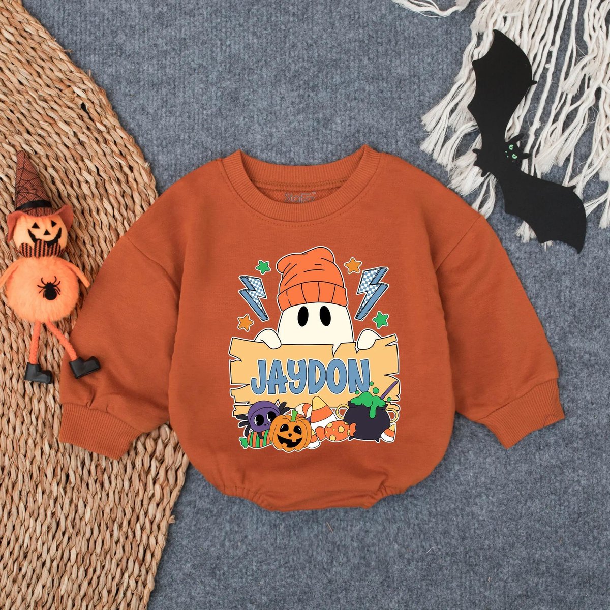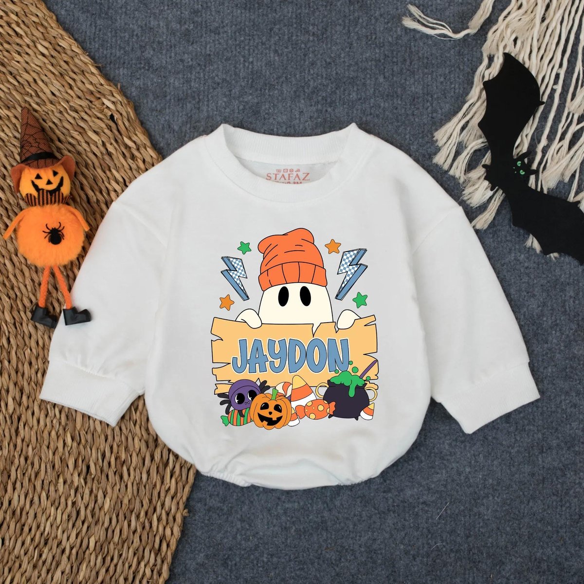 Custom Halloween Sweatshirt Bubble Romper for Baby Boy Spooky Ghost Pumpkin Clothes Personalized Fal 433