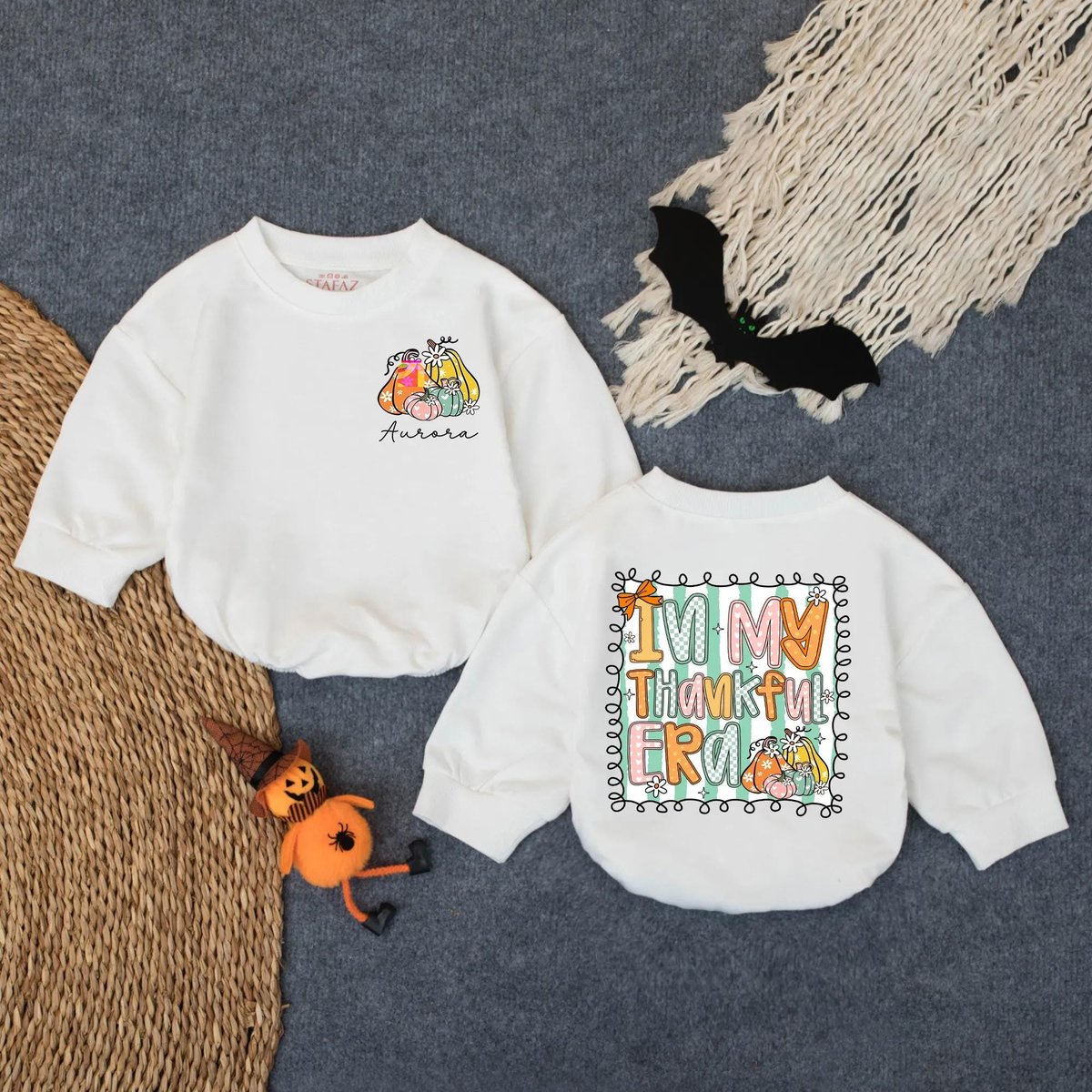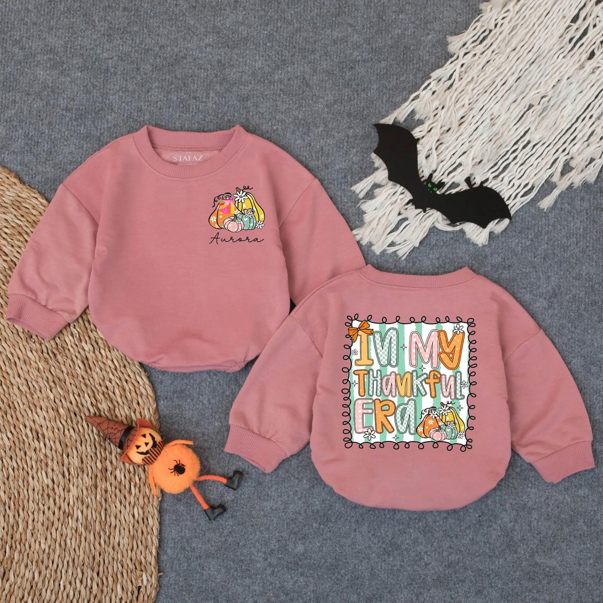 Custom In My Thankful Era Baby Romper Fall Baby Girl Outfit Cute Autumn Sweatshirt Thanksgiving Baby 434