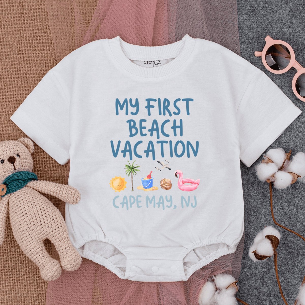Custom My First Beach Vacation Baby Romper Short Sleeve Summer Baby Clothes 1st Vacation Baby Beac 172