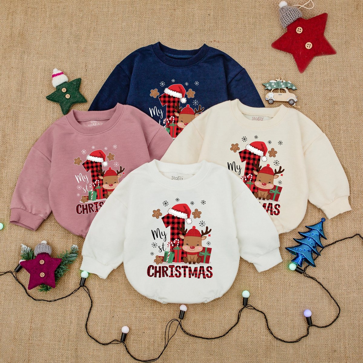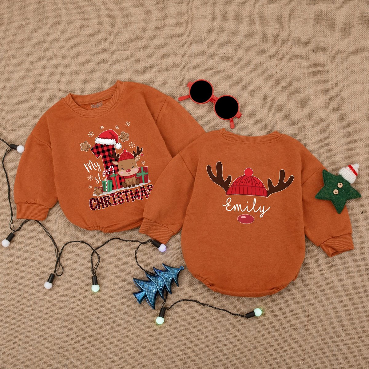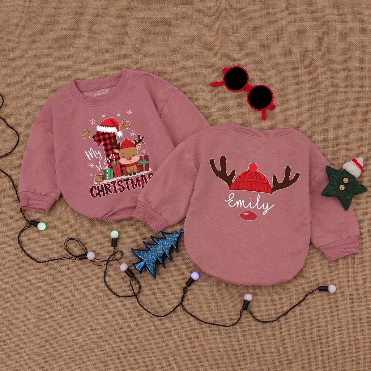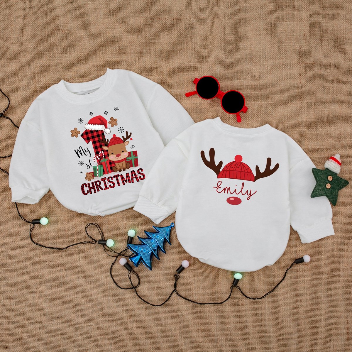 Custom Name My First Christmas Bodysuit Bubble Romper Baby Christmas Clothes Christmas Baby Outfit B 179