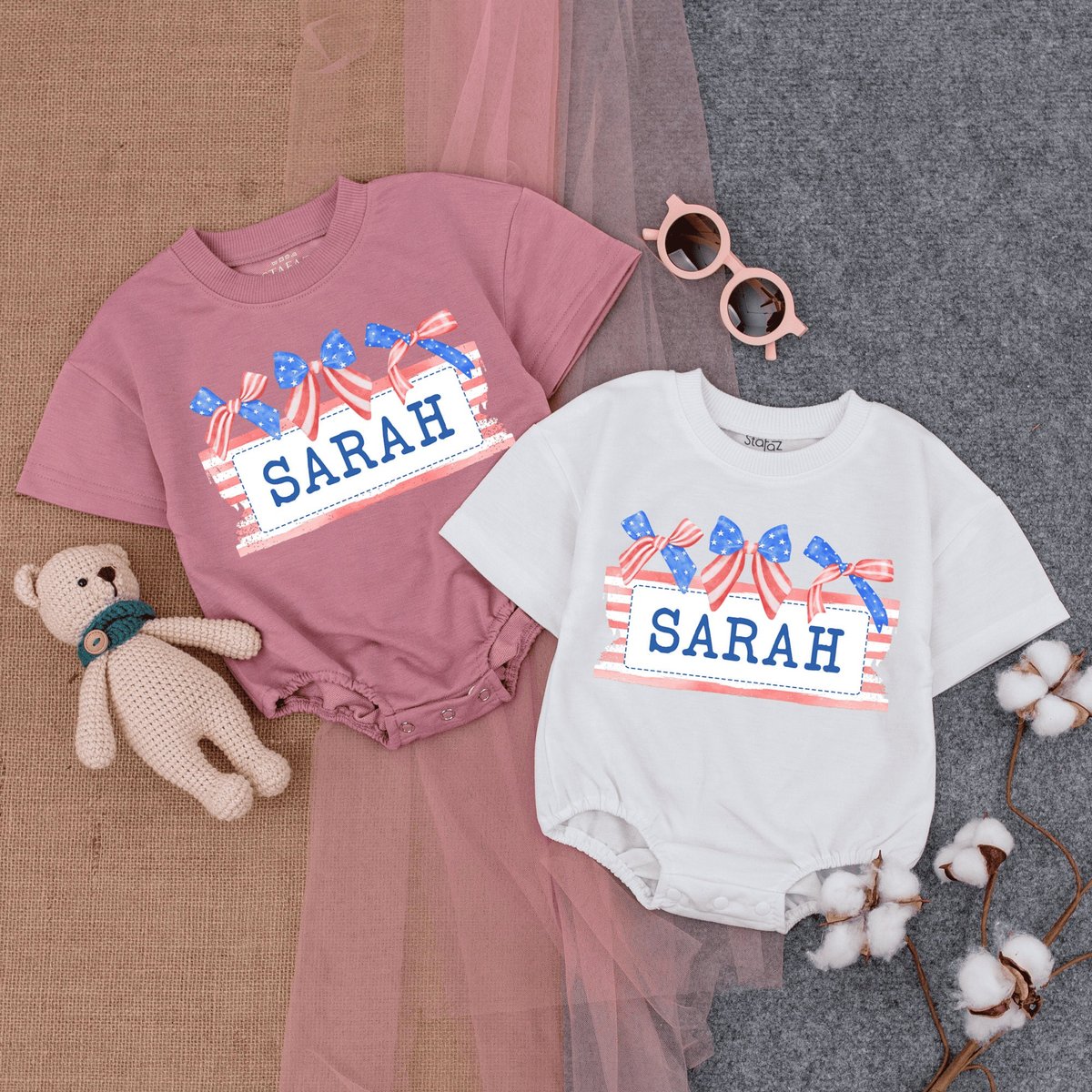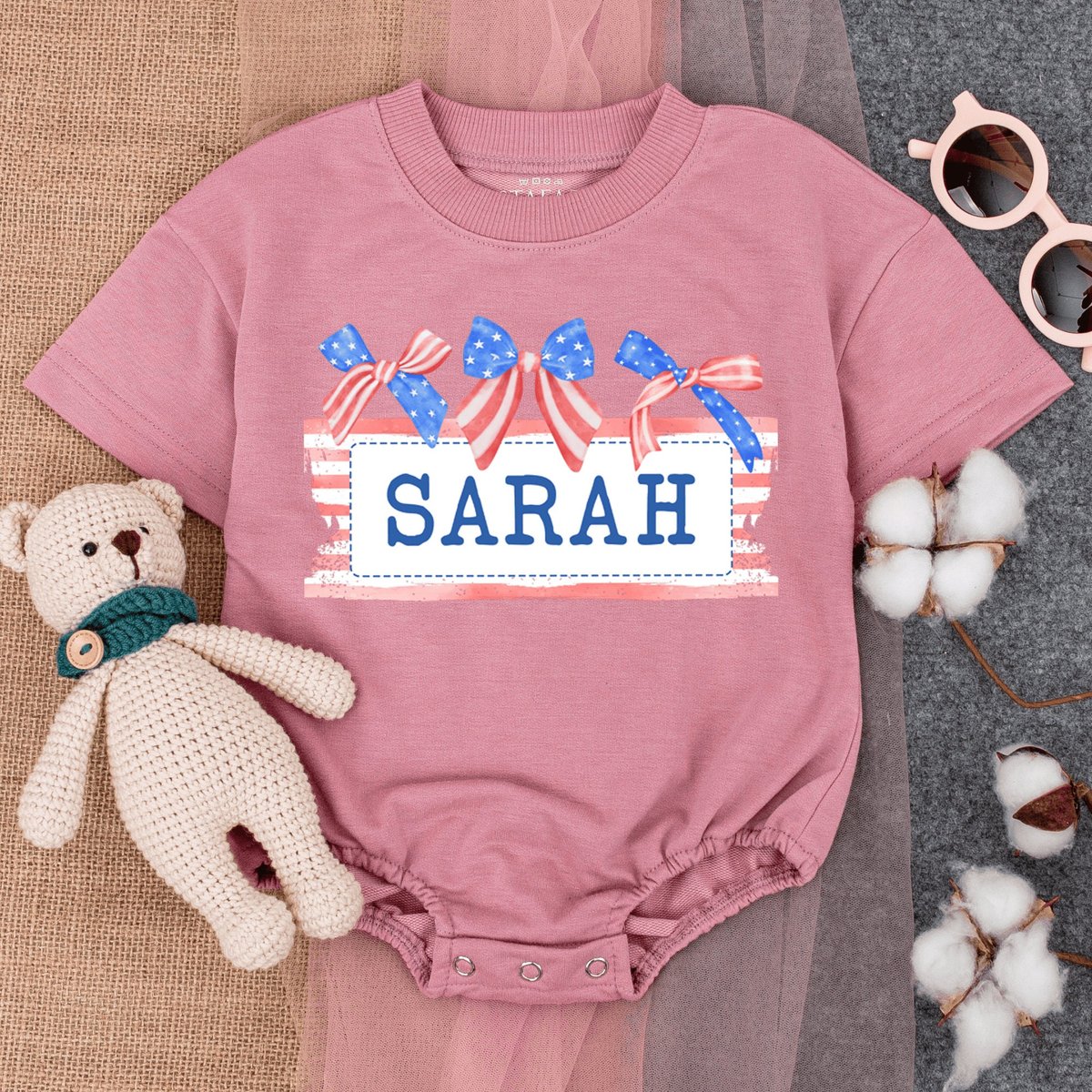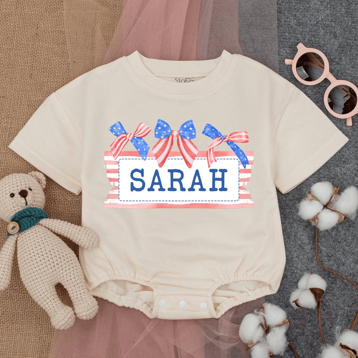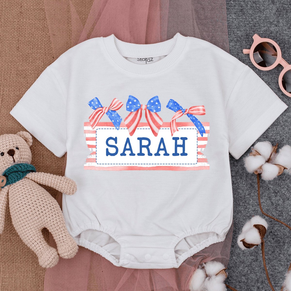 Custom Name Patriotic Baby Romper Short Sleeve Cute Fourth of July Baby 4th of July Baby Girl Outf 172