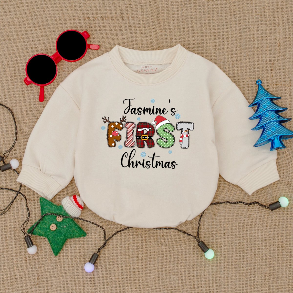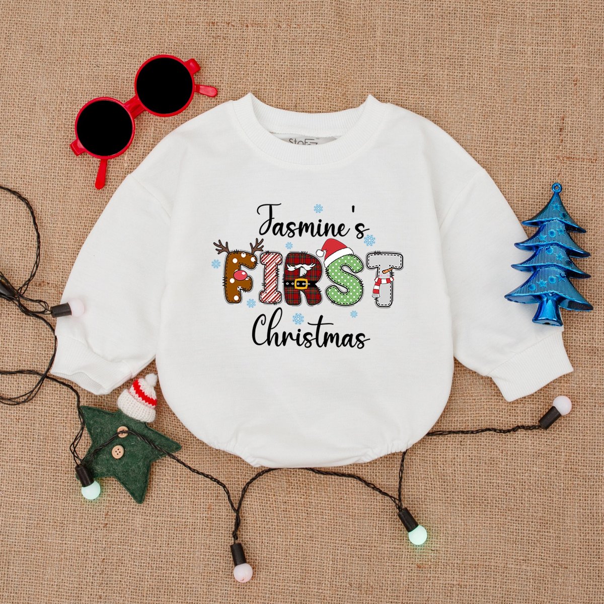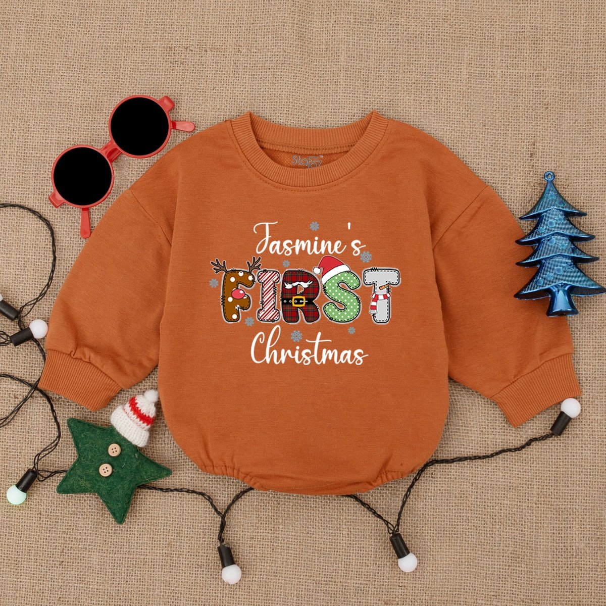 Custom Name My First Christmas Bodysuit Bubble Romper Baby Christmas Clothes Christmas Baby OutfitBa 178