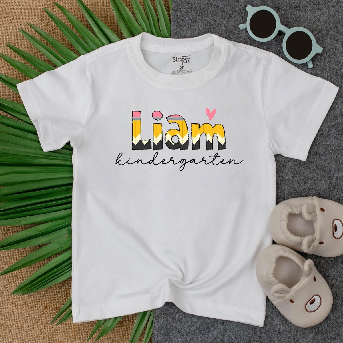 Custom Pencil Name Shirt for Kids Back to School Toddler T Shirt Personalized First Day Preschool Ki 189