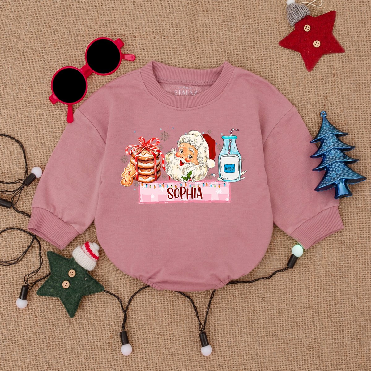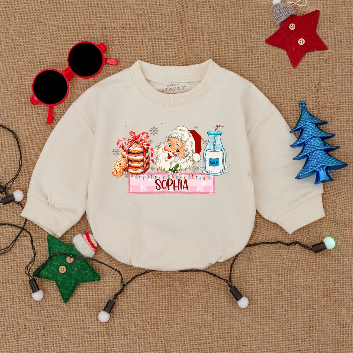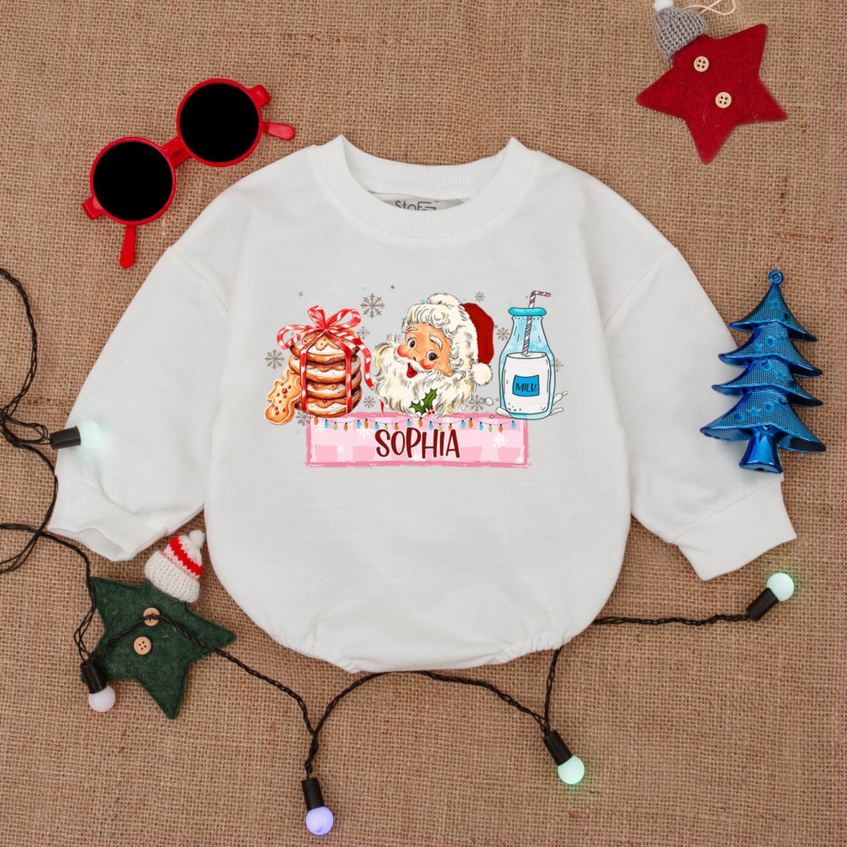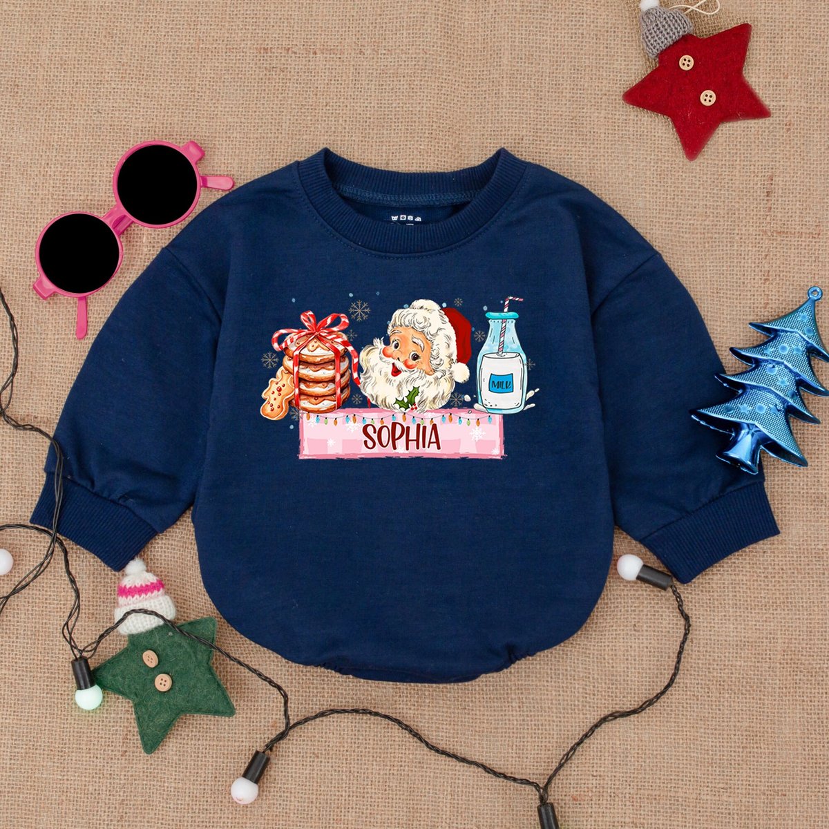 Custom Santa Merry Christmas Bubble RomperSweatshirt Romper Baby Christmas Outfit Christmas Tree Tod 179