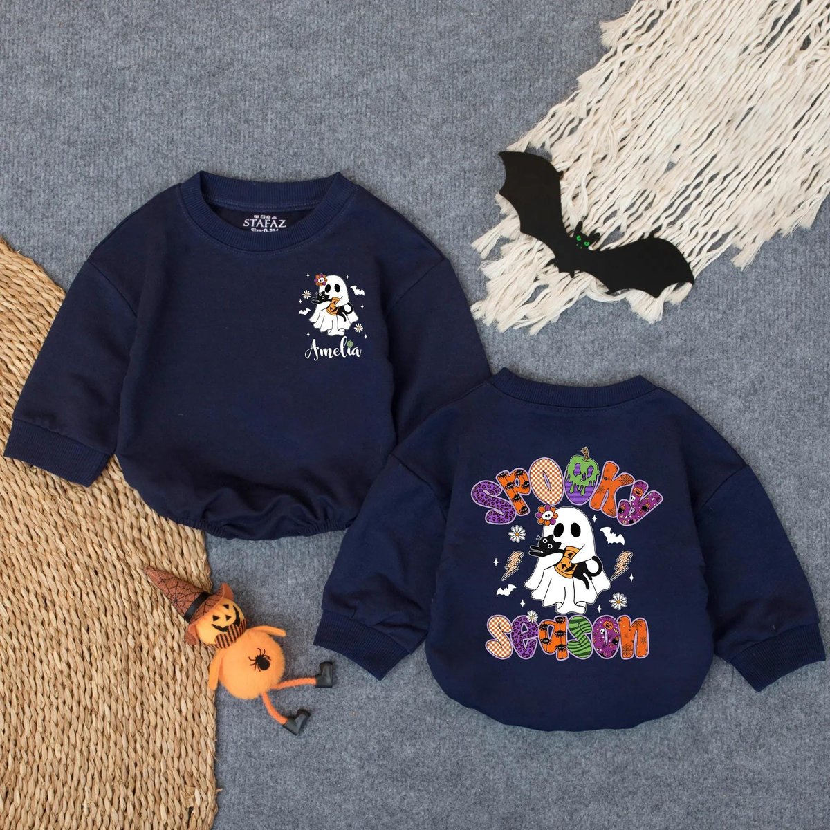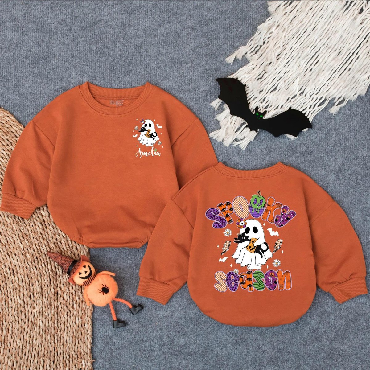 Custom Spooky Season Bubble Romper Personalized Halloween Baby Outfit Fall Baby Bodysuit Ghost Toddl 434