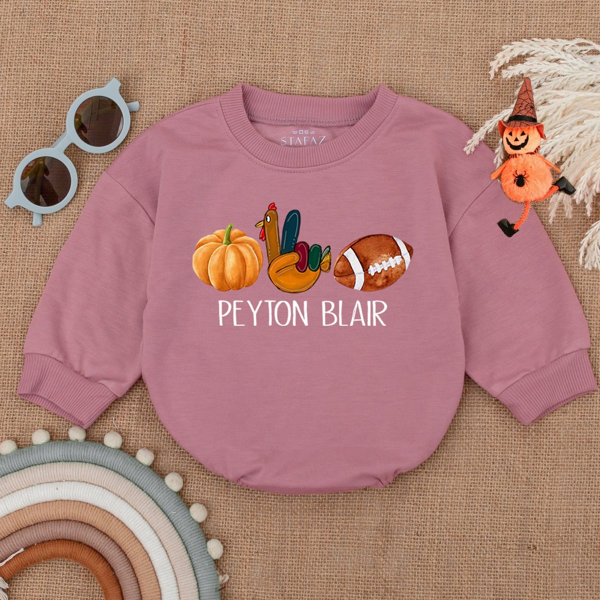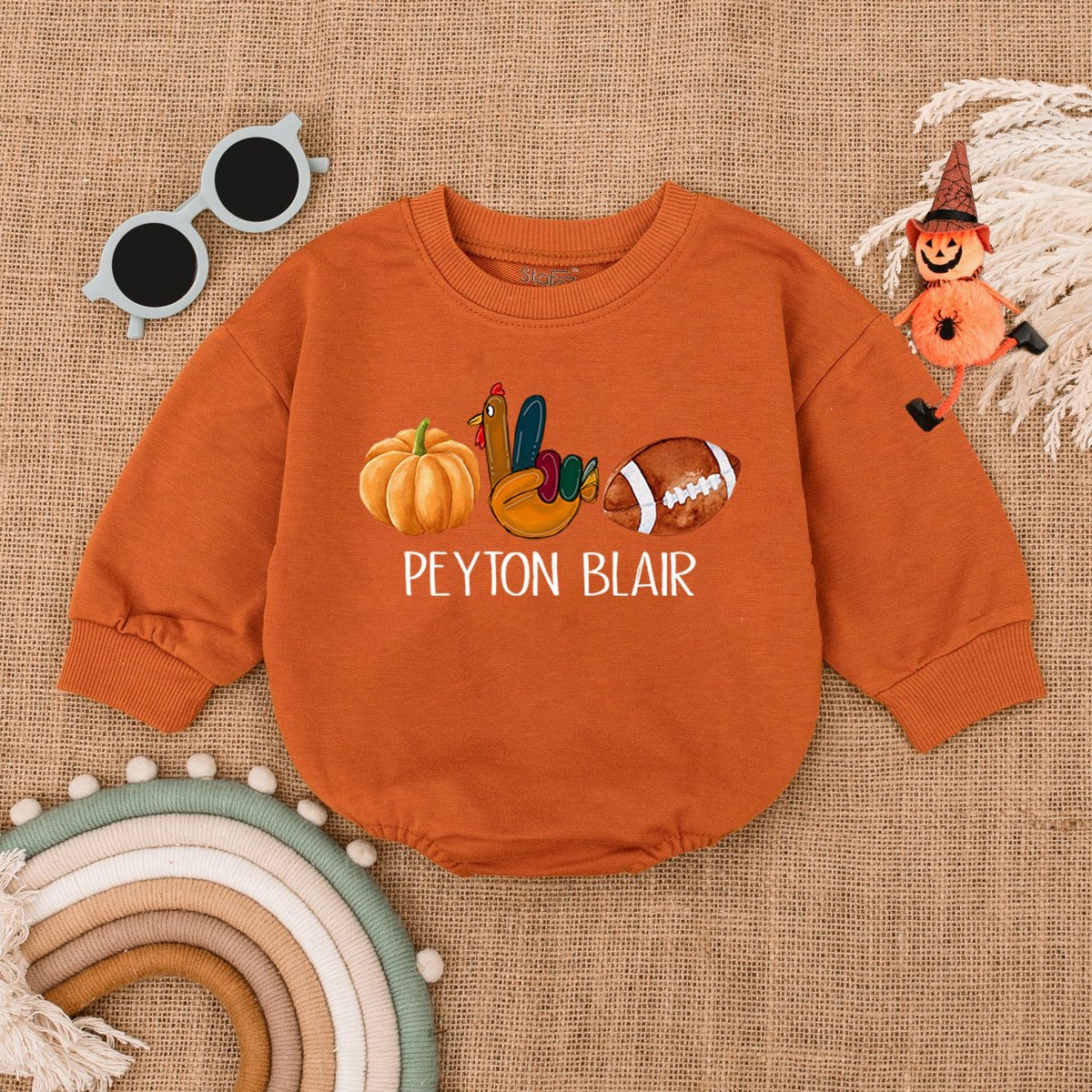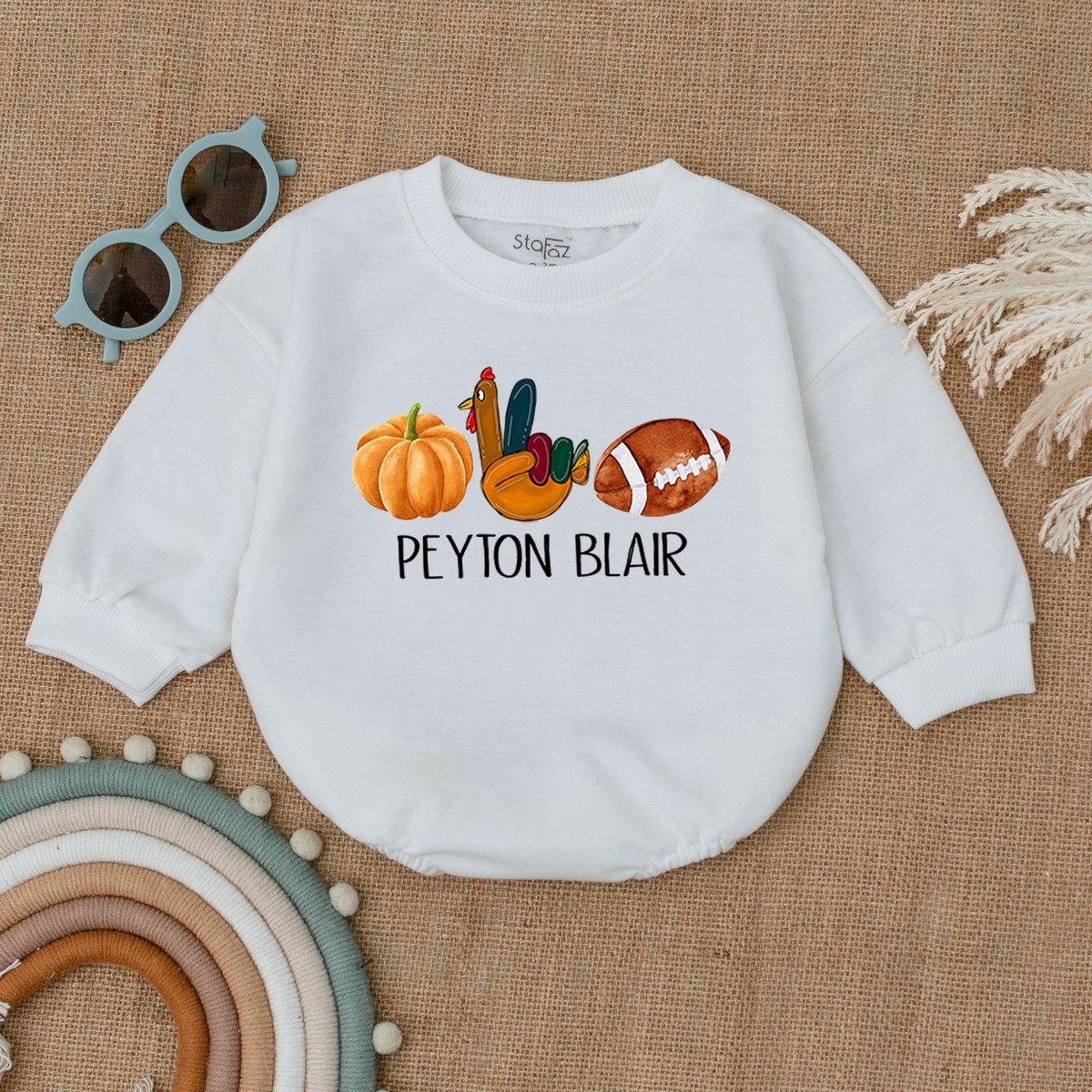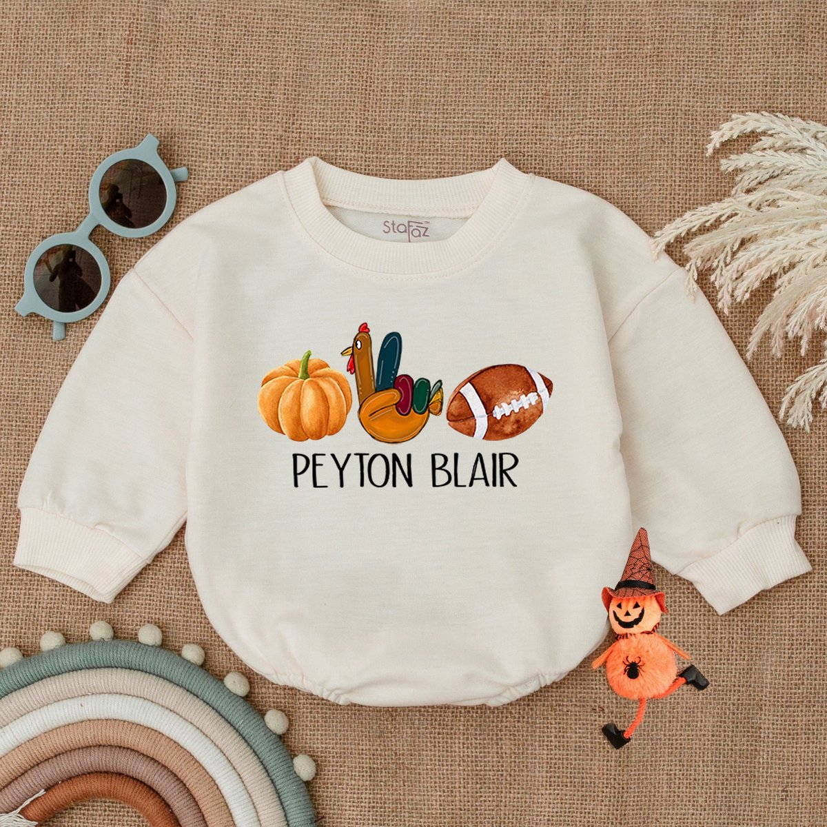 Custom Thanksgiving Football OutfitTurkey and Touchdowns Baby RomperAutumn Kids Clothes Funny Thanks 177