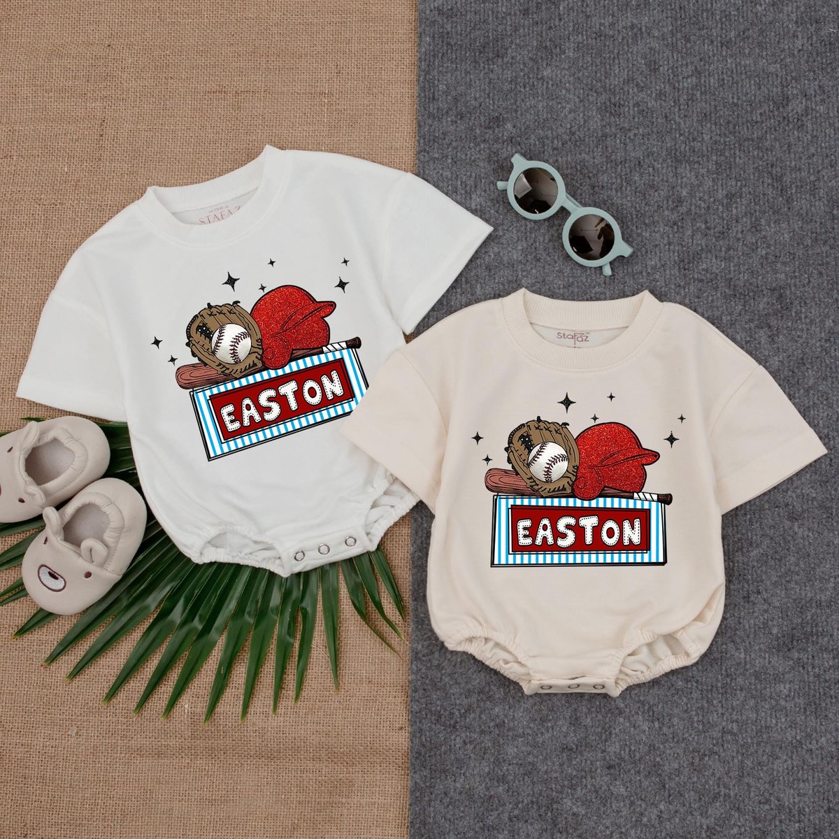 Customized Boy’s Baseball T Shirt Bubble Romper Gameday Newborn Clothes Baseball Lover Tee Baby Gif 187